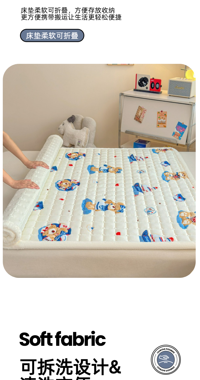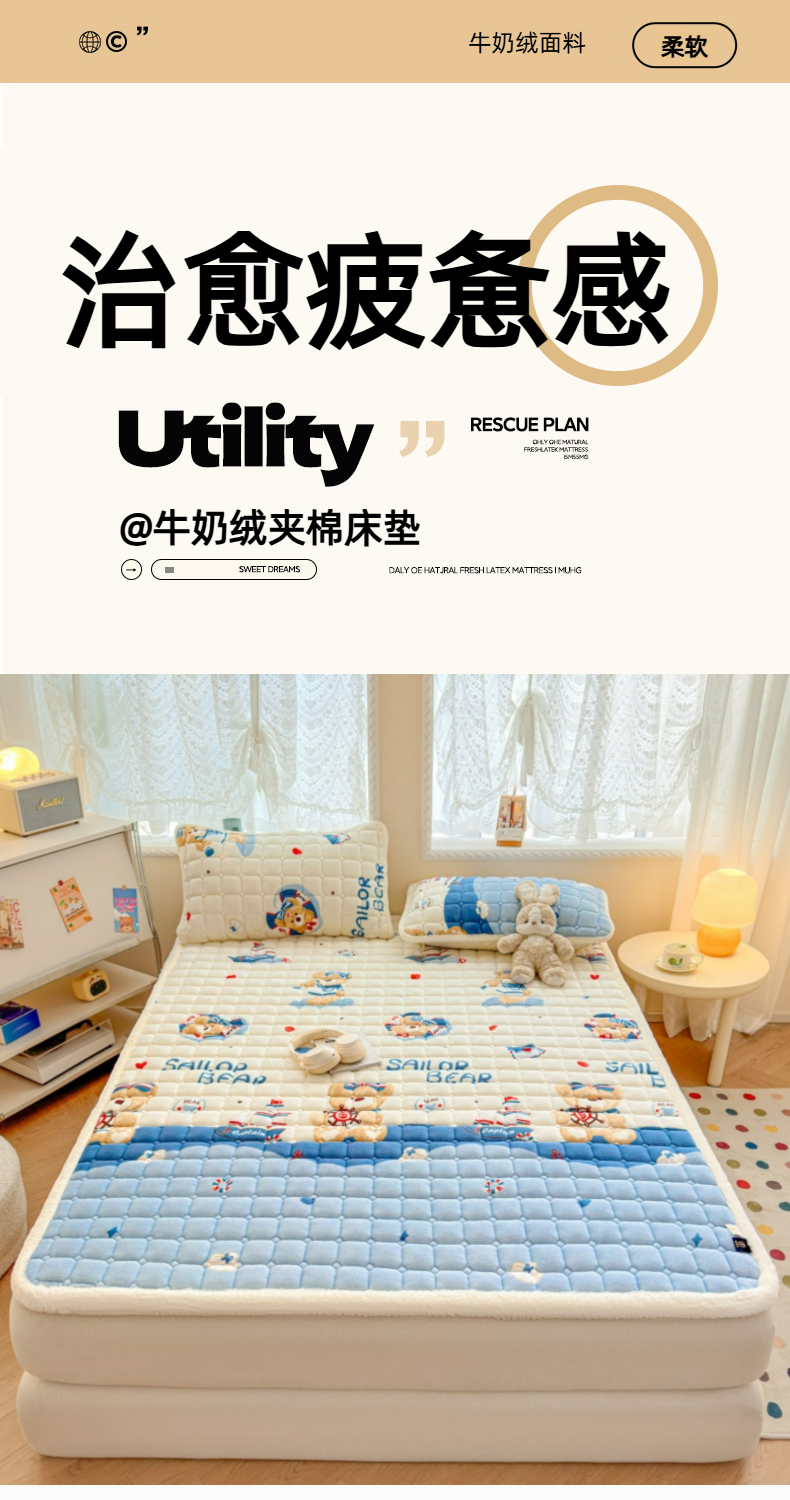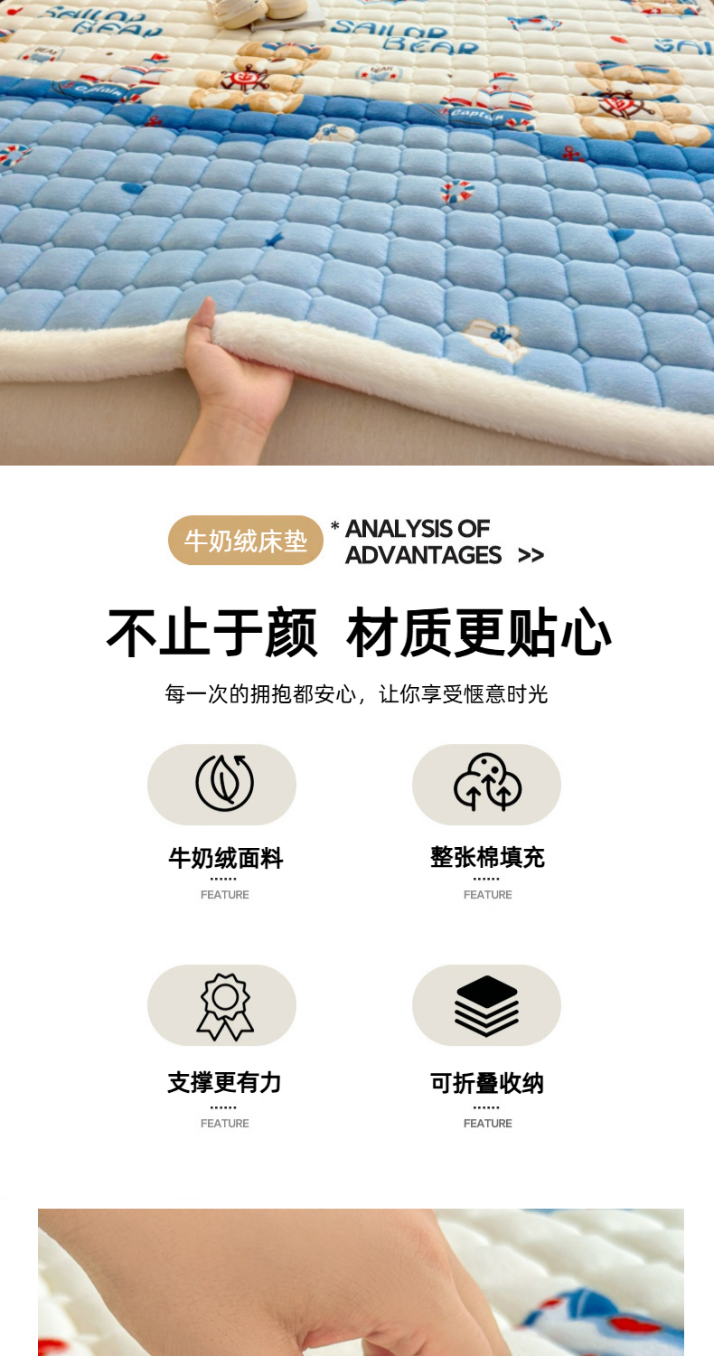 当前位置: 91家纺网 > 商品网购 > 床垫/床褥 > 普通床垫 > 爱屋及屋 2025新款牛奶绒印花床垫-大床款 冲浪小熊