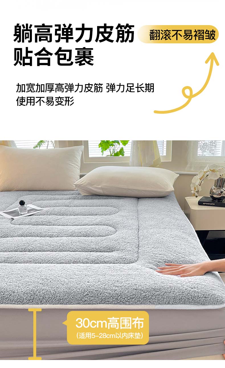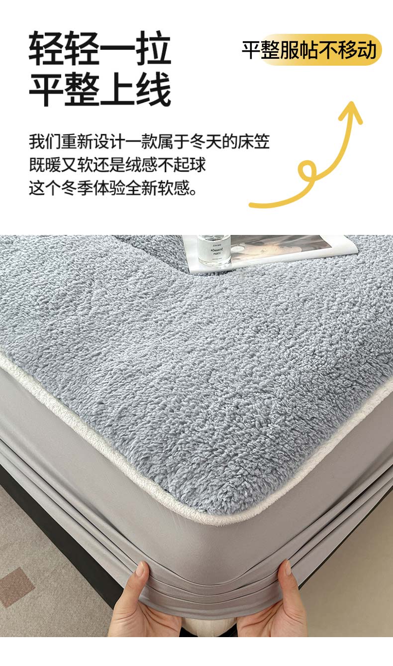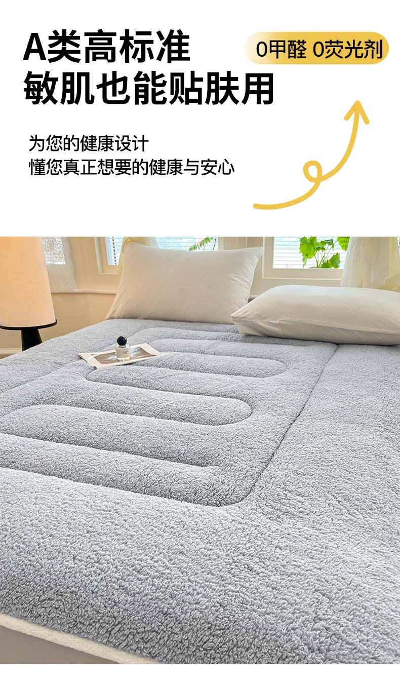 商品名称:悠米悠家 2025新款A类羊羔绒夹棉大豆床笠床垫 灰色