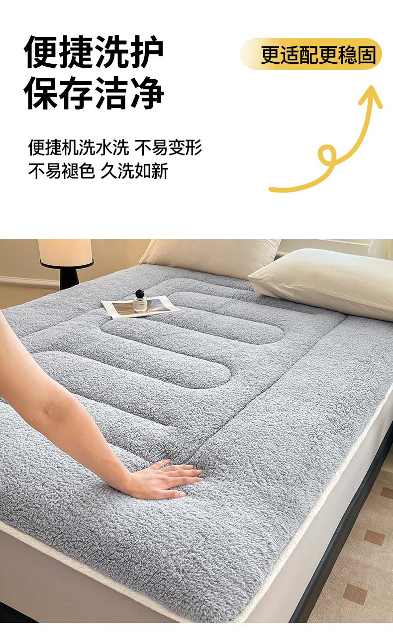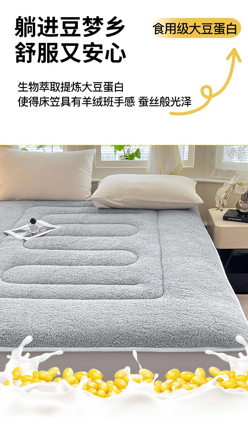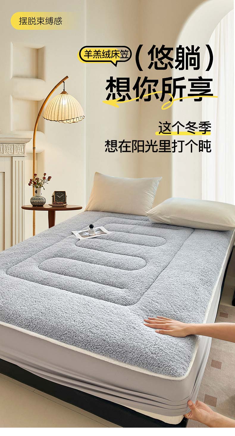 (总)悠米悠家 2025新款A类羊羔绒夹棉大豆床笠床垫,白色,粉色,灰色,橘色,咖色