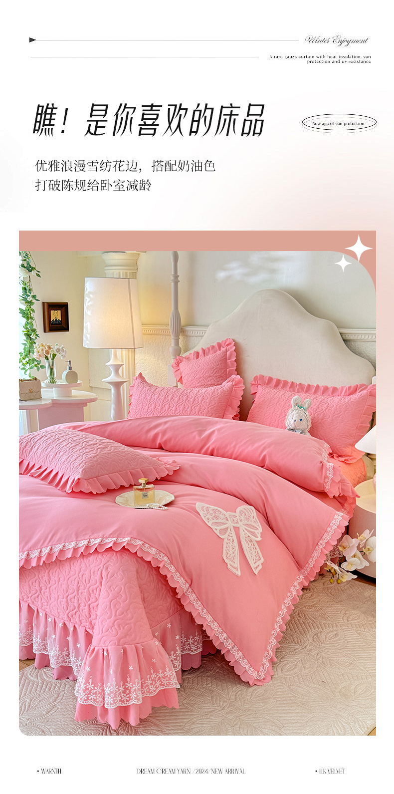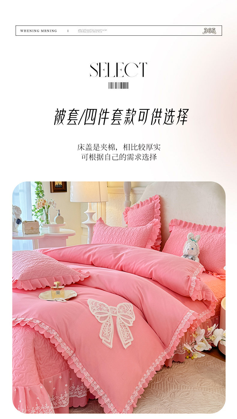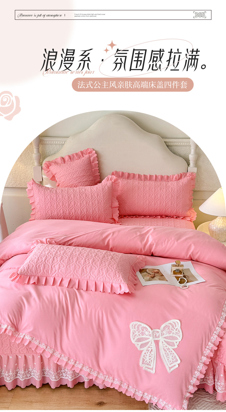 当前位置: 91家纺网 > 商品网购 > 床品套件 > 四件套 > 其它四件套 > 后庭寝室 2025新款法式公主风亲肤床盖四件套-蝶恋系列 蝶恋-粉玉