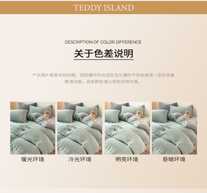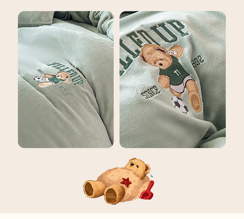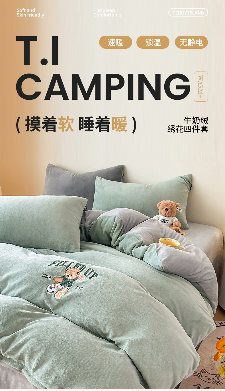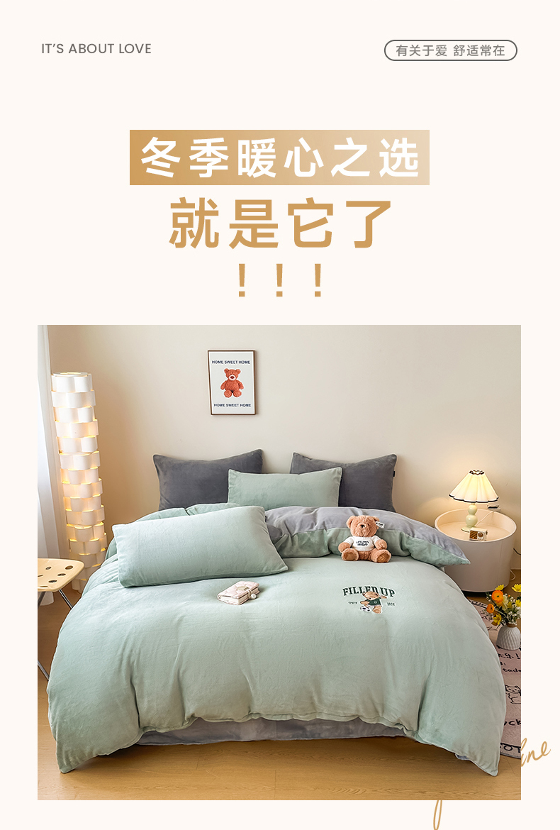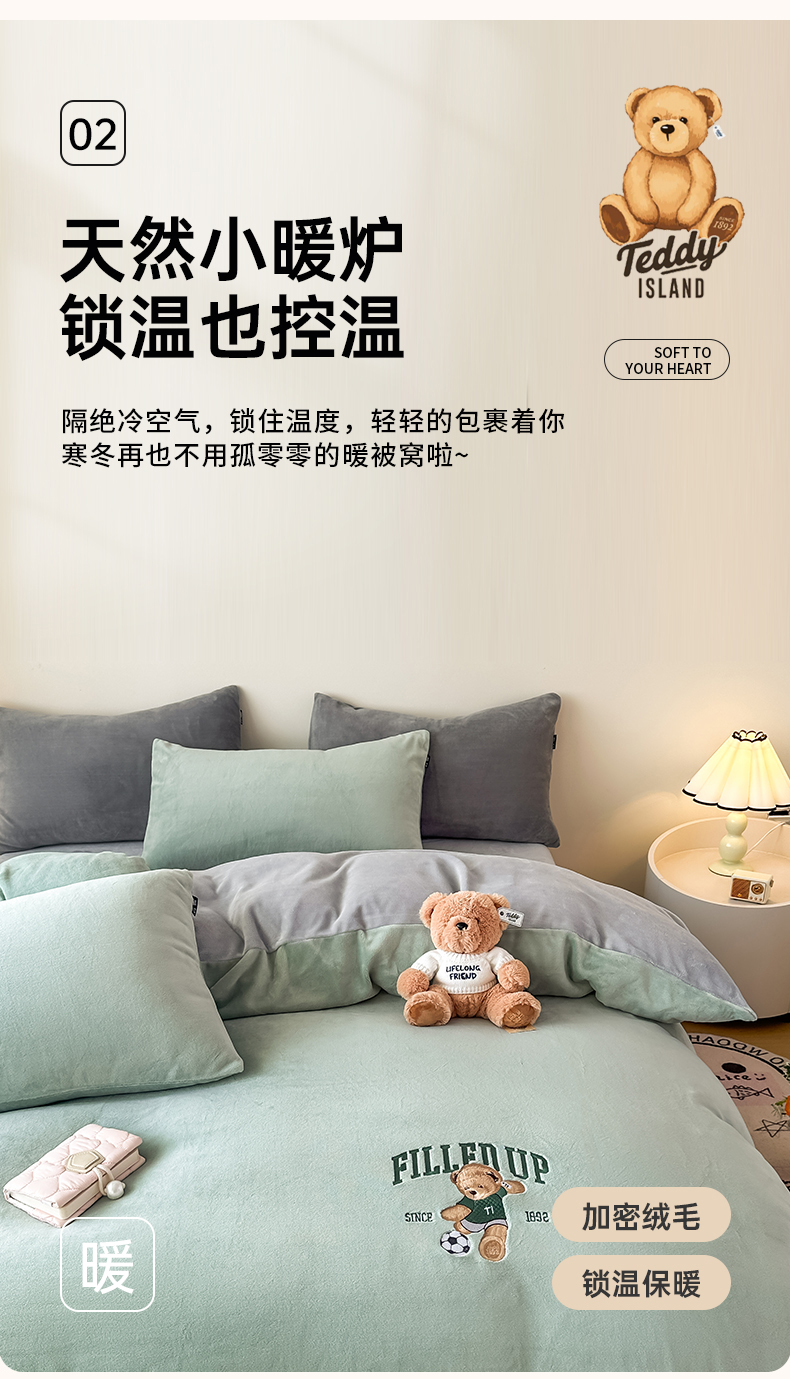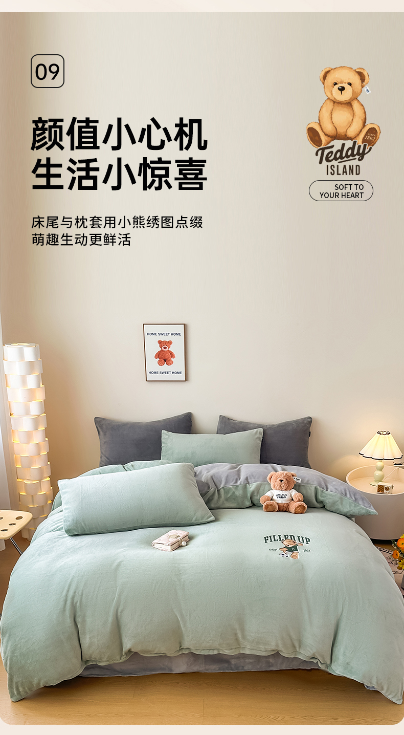 (总)泰迪爱兰Teddy ISLAND 2025新款牛奶绒绣花四件套,粉色+杏仁色,可可色+杏仁色,雾霾灰+神秘灰,香芋紫+神秘灰,杏仁色+可可色,杏仁色+神秘灰