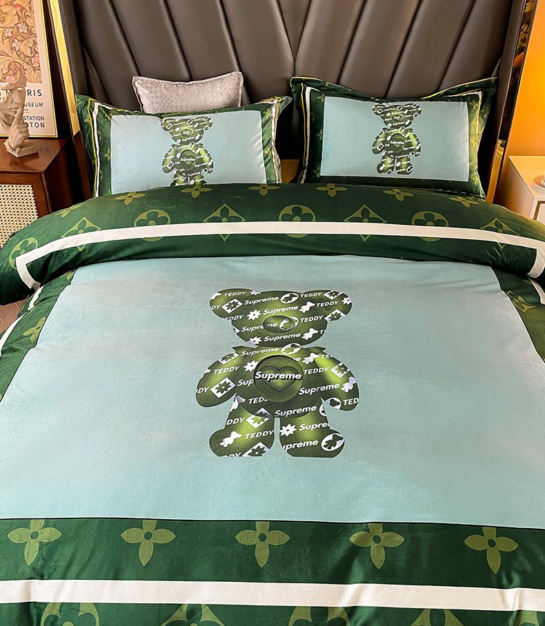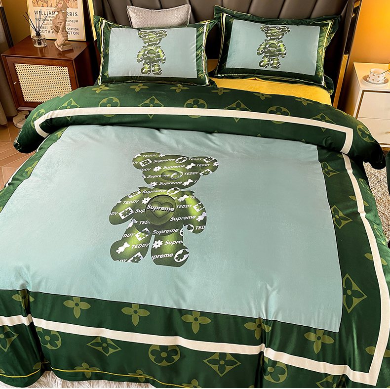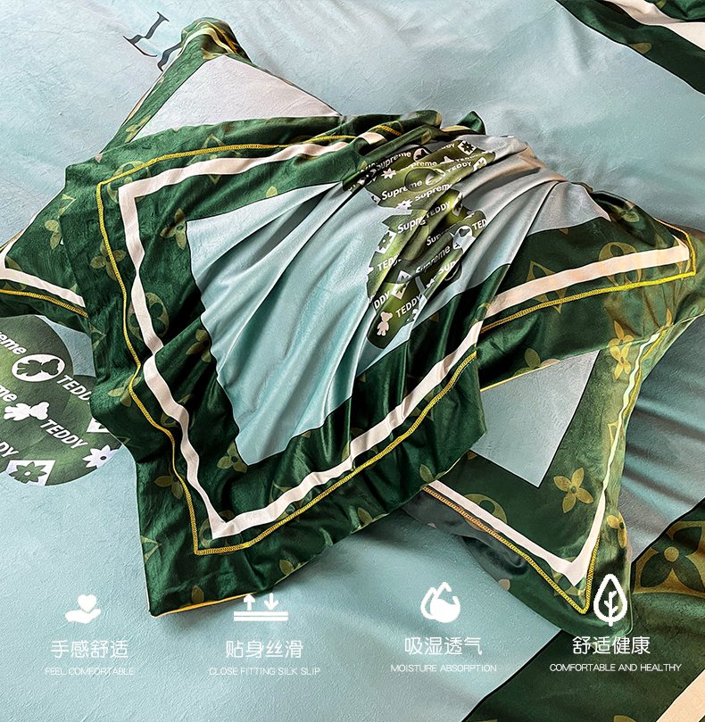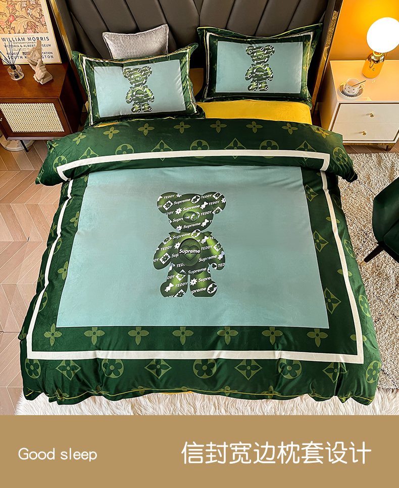 梵克保罗 2025秋冬新品有氧臻棉绒数码印花9斤单品四件套牛奶绒兔毛绒-单品系列 泰迪熊-墨绿