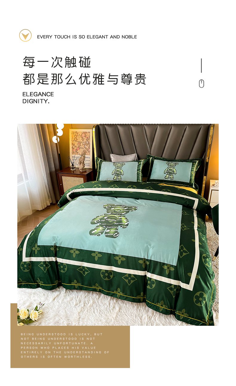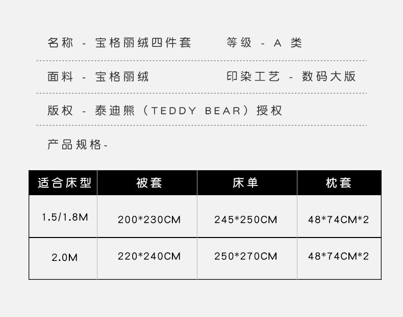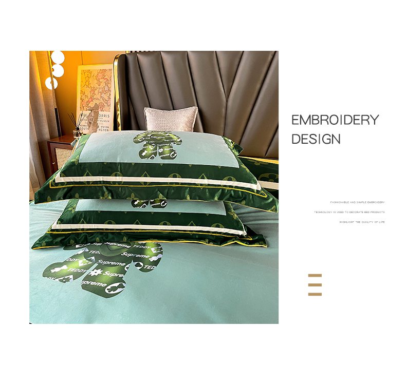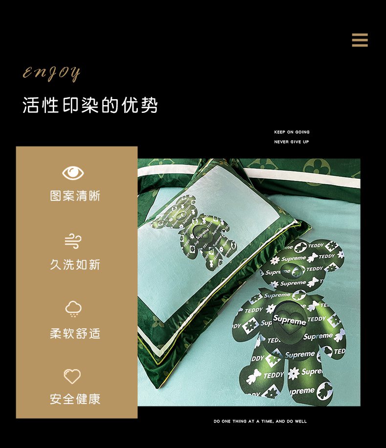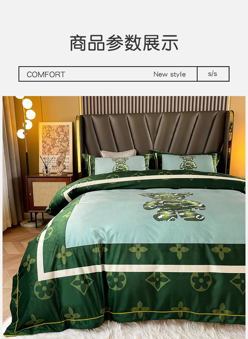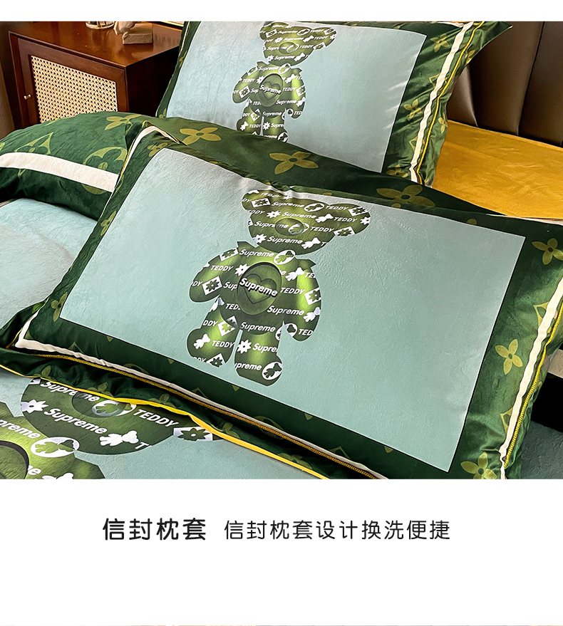 商品名称:梵克保罗 2025秋冬新品有氧臻棉绒数码印花9斤单品四件套牛奶绒兔毛绒-单品系列 泰迪熊-墨绿