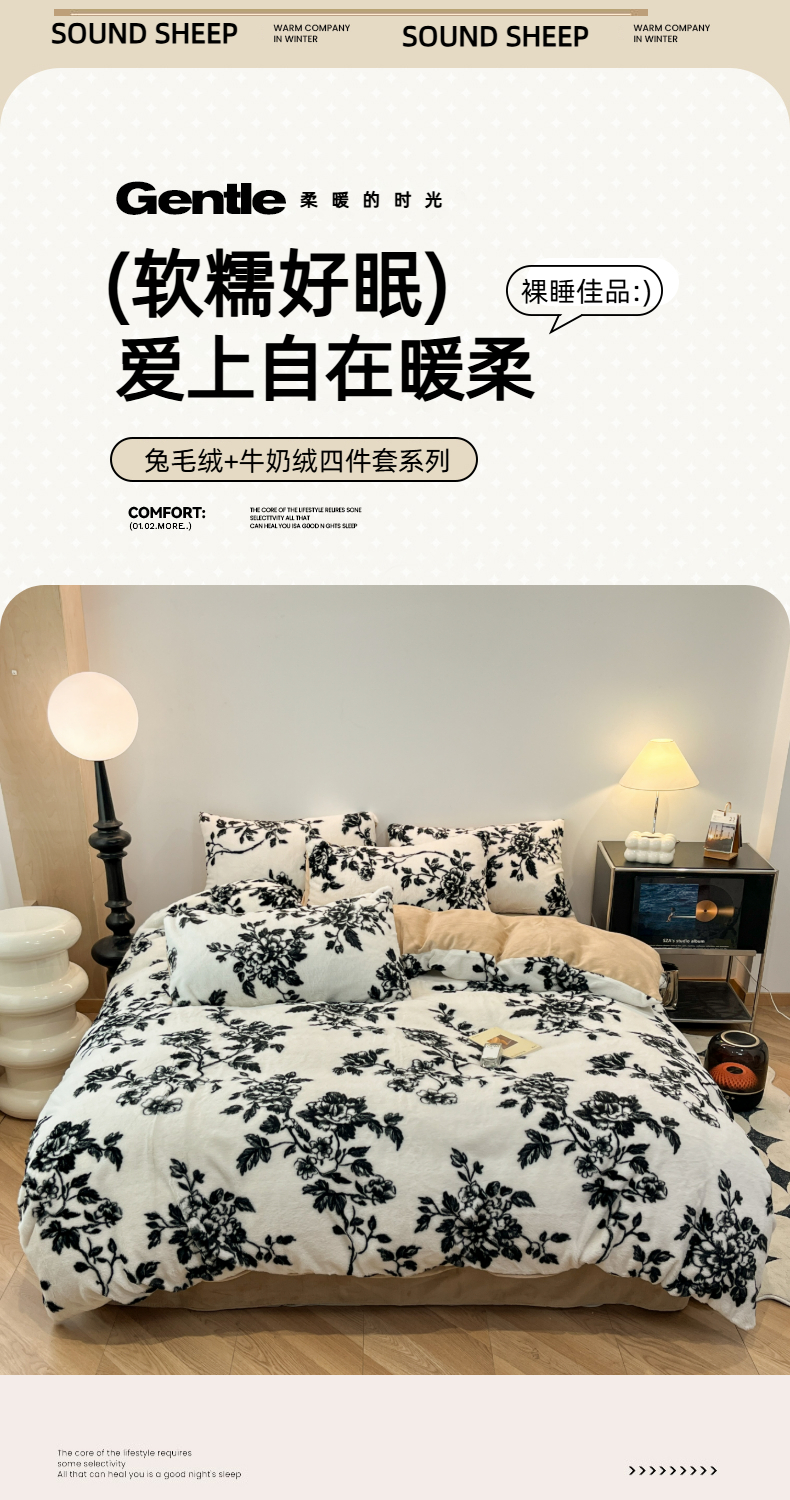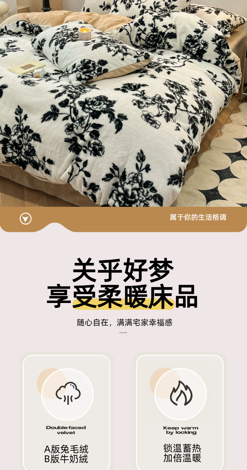 (总)金爱家 2025新款赫本风牛奶绒-花边款四件套,花边款-蝶恋花,花边款-繁花,花边款-黑白花朵,花边款-蝴蝶,花边款-盛开,花边款-枝花
