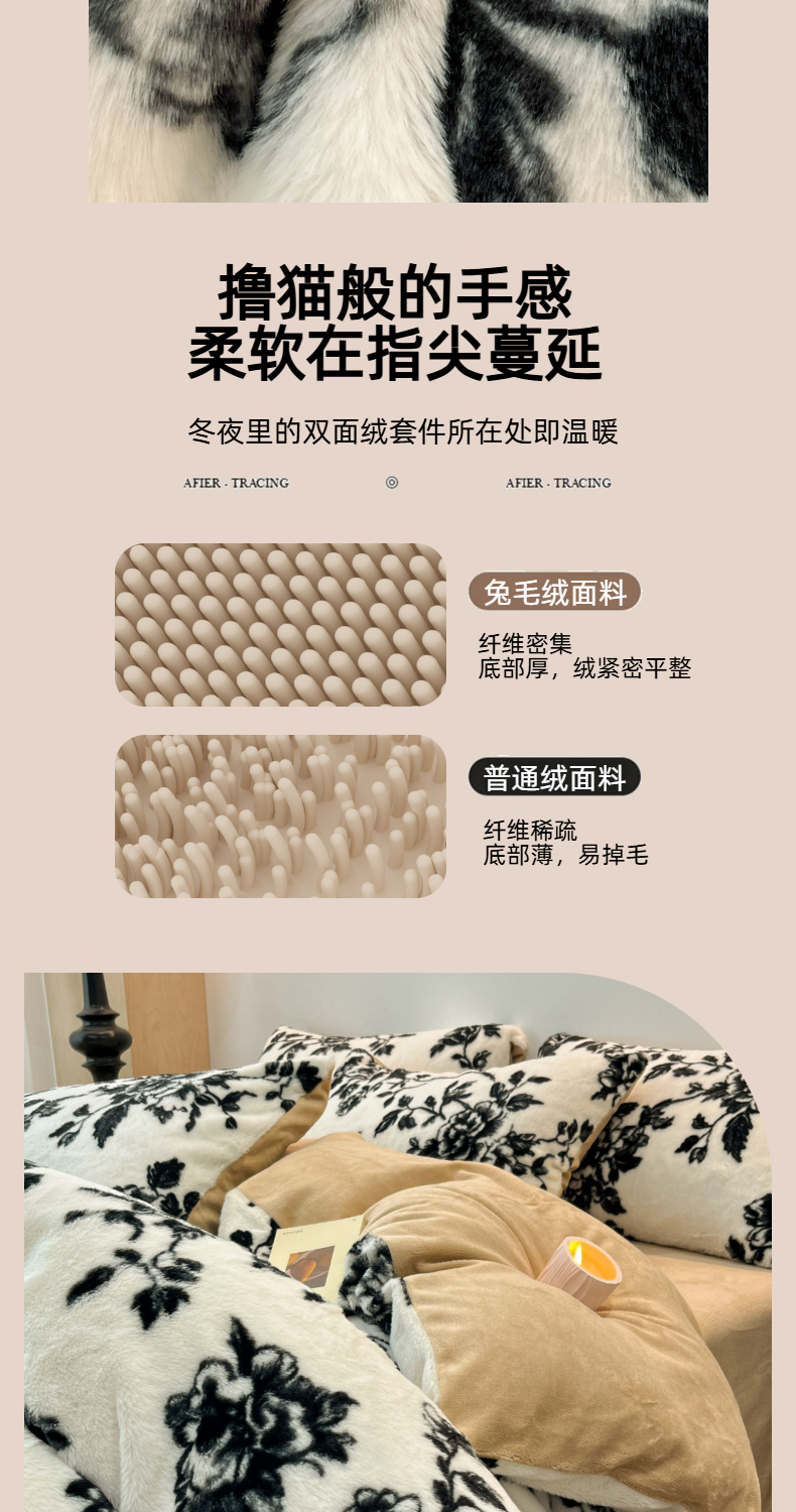 金爱家 2025新款全消光牛奶绒A类赫本风纯色獭兔毛绒立体牛奶绒四件套 兔毛-复古花白色