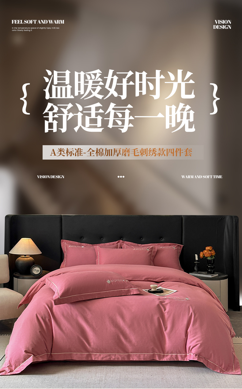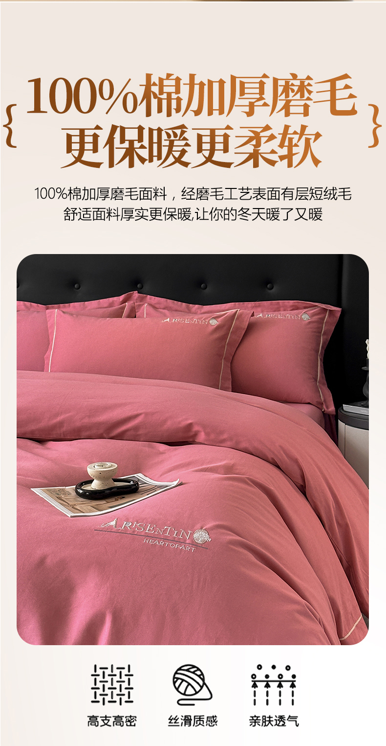 当前位置: 91家纺网 > 商品网购 > 床品套件 > 四件套 > 全棉普通四件套 > 小叮当家纺仓储工厂店 2025新款(买家秀 不断货)A类全棉长绒棉纯棉加厚刺绣磨毛四件套-邂逅 邂逅-蜜豆红