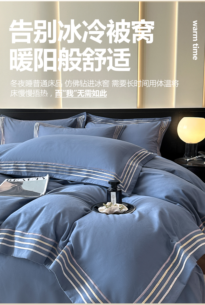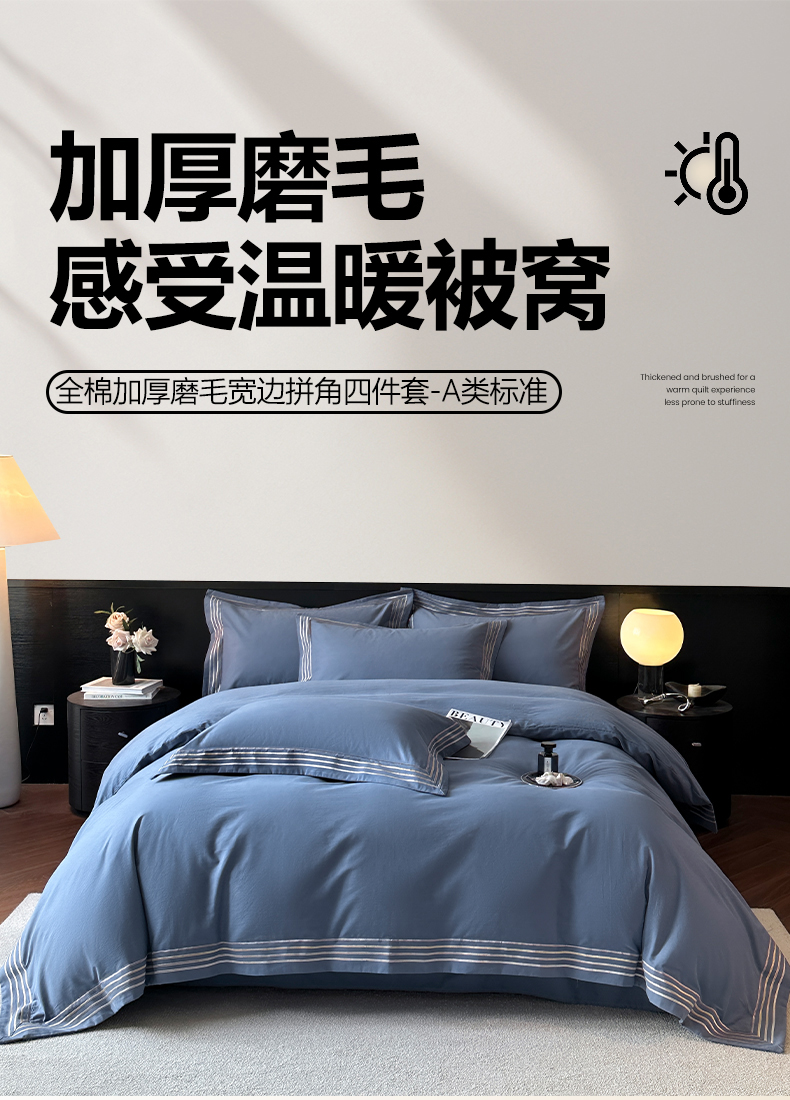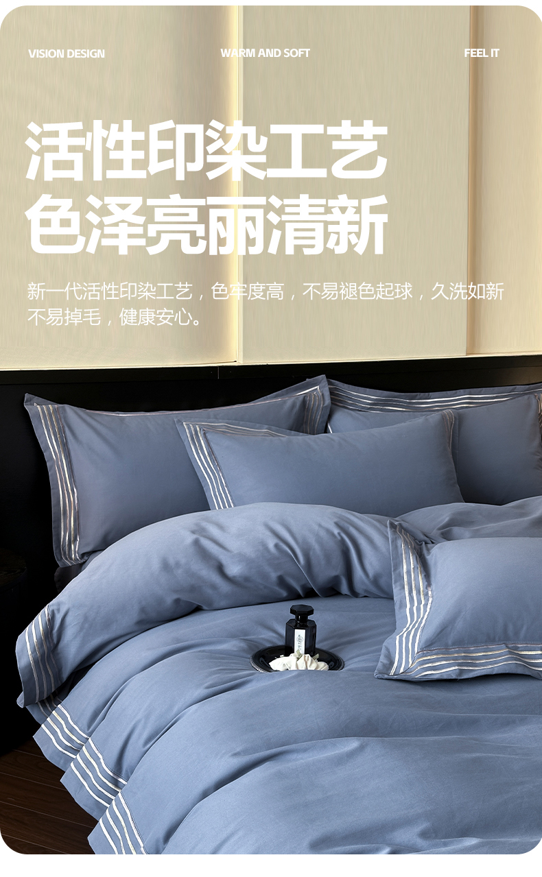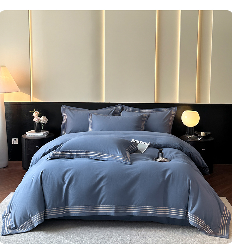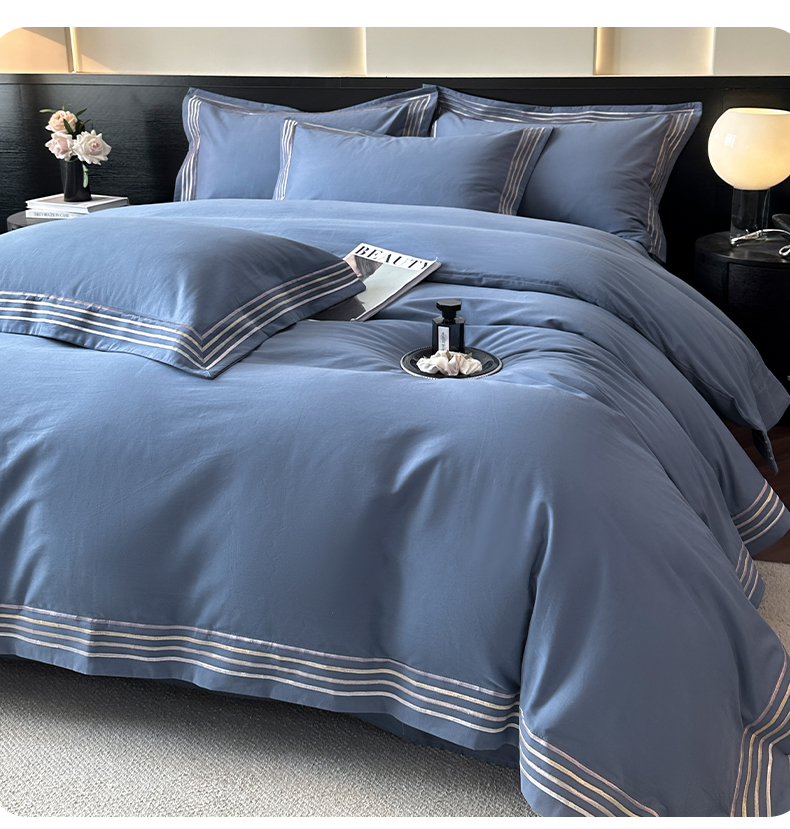 当前位置: 91家纺网 > 商品网购 > 床品套件 > 四件套 > 全棉普通四件套 > 小叮当家纺仓储工厂店 2025新款A类(买家秀 不断货)全棉纯棉长绒棉纯棉加厚刺绣磨毛四件套-千浔系列 千浔-海茵蓝