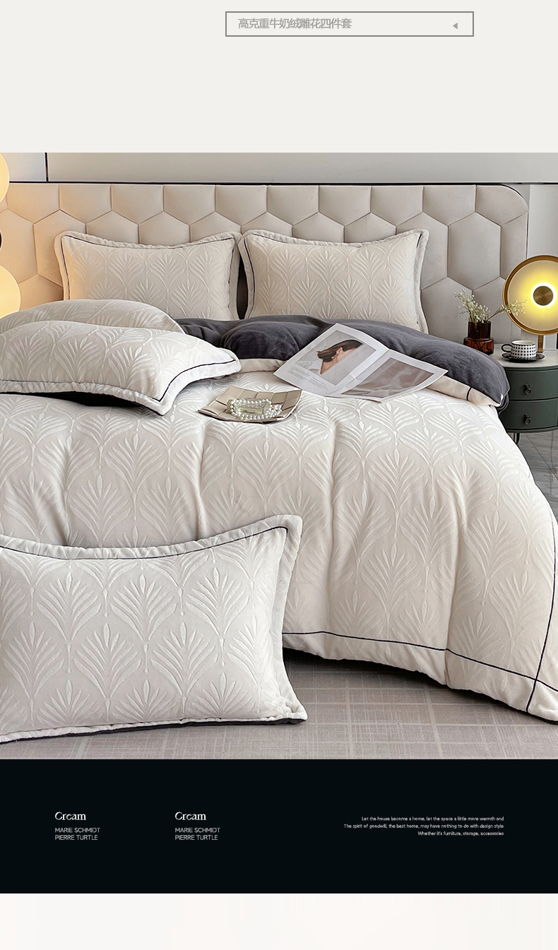 商品名称:慕希家纺 2025新款高克重牛奶绒雕花四件套-秘境 秘境-云岩灰
