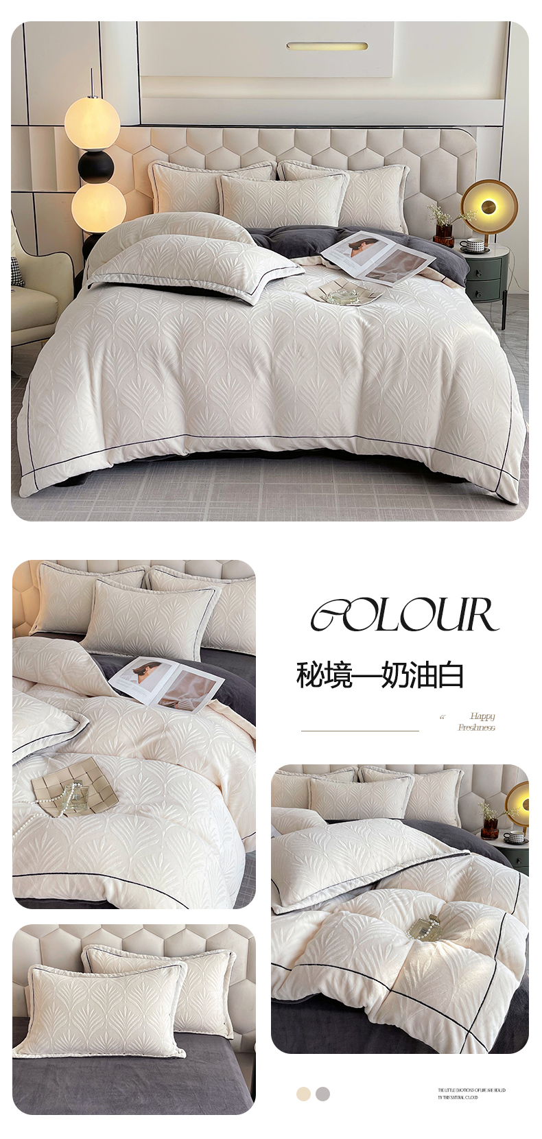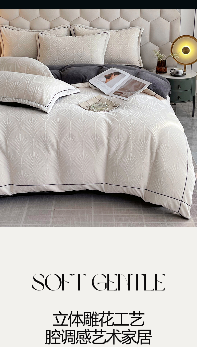 (总)慕希家纺 2025新款高克重牛奶绒雕花四件套-秘境,秘境-奶油白,秘境-浅山咖,秘境-樱花粉,秘境-云岩灰