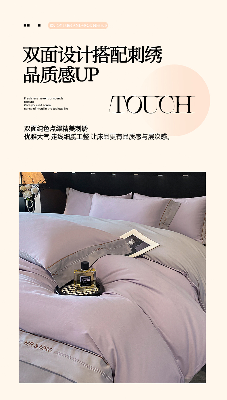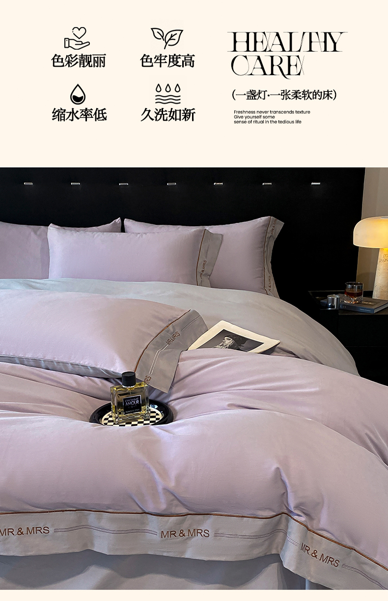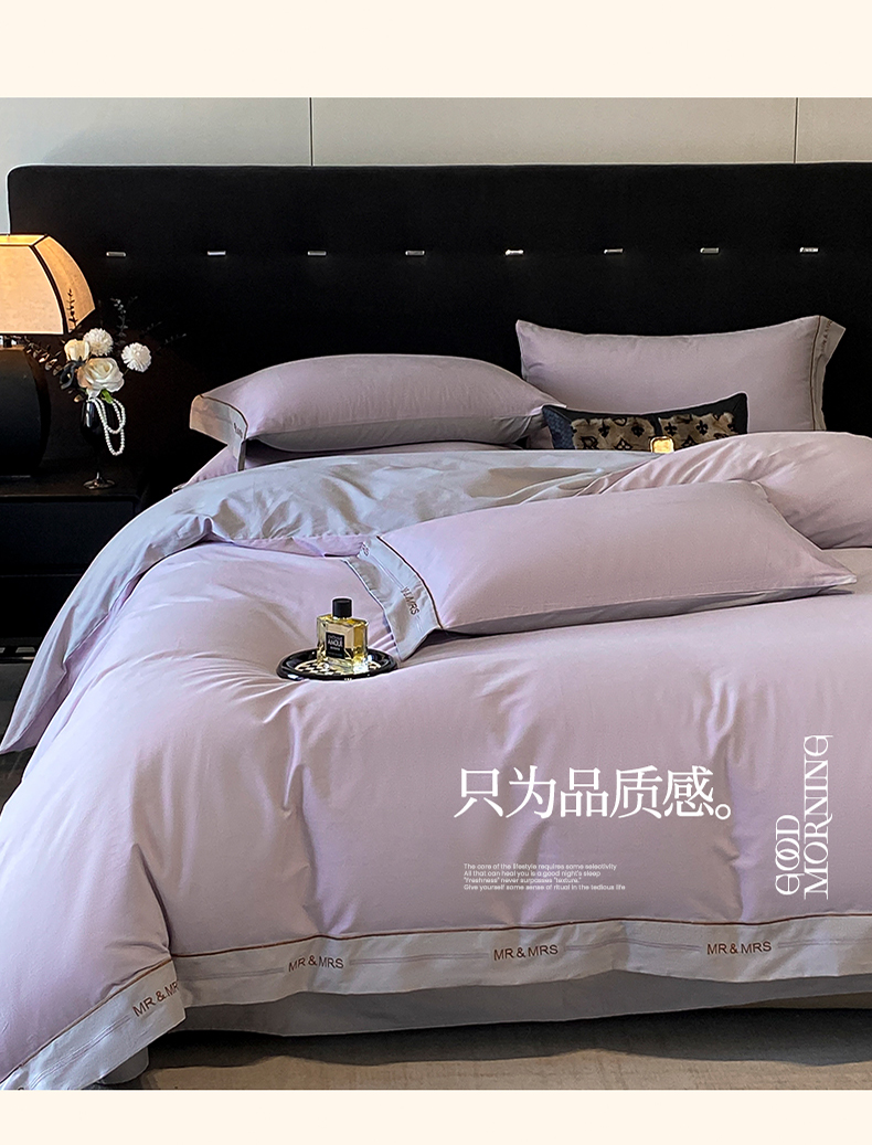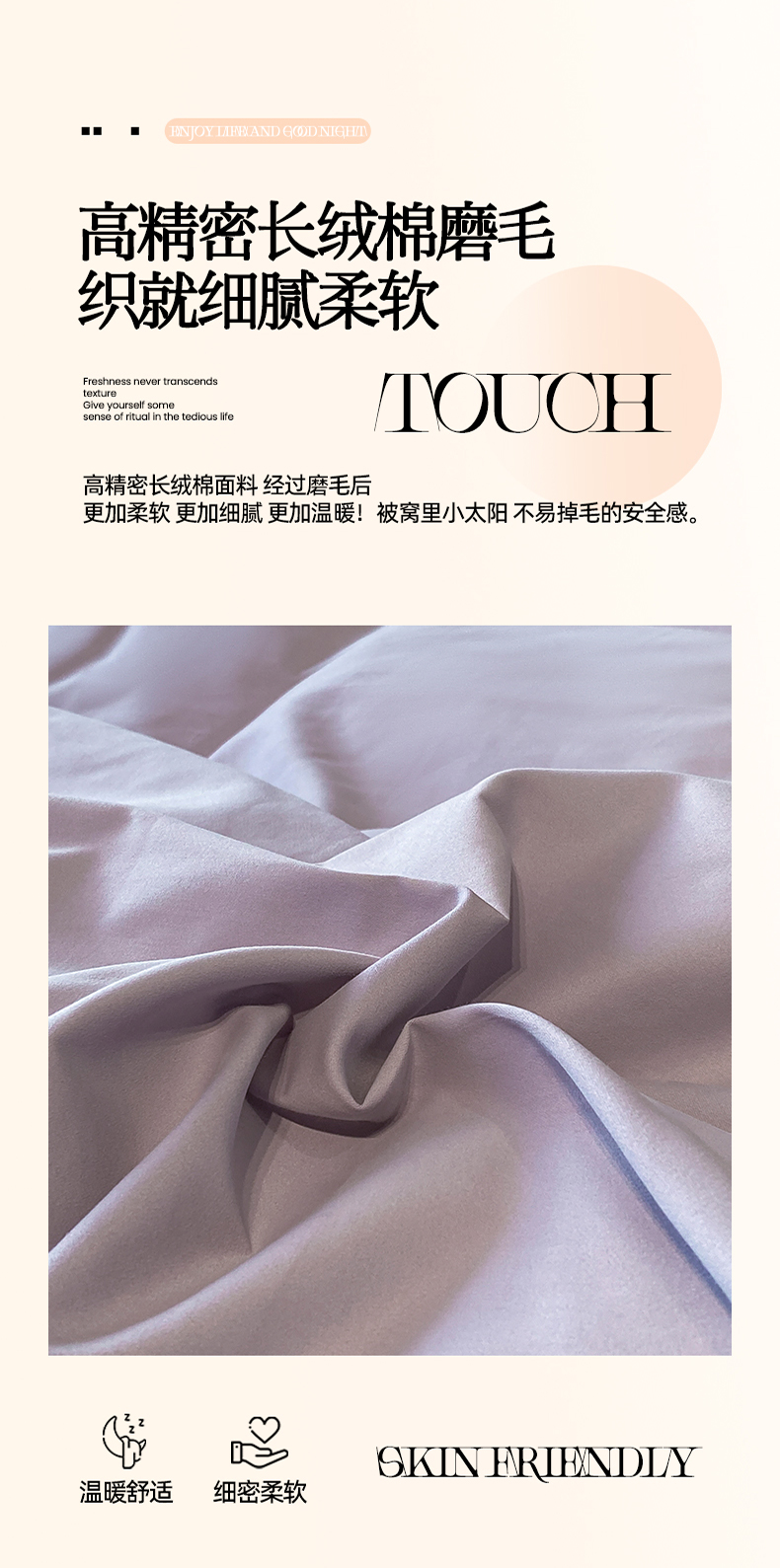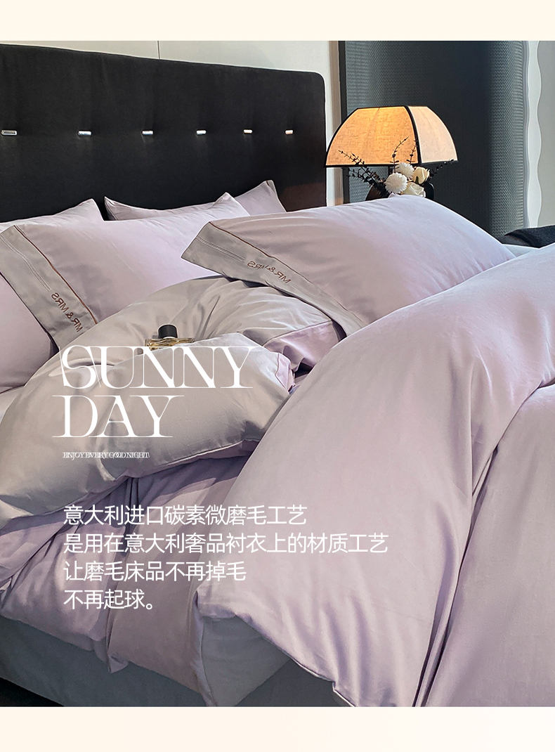 小叮当家纺仓储工厂店 2025新款 (买家秀 不断货)更细腻A类全棉纯棉100支长绒棉磨毛四件套不毛 曼紫云灰