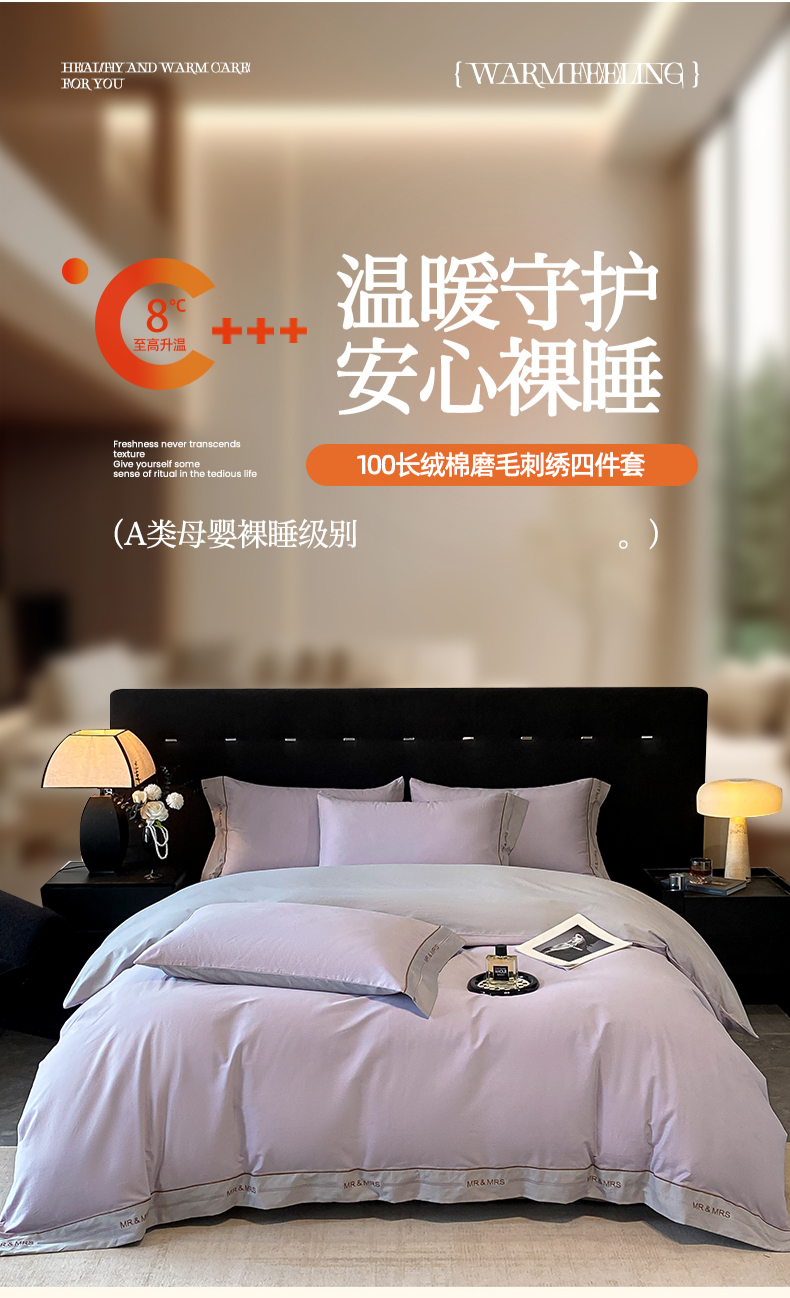 商品名称:小叮当家纺仓储工厂店 2025新款 (买家秀 不断货)更细腻A类全棉纯棉100支长绒棉磨毛四件套不毛 曼紫云灰