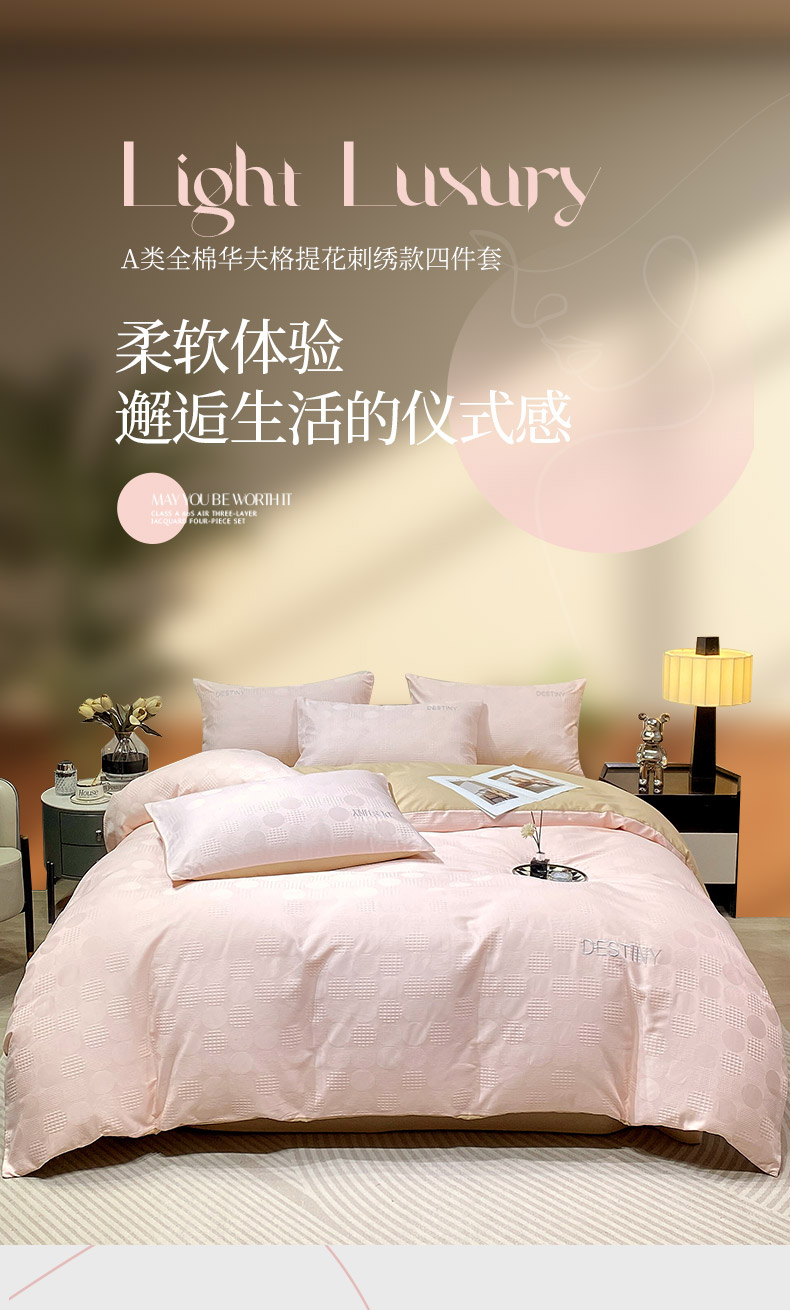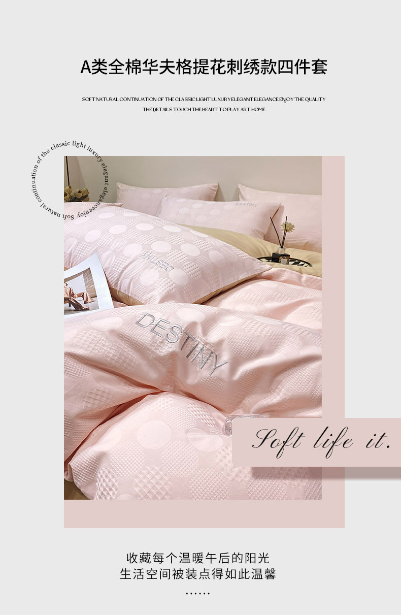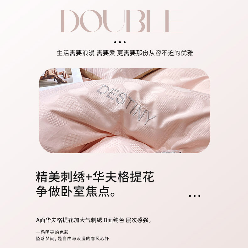 当前位置: 91家纺网 > 商品网购 > 床品套件 > 四件套 > 全棉普通四件套 > 小叮当家纺仓储工厂店 2025新款秋冬(热买家秀不断货)A类母婴级亲肤全棉纯棉华夫格提花纯棉刺绣四件套 团圆-粉玉