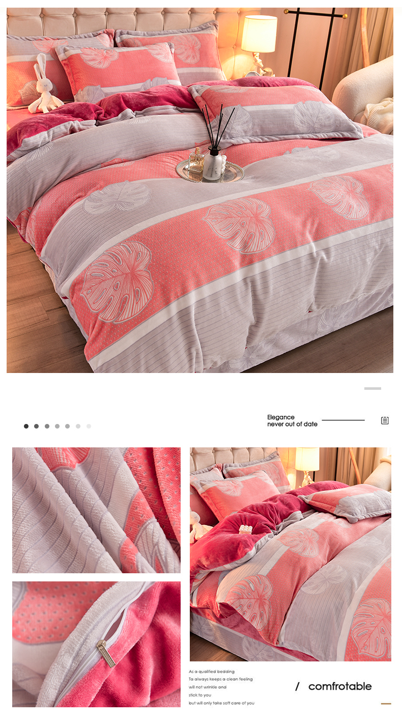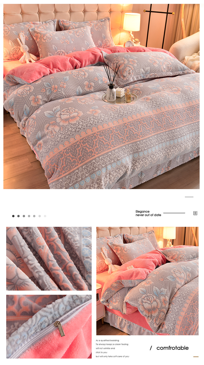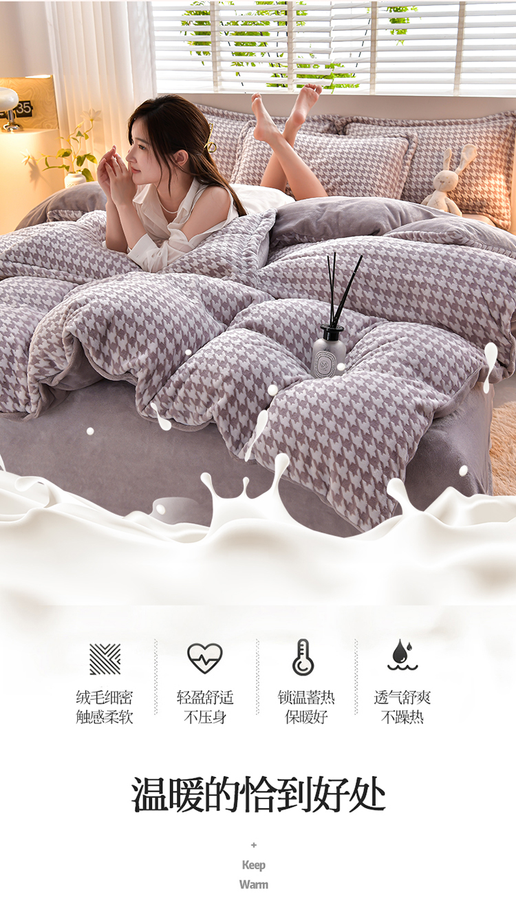 (总)畅畅家纺 2024新款高克重加厚保暖冬季牛奶绒纯色床盖款四件套,豆沙,灰色,天蓝,玉色,中国红