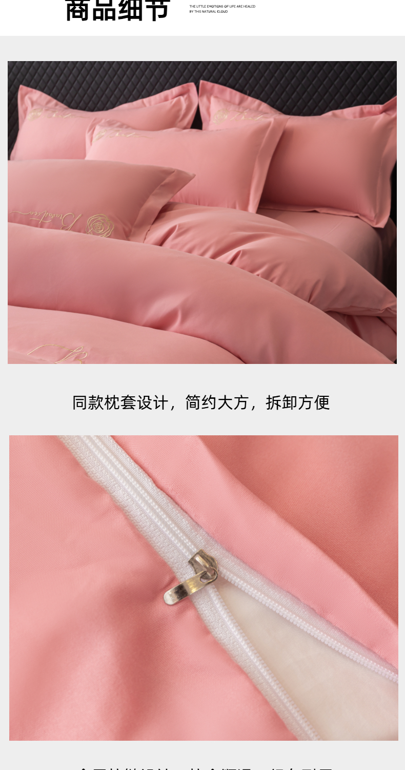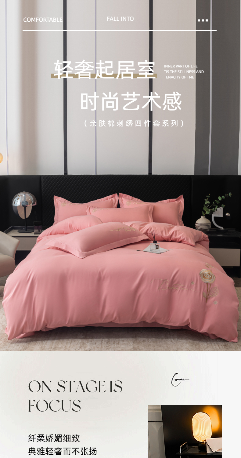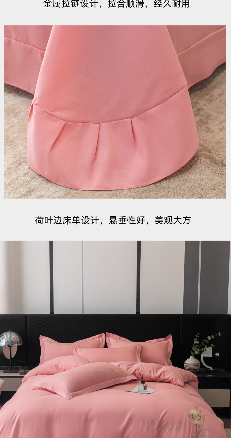 商品名称:悦织湾家纺 90克磨毛刺绣纯色四件套2025新款轻奢韩版公主风精致床上用品绣花亲肤水洗棉4件套 锐莎-玉色