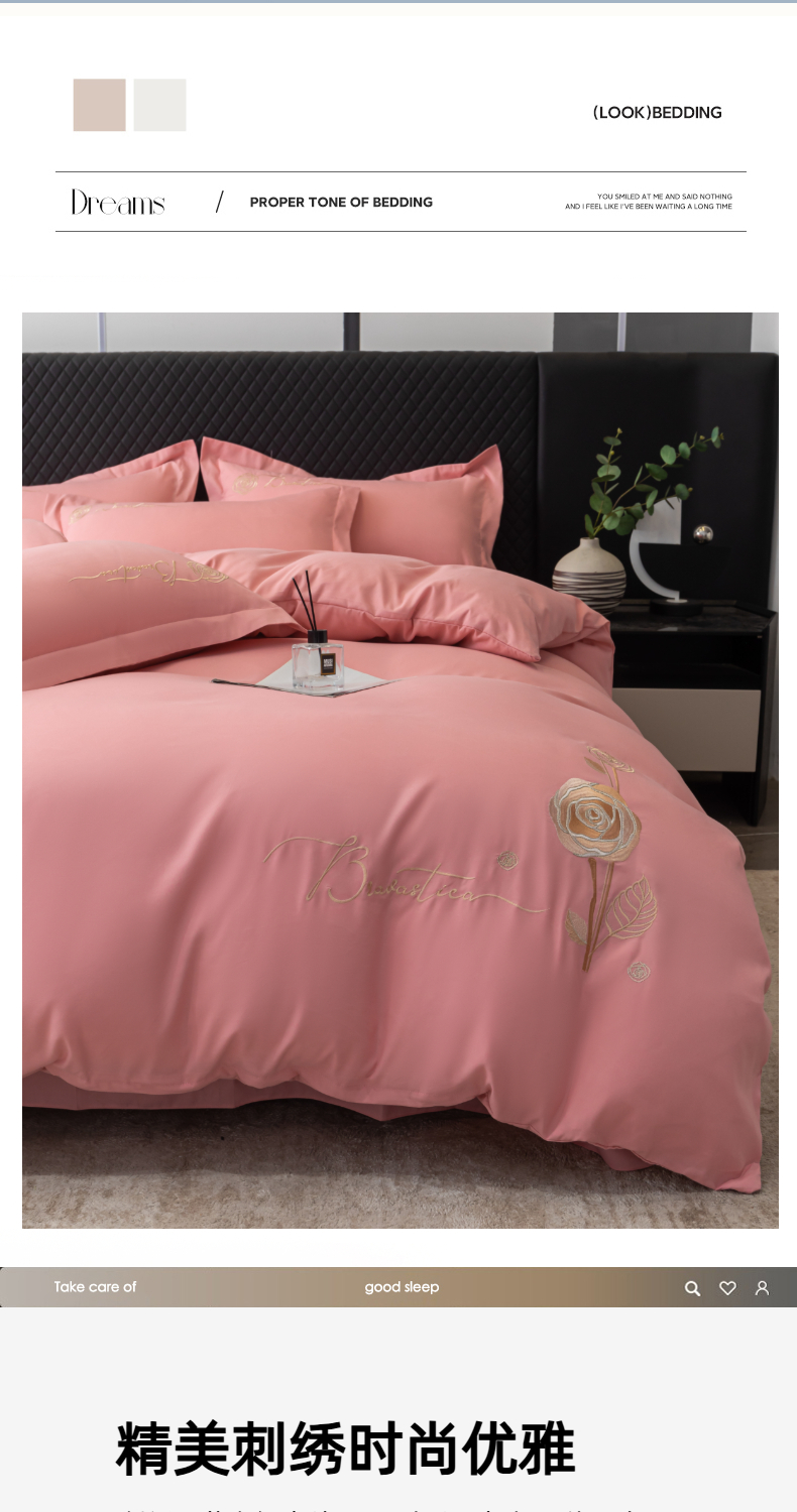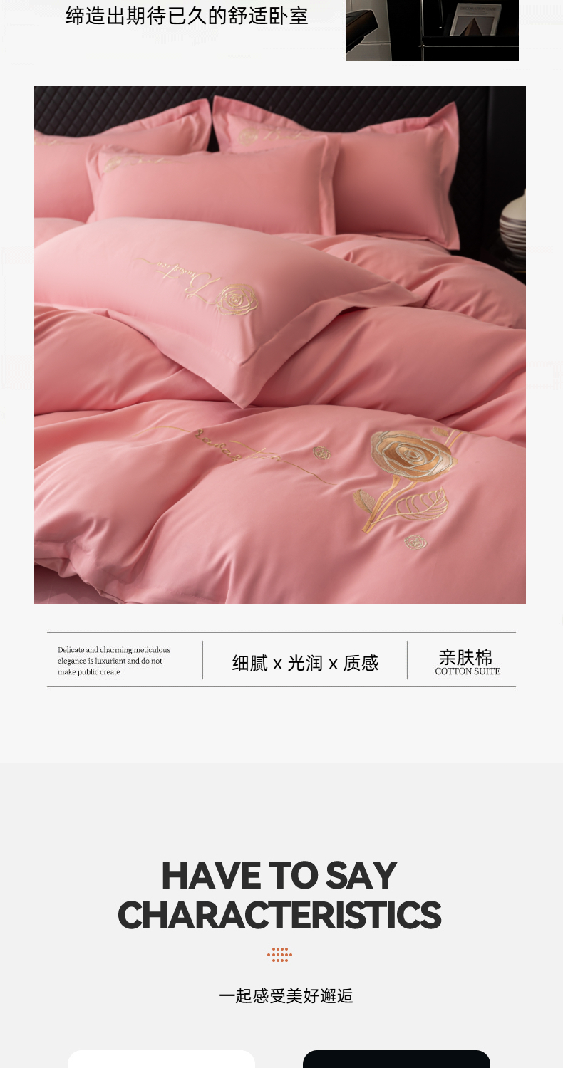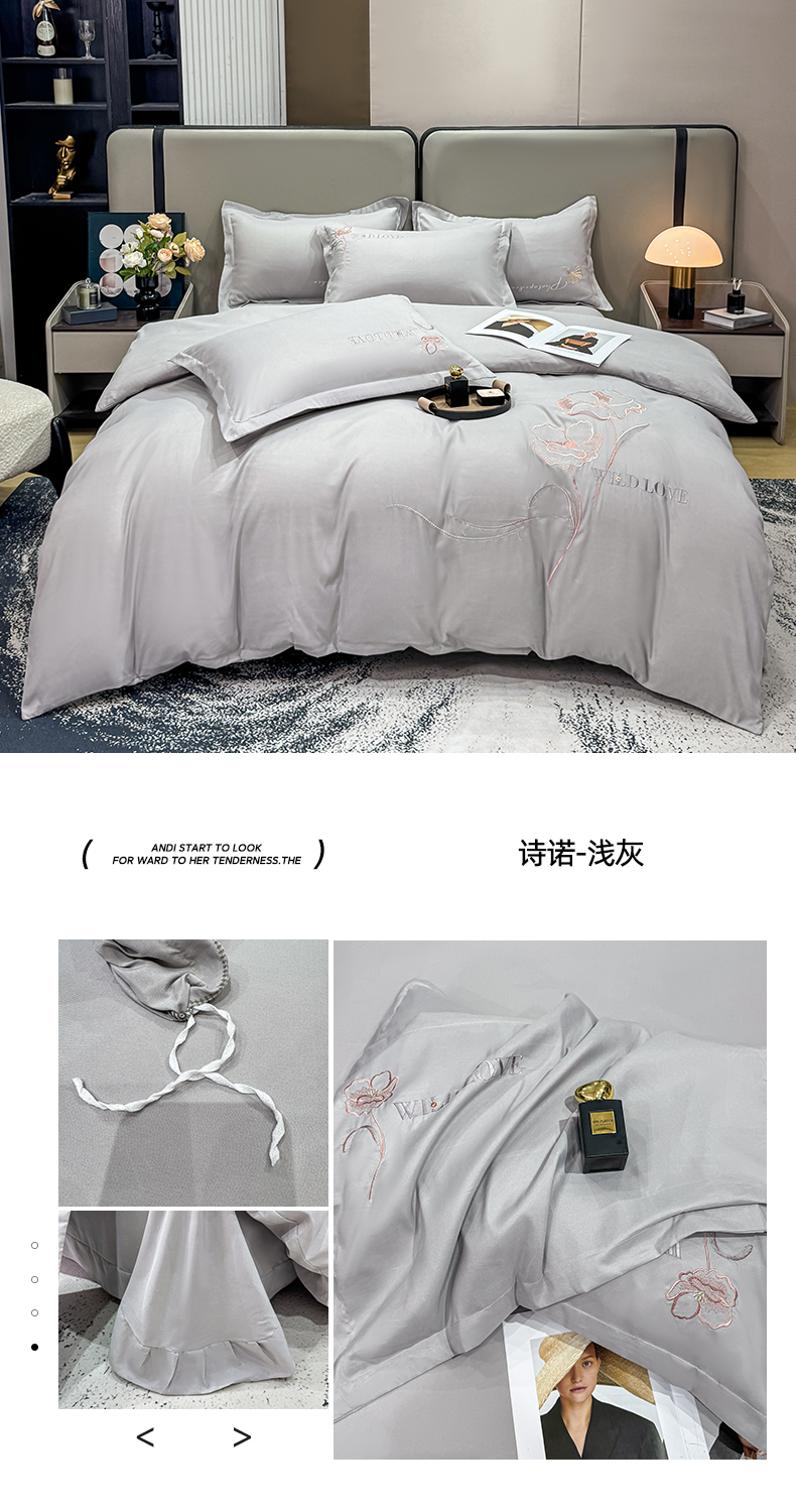 商品名称:悦织湾家纺 90克磨毛刺绣纯色四件套2025新款轻奢韩版公主风精致床上用品绣花亲肤水洗棉4件套 锐莎-玉色