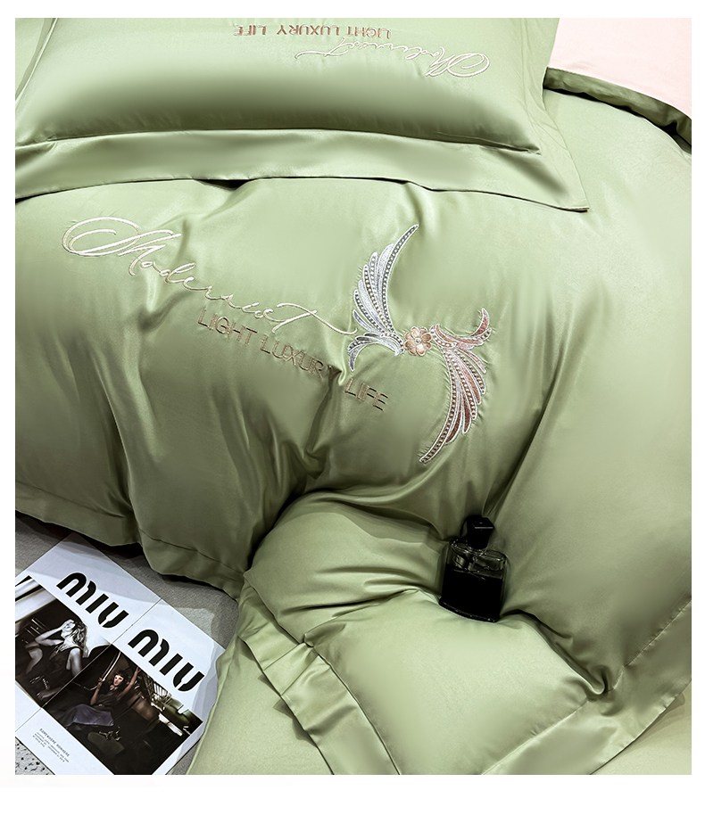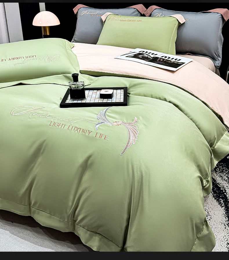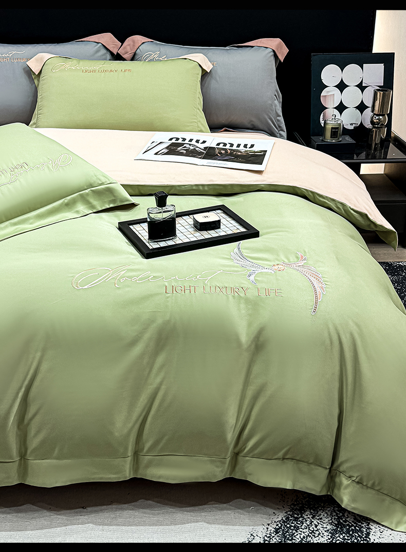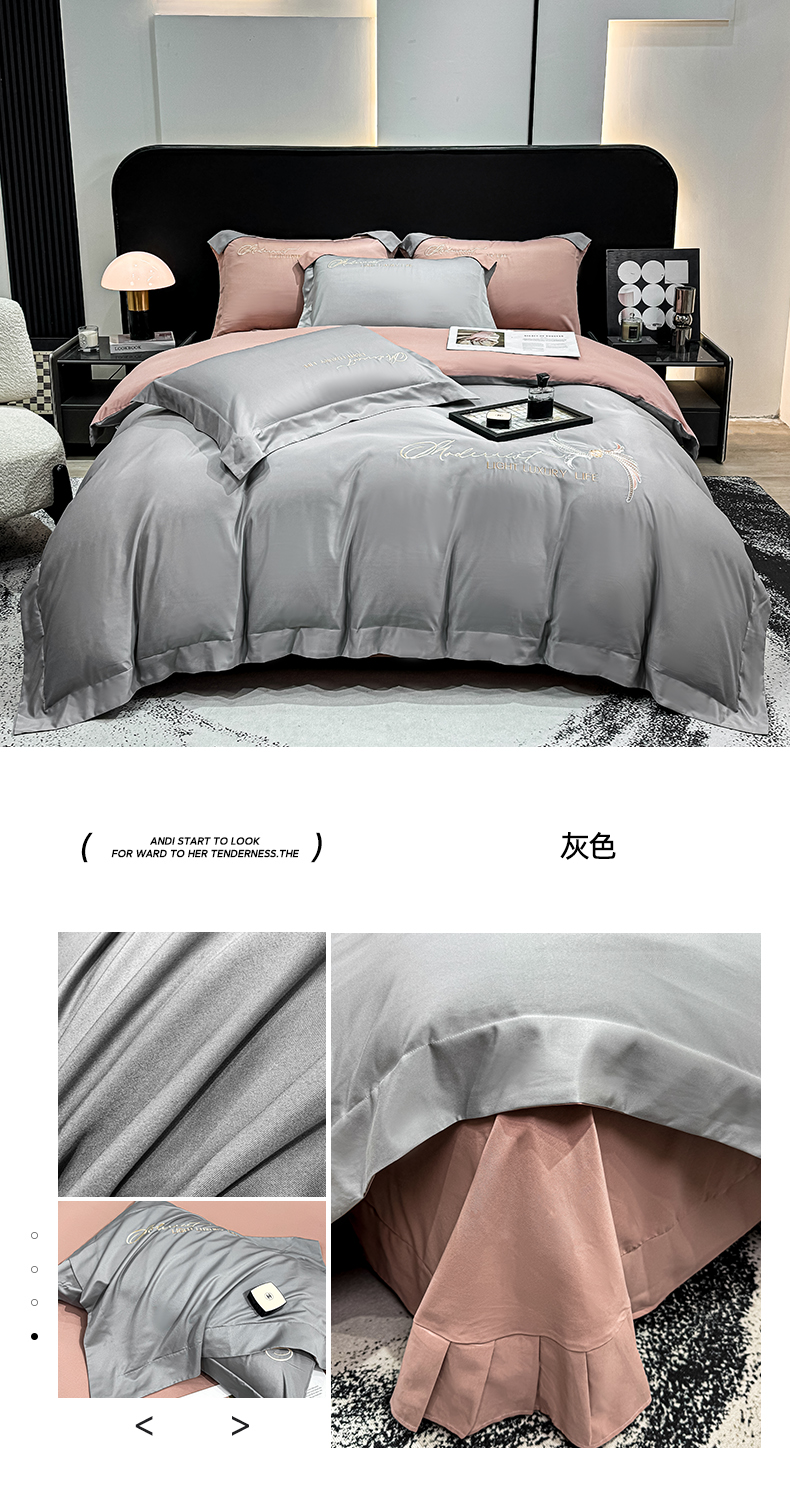 商品名称:(总)悦织湾家纺 亲肤120克水洗棉磨毛刺绣纯色四件套2025新款轻奢韩版公主风精致床上用品绣花4件套