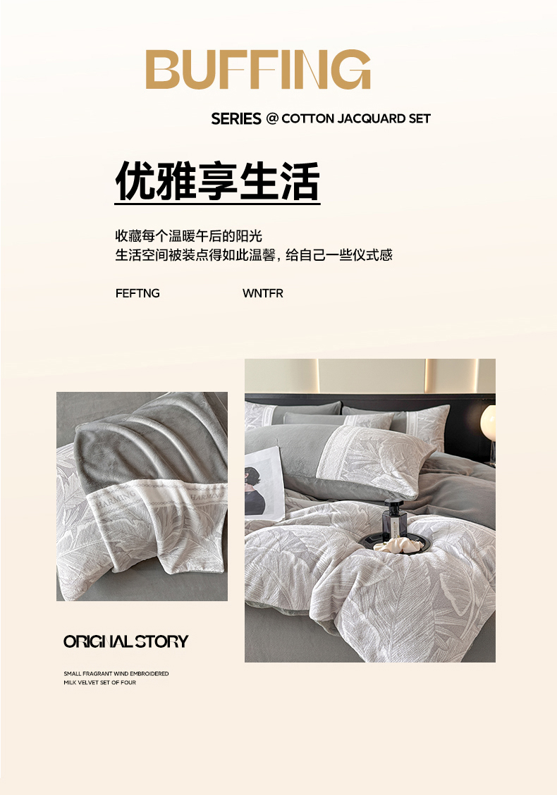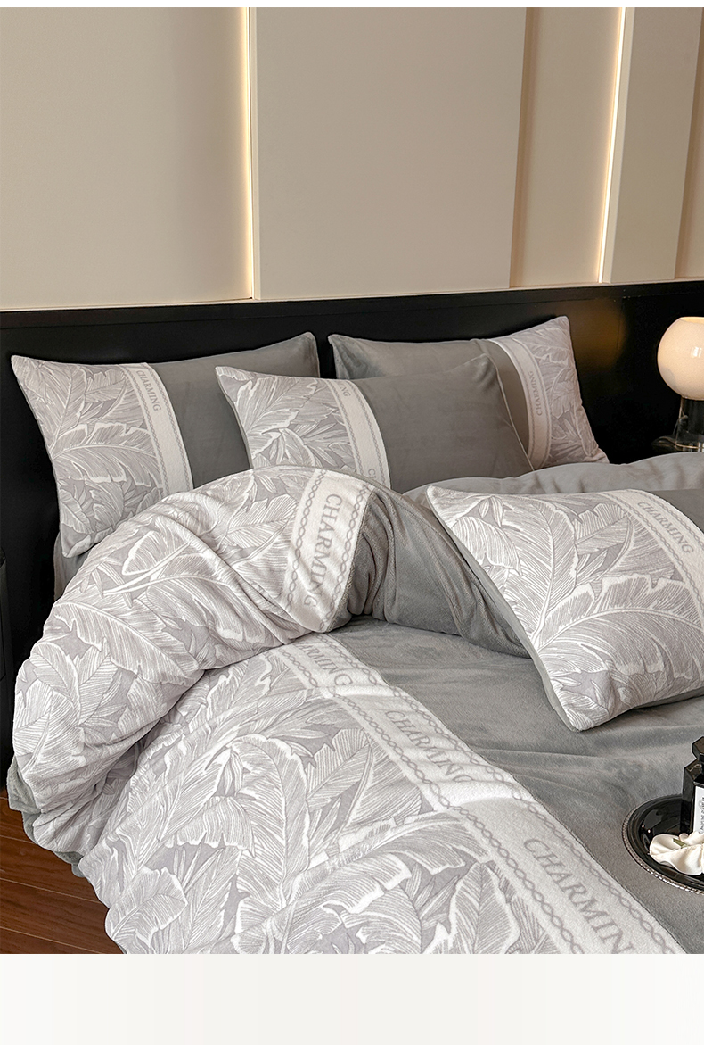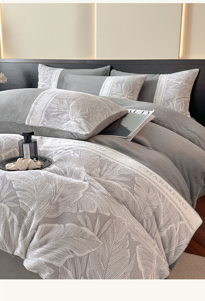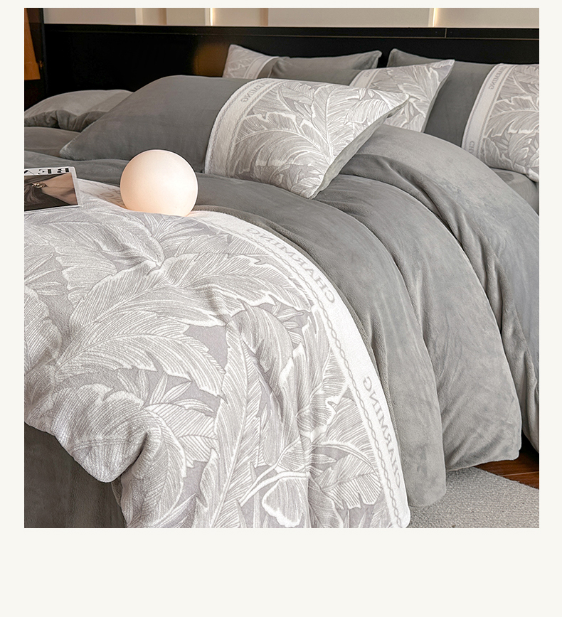 梦幻之城 2025新款牛奶绒刺绣款四件套-苏缦 经典灰