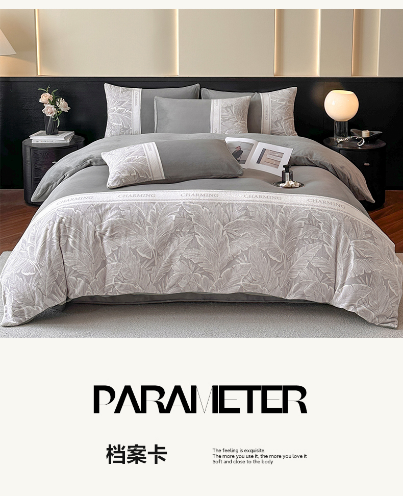 商品名称:梦幻之城 2025新款牛奶绒刺绣款四件套-苏缦 经典灰