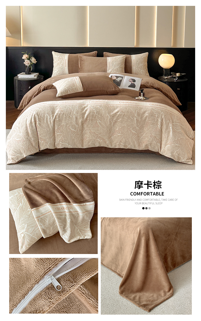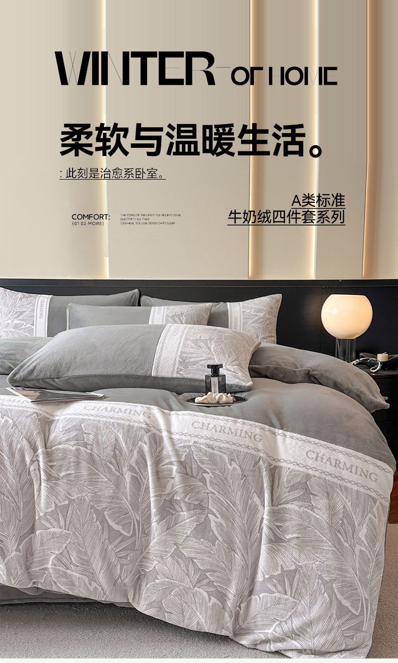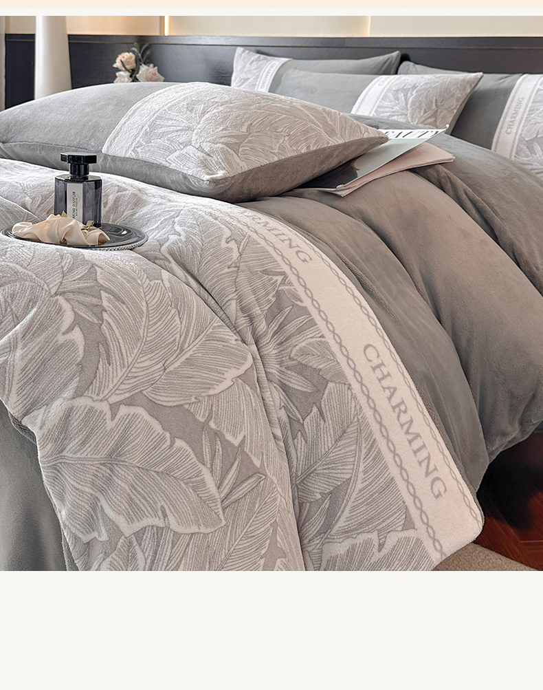 (总)梦幻之城 2025新款雕花牛奶绒系列四件套-丽娜,丽娜-橙意粉,丽娜-香槟色,丽娜-香草灰,丽娜-月白绿