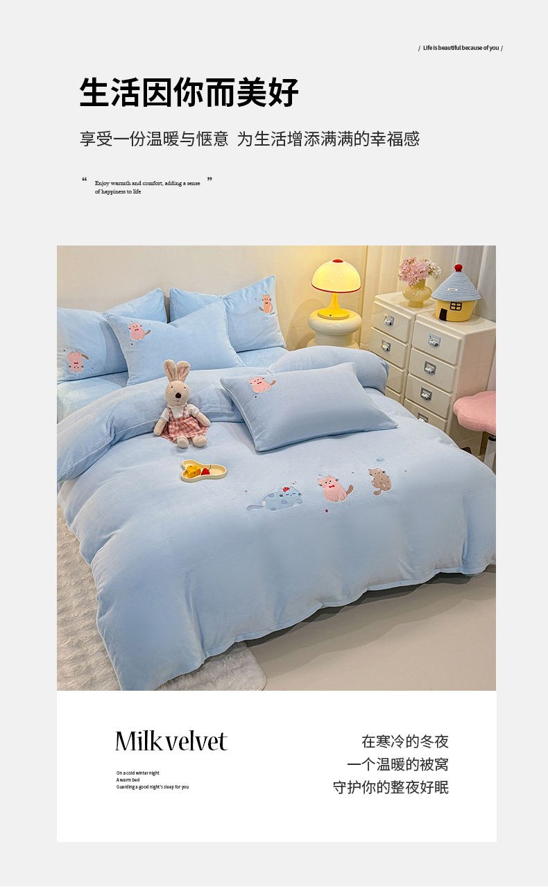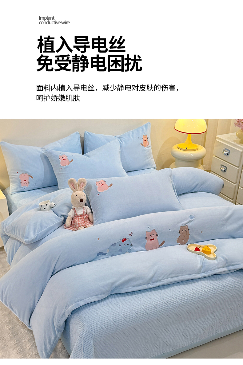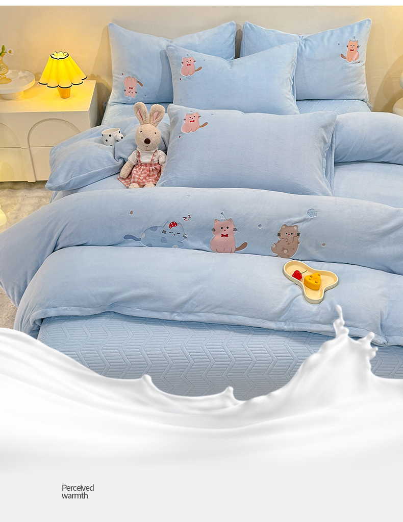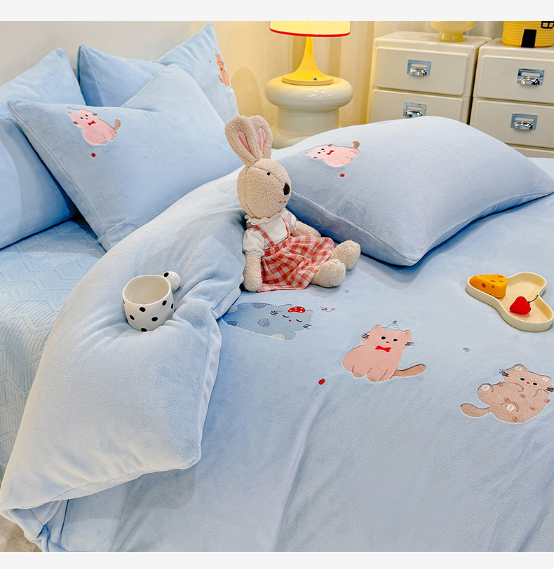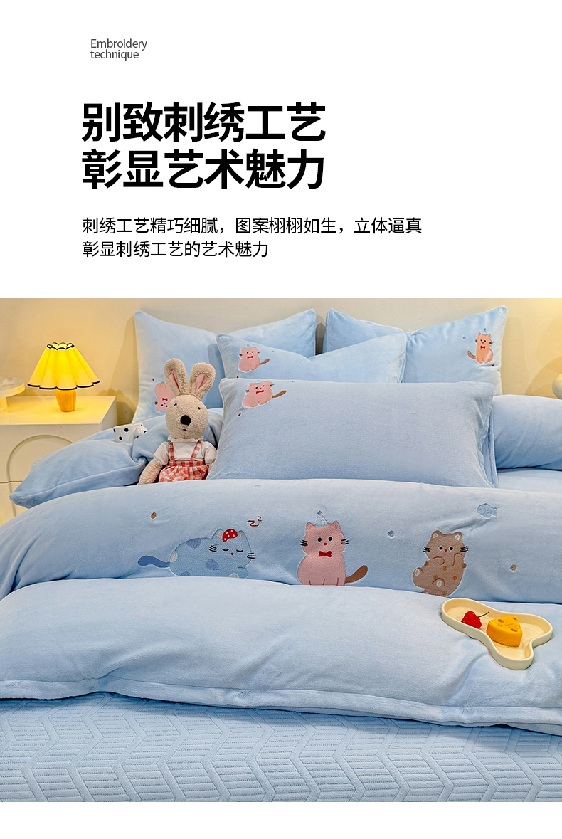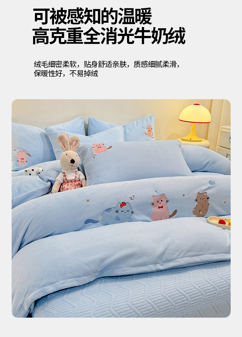 当前位置: 91家纺网 > 商品网购 > 床品套件 > 四件套 > 牛奶绒四件套 > 新方向 2025新款全消光A类刺绣牛奶绒四件套-可爱猫 可爱猫-星月蓝