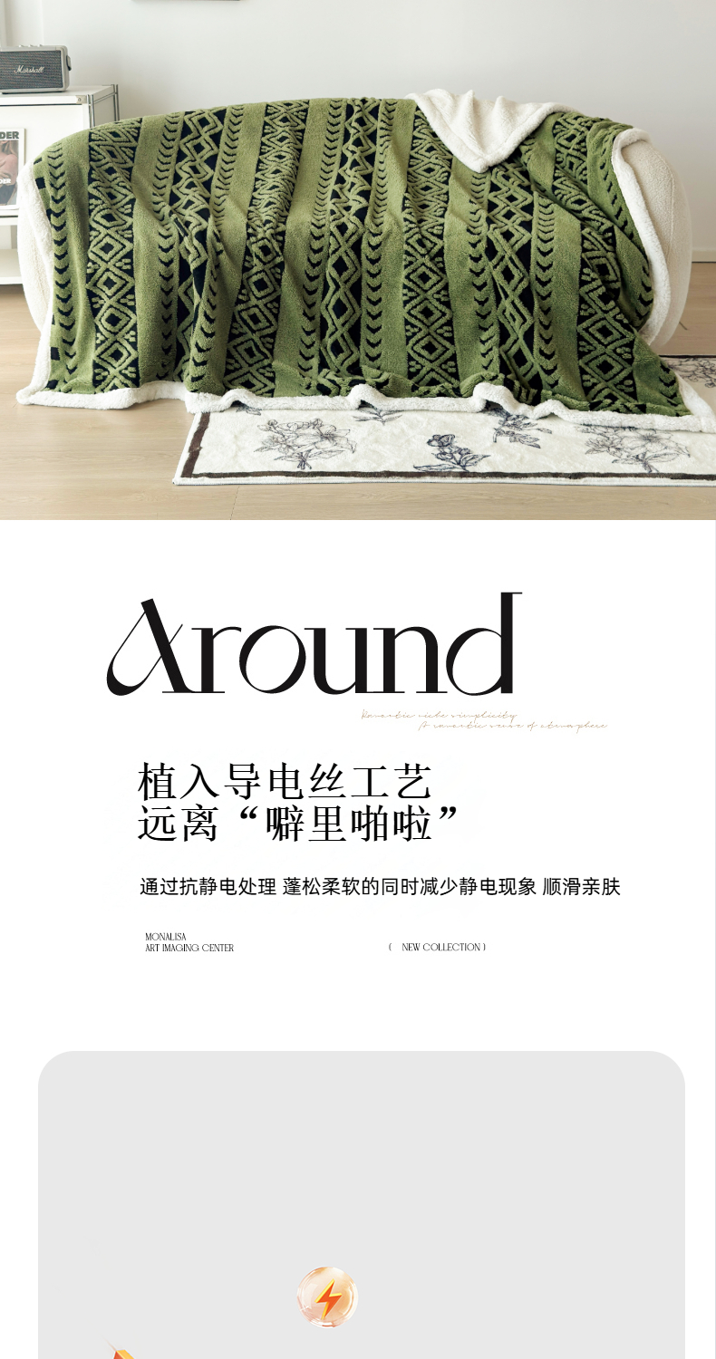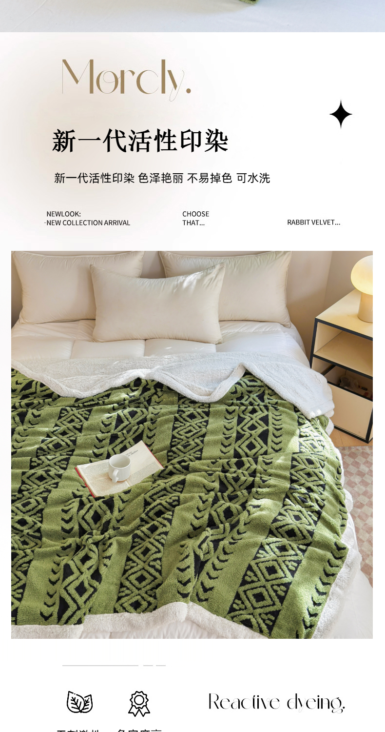(总)卡琪曼 2025新款阳离子提花羊羔绒毛毯盖毯毯子,军绿,粉色,米白,浅灰,浅紫色,深灰,驼色,雾蓝