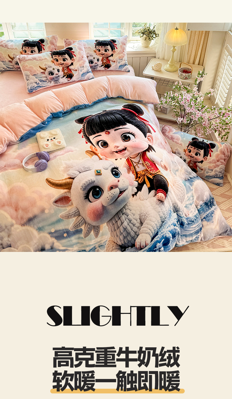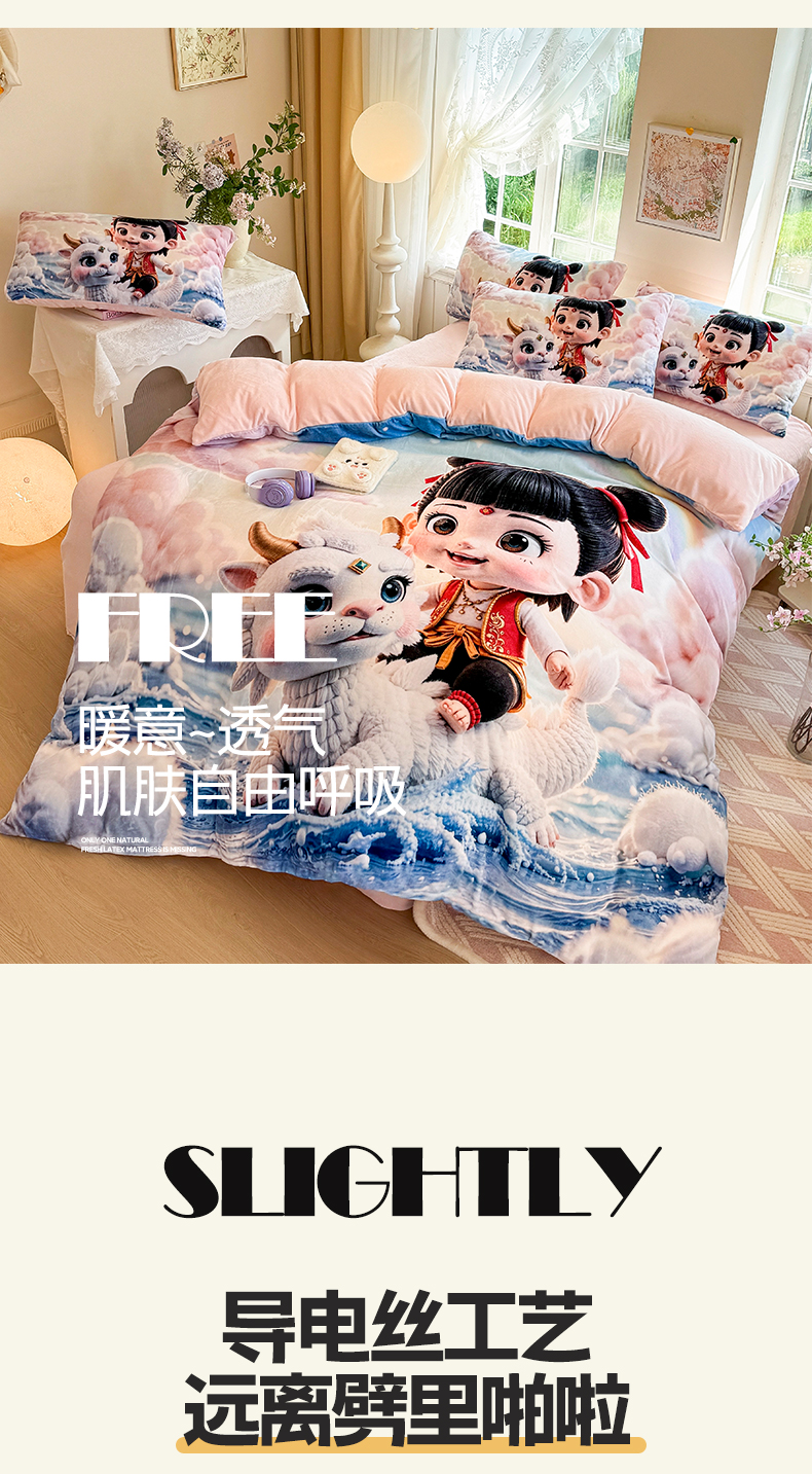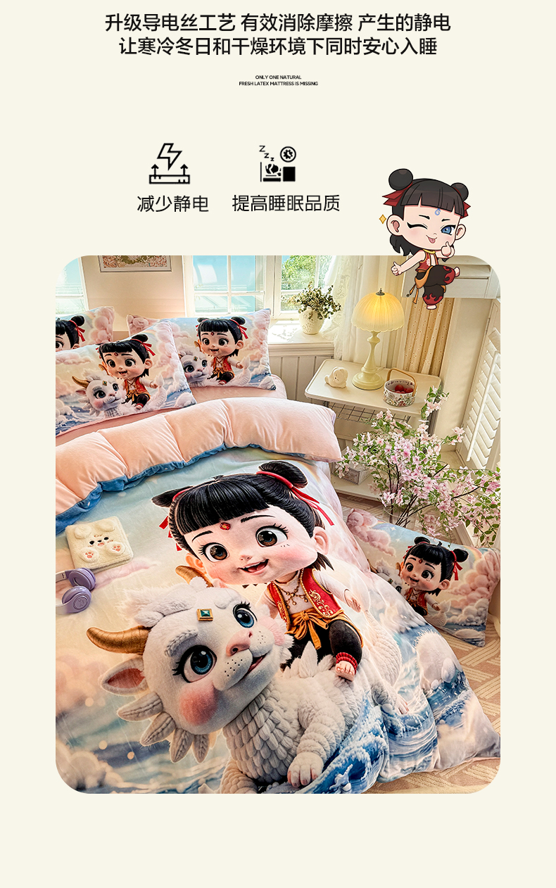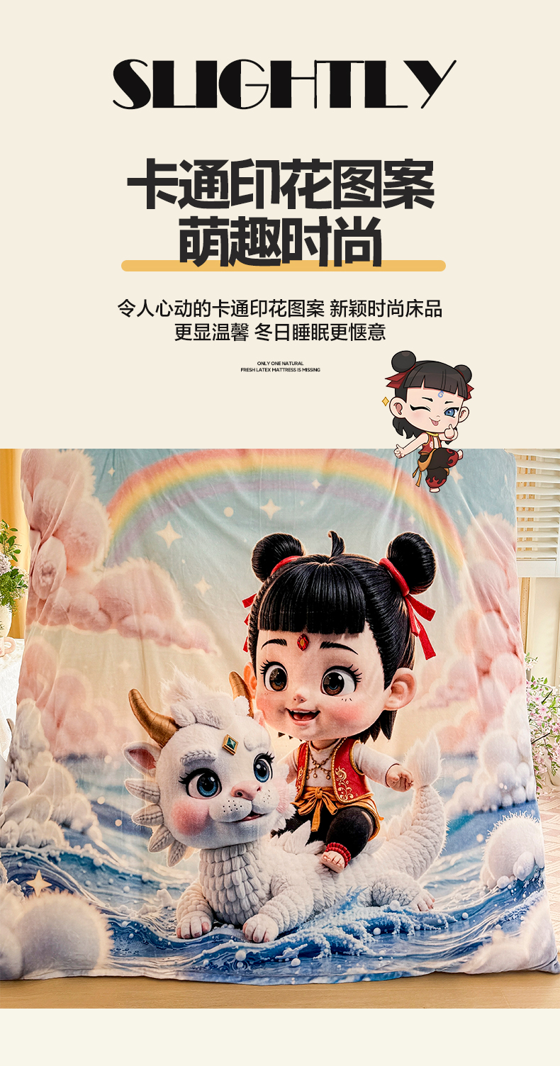 当前位置: 91家纺网 > 商品网购 > 床品套件 > 四件套 > 牛奶绒四件套 > 馨语家居 2025新款直播热款高克重保暖卡通牛奶绒印花四件套 彩虹哪吒