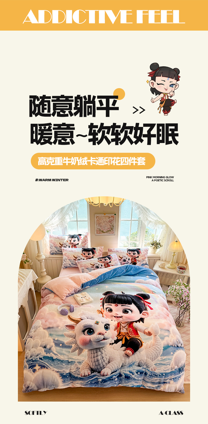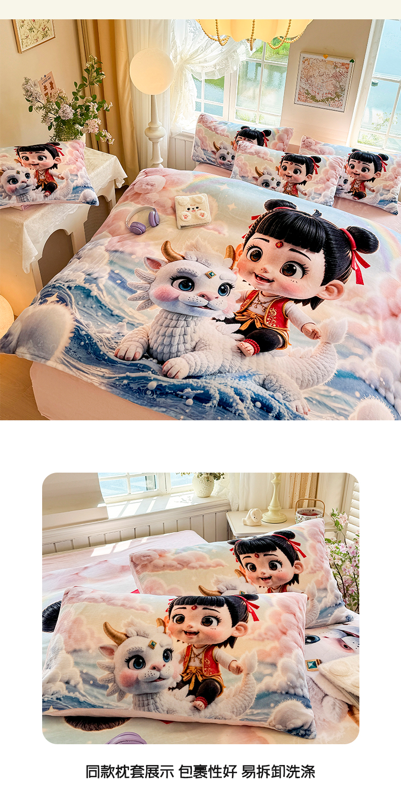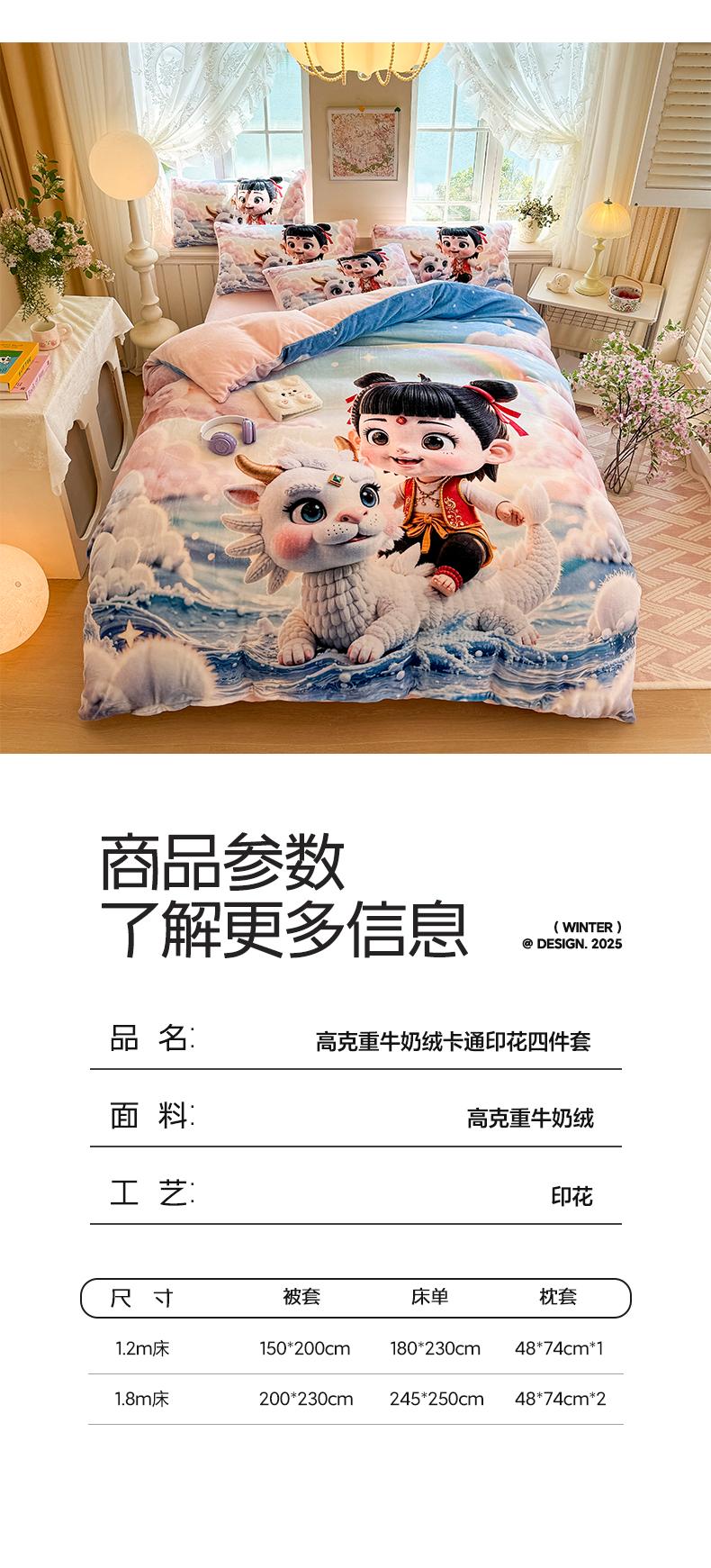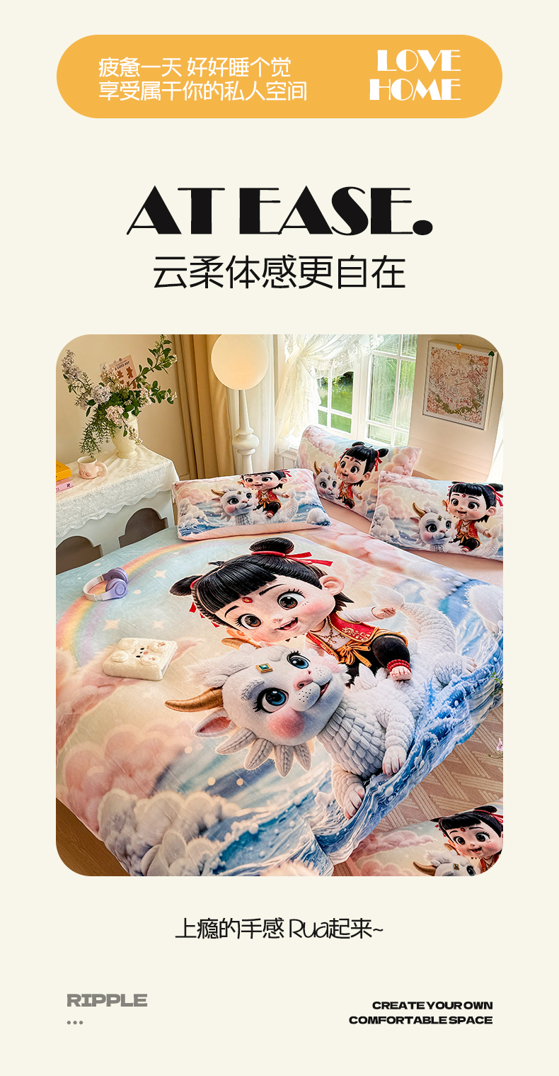 当前位置: 91家纺网 > 商品网购 > 床品套件 > 四件套 > 牛奶绒四件套 > 馨语家居 2025新款直播热款高克重保暖卡通牛奶绒印花四件套 彩虹哪吒