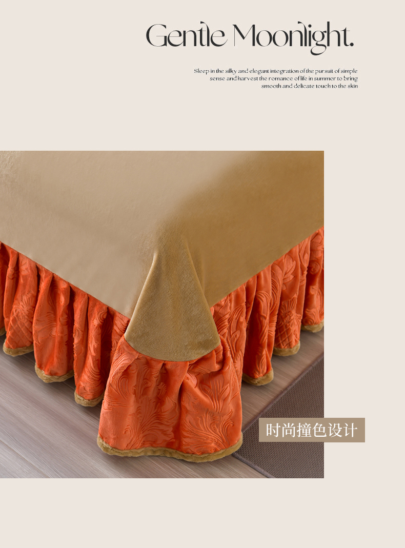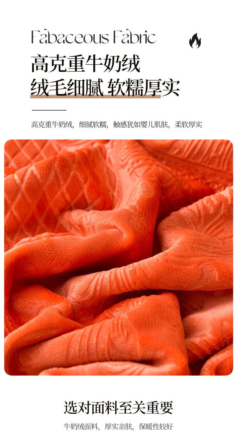 星窝 2025新款高克重直播爆款纯色欧式雕花绒牛奶绒四件套 富贵花开桔
