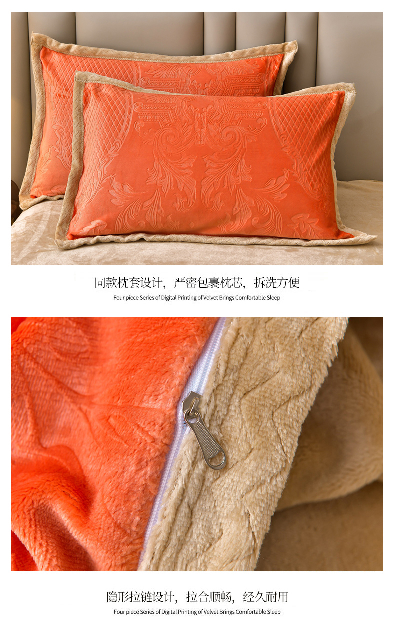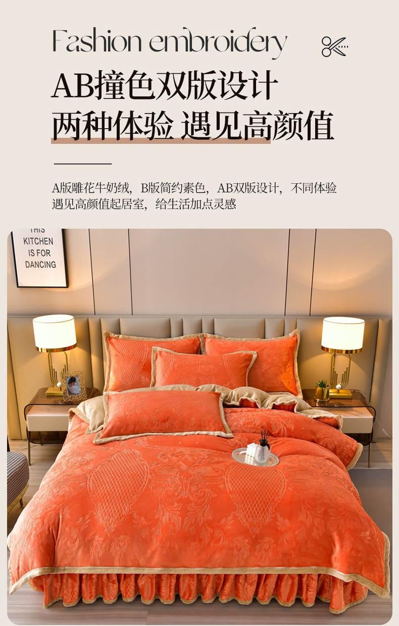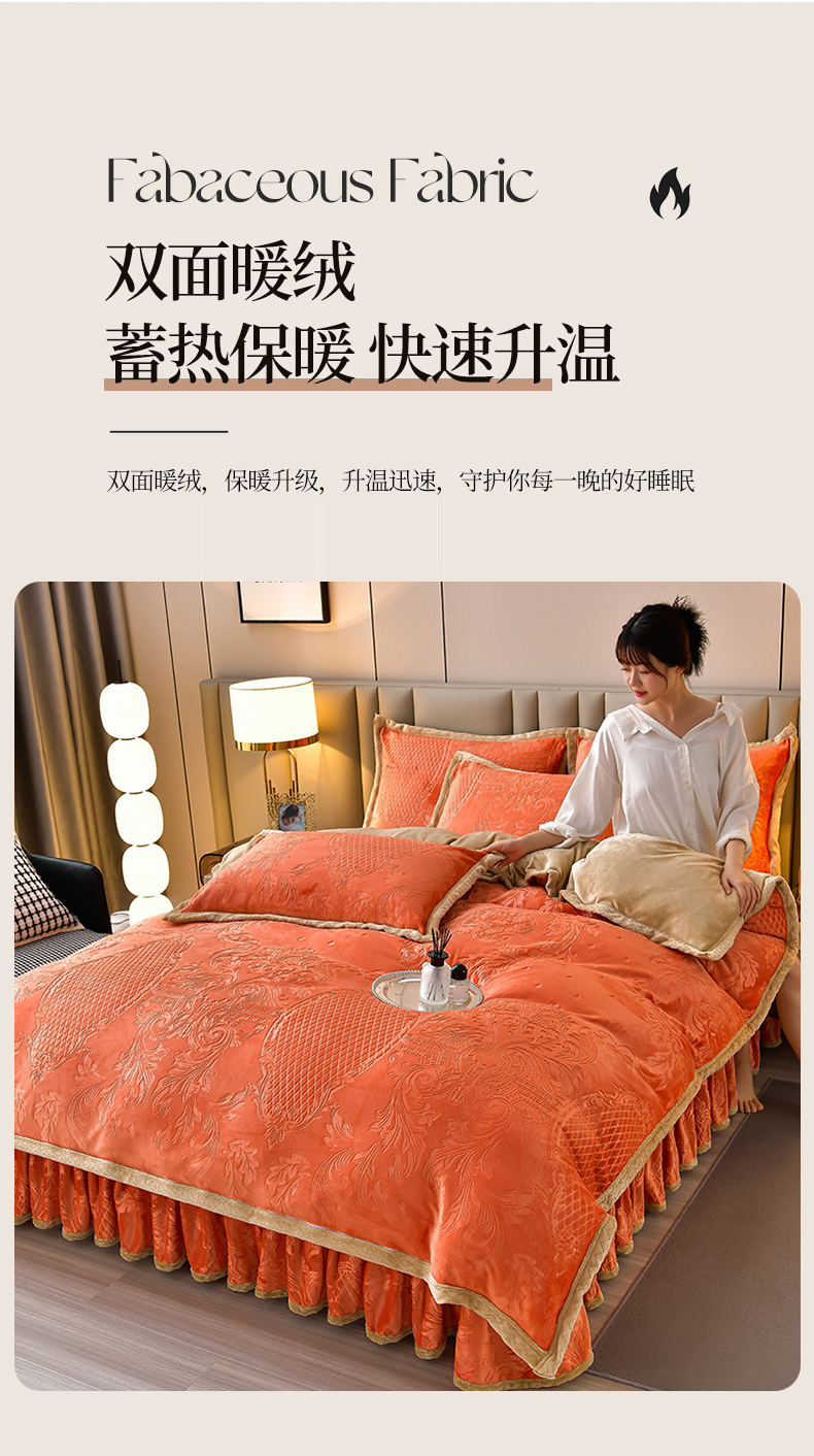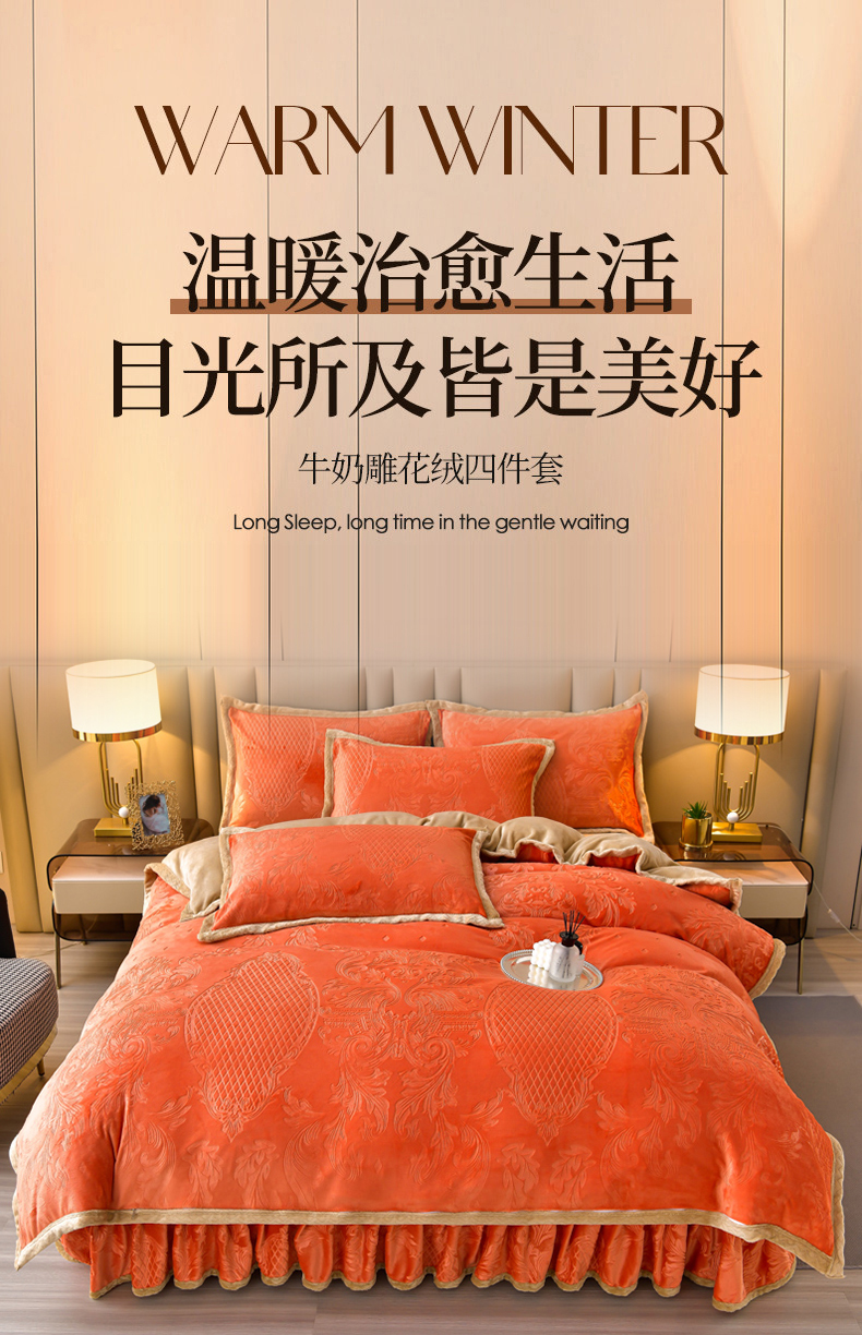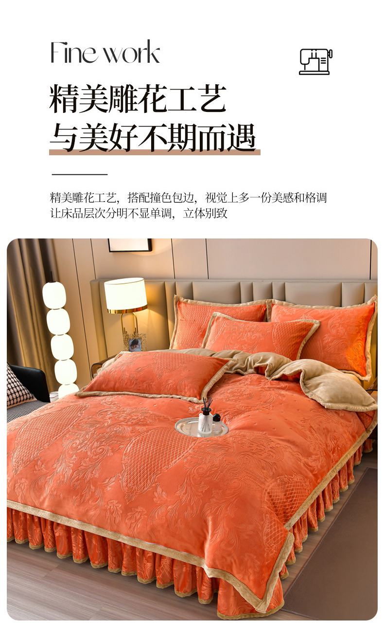 商品名称:星窝 2025新款高克重直播爆款纯色欧式雕花绒牛奶绒四件套 富贵花开桔