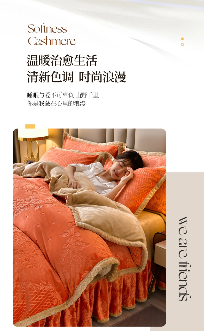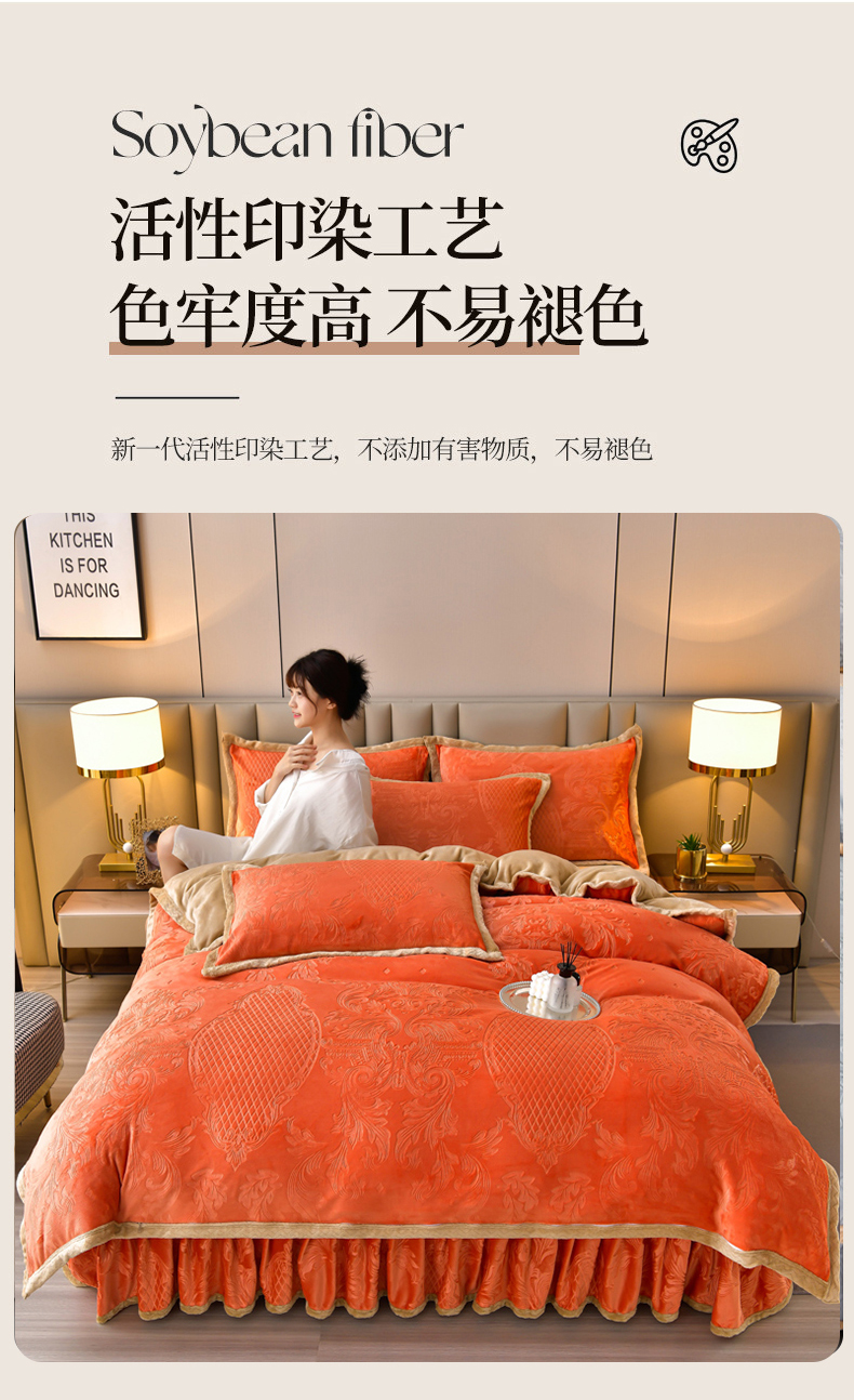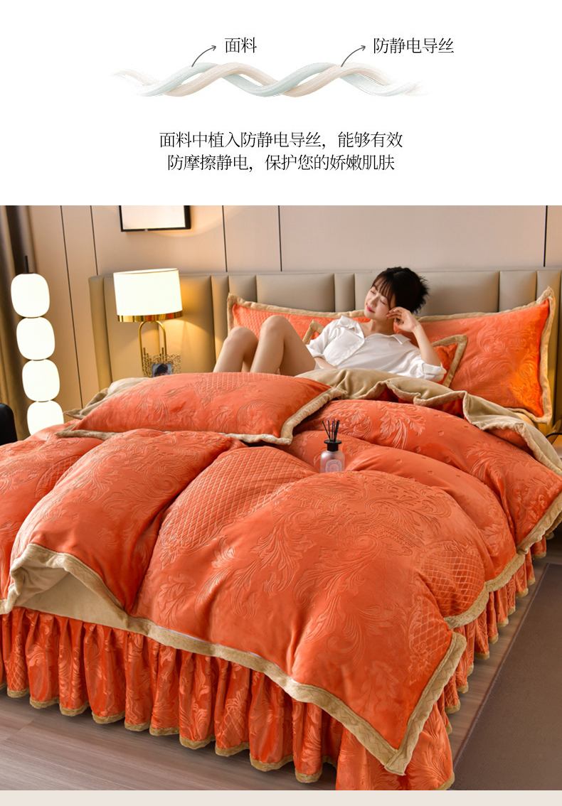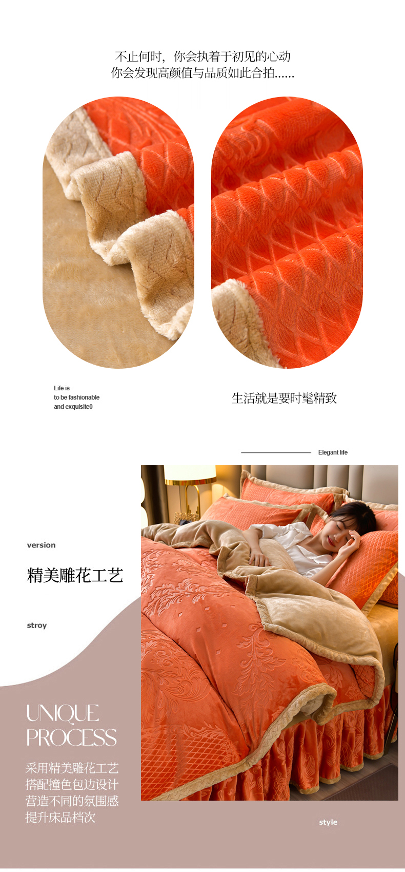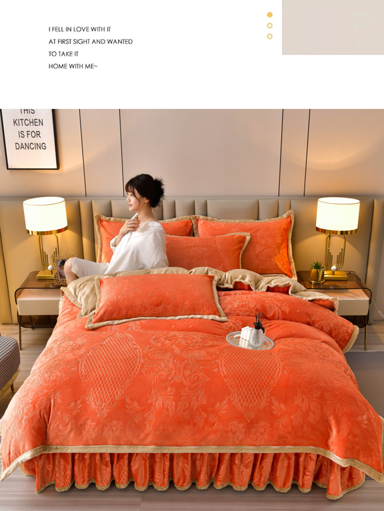 商品名称:星窝 2025新款高克重直播爆款纯色欧式雕花绒牛奶绒四件套 富贵花开桔