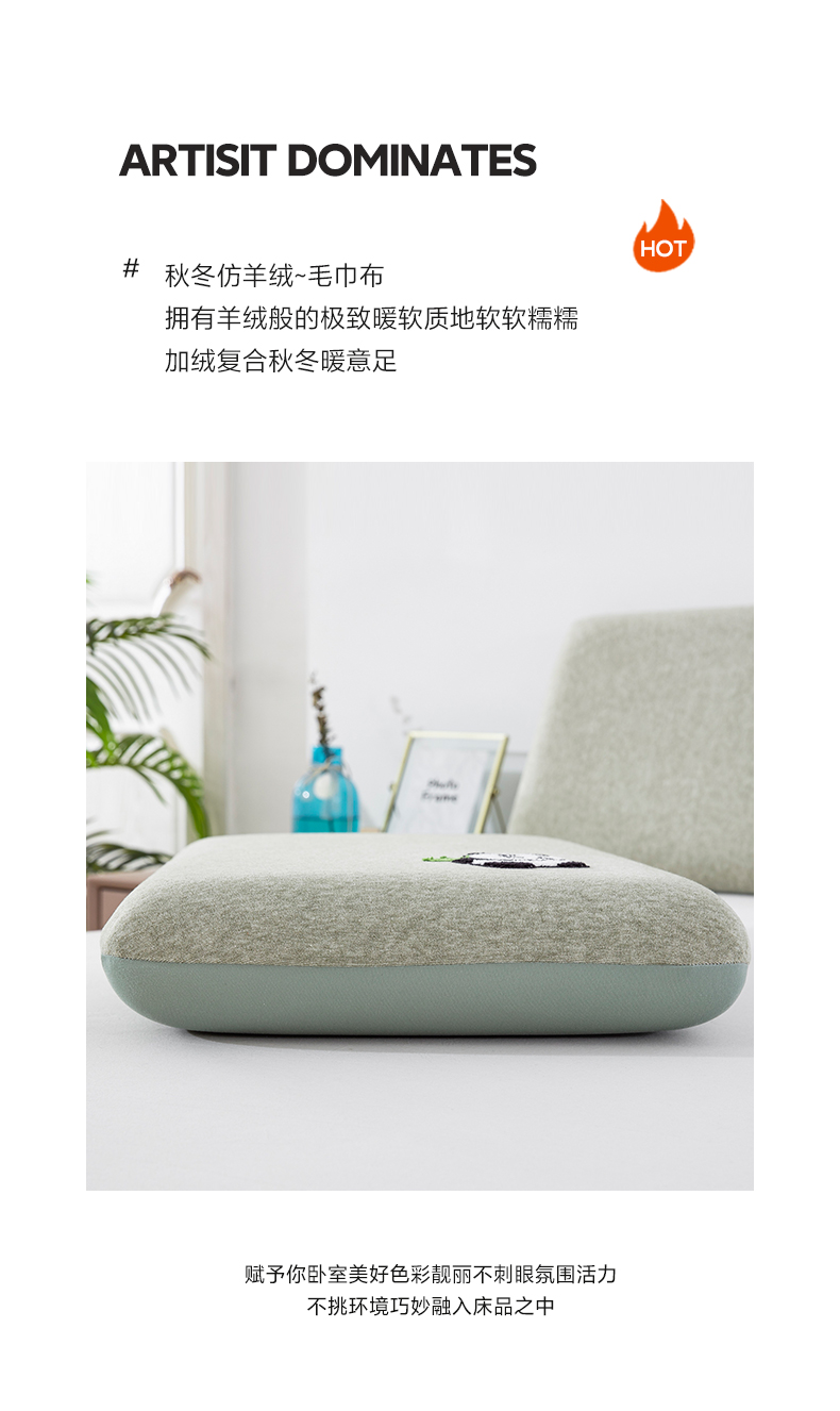 当前位置: 91家纺网 > 商品网购 > 枕头/枕芯/保健枕/颈椎枕 > 枕头枕芯 > 大黄蜂家居家纺 2025新款毛巾绣仿羊绒星球面包记忆枕套 熊猫绿