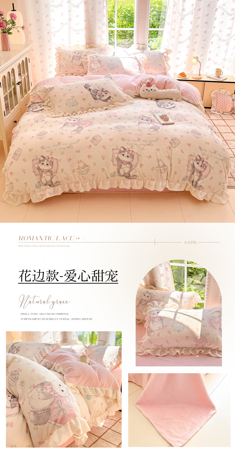 (总)慕澄家居 2025新款花边款牛奶绒印花四件套