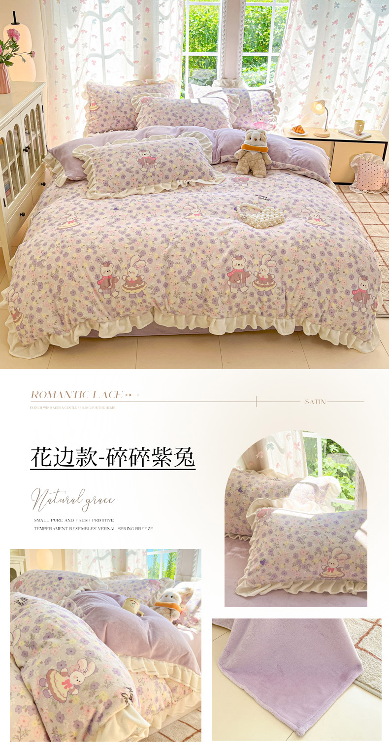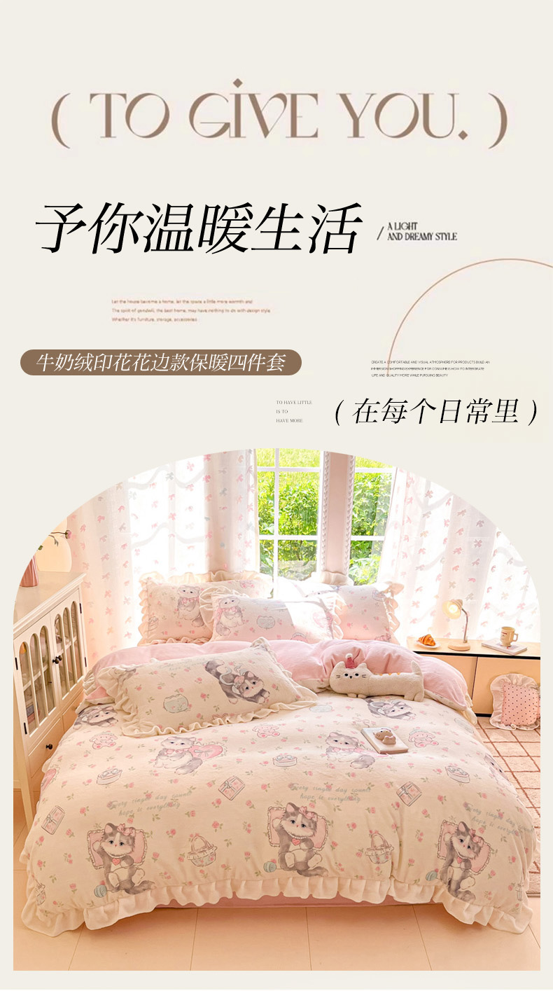 商品名称:(总)慕澄家居 2025新款花边款牛奶绒印花四件套