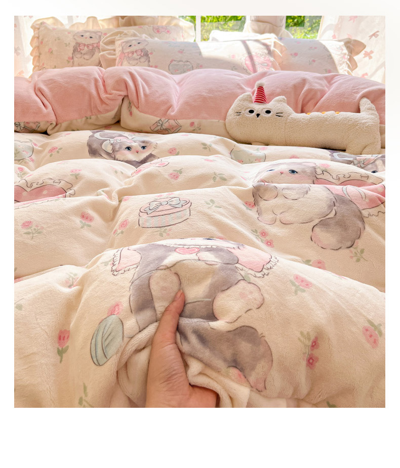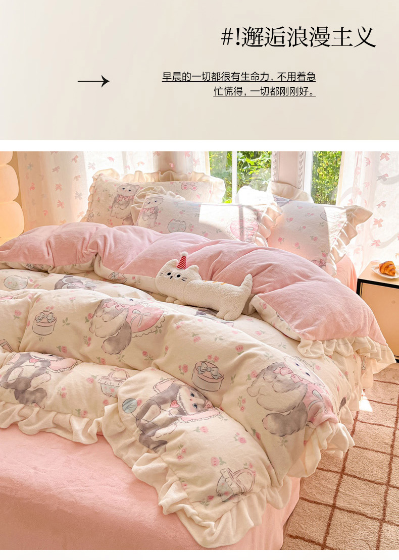 (总)慕澄家纺 2025新款小清新牛奶绒印花四件套,爱心甜宠,蛋糕猫咪,奶奶可爱,梦幻花语,浪漫波点,快乐卡皮,酷酷狗,咖系小女孩,黑白配,格子小猫,粉色郁金香,粉色喵喵,繁花,点点熊仔,蓝条凯蒂,橙意满满,奶南瓜,趣味狗,碎花小汪,碎碎紫兔,甜品美乐蒂,小美好,心心相印,星星月亮