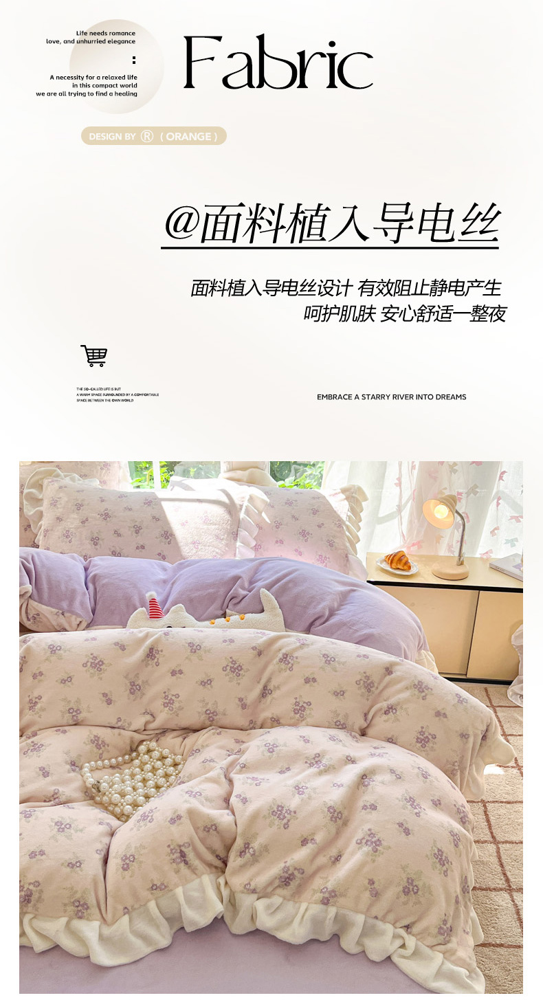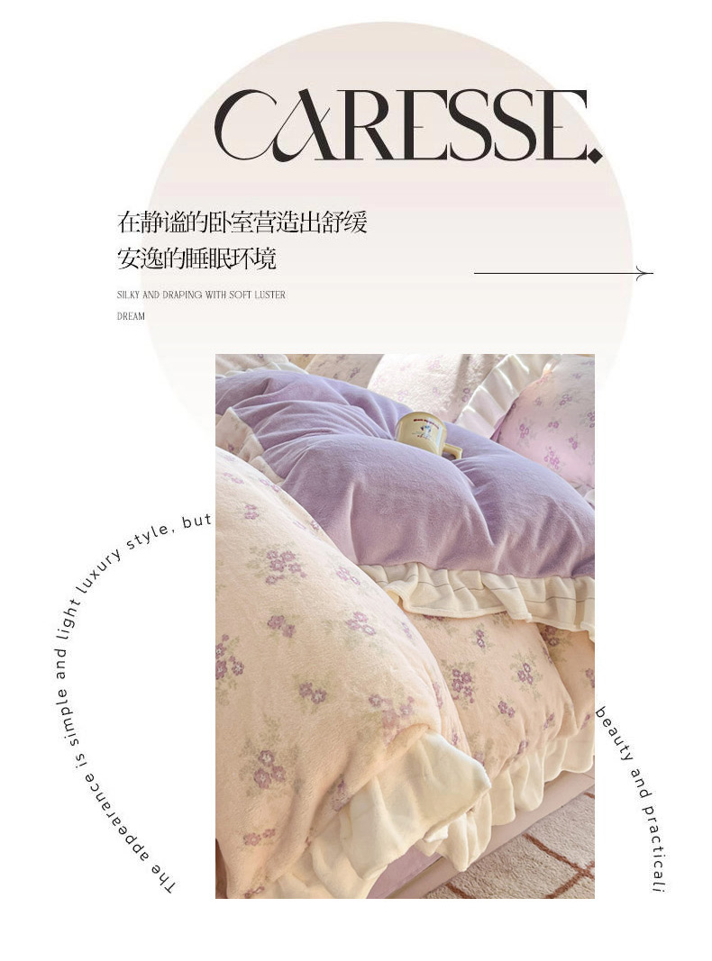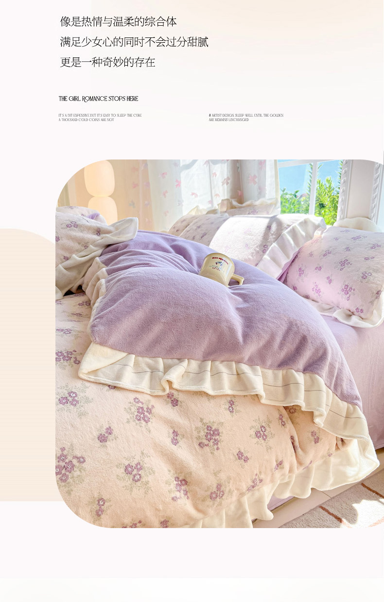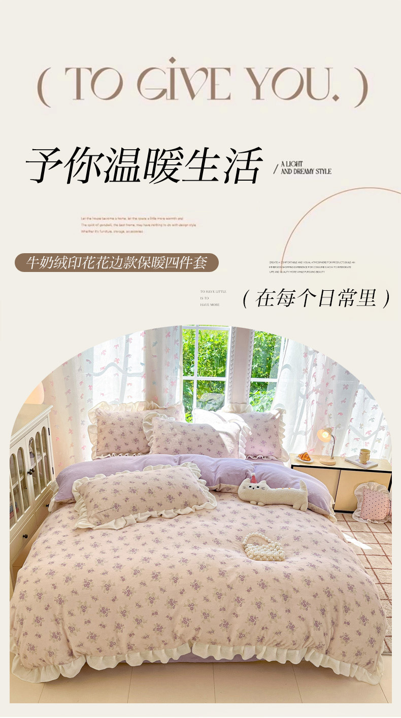 慕澄家居 2025新款花边款牛奶绒印花四件套 花边款-梦幻花语