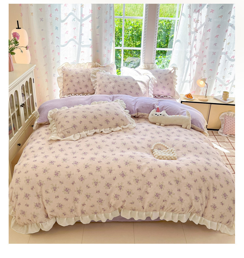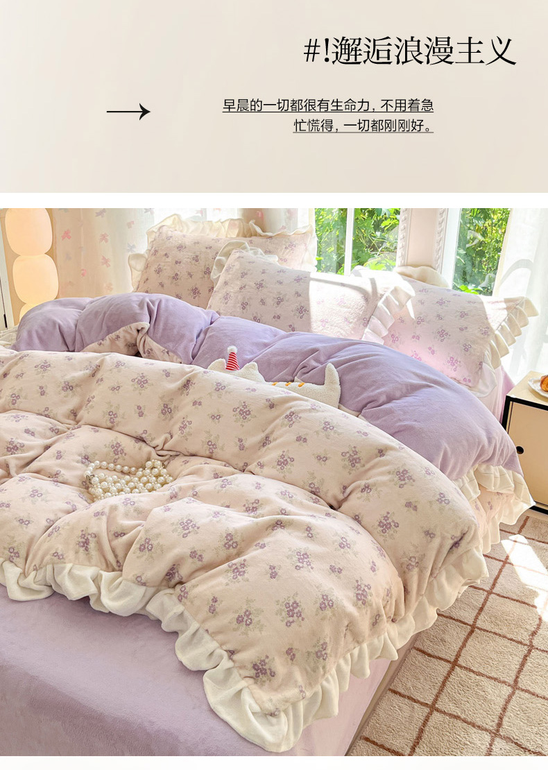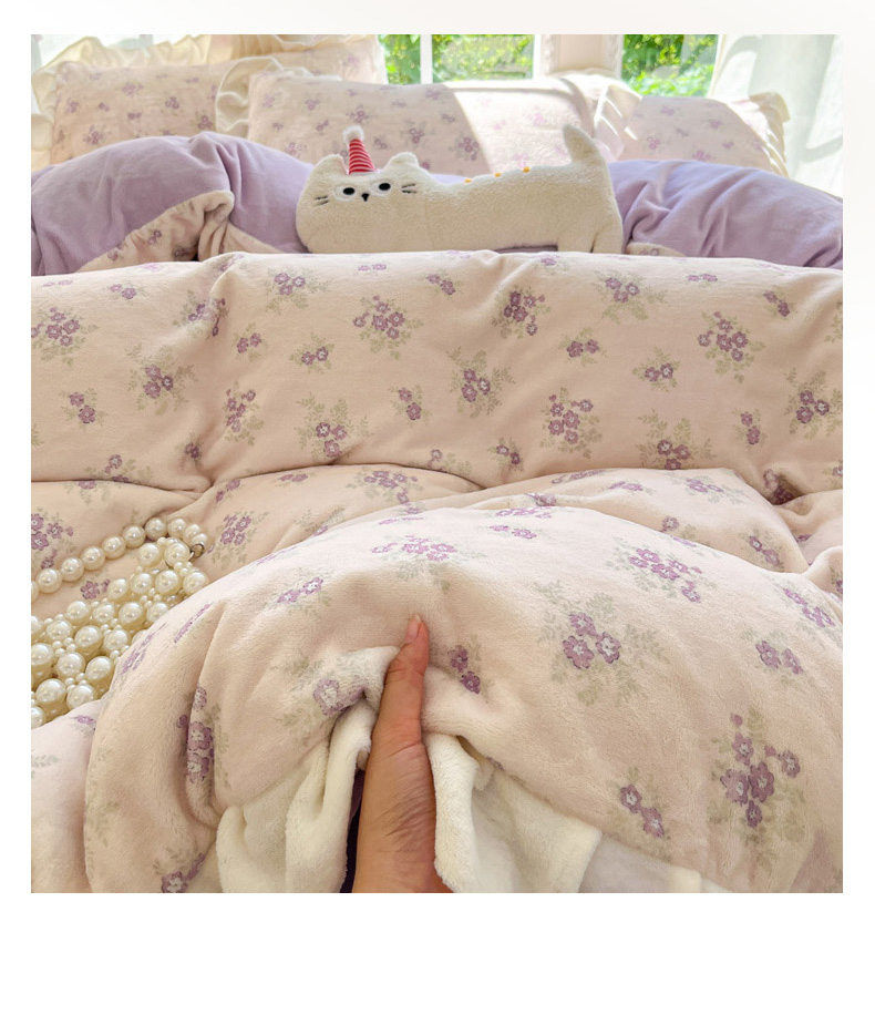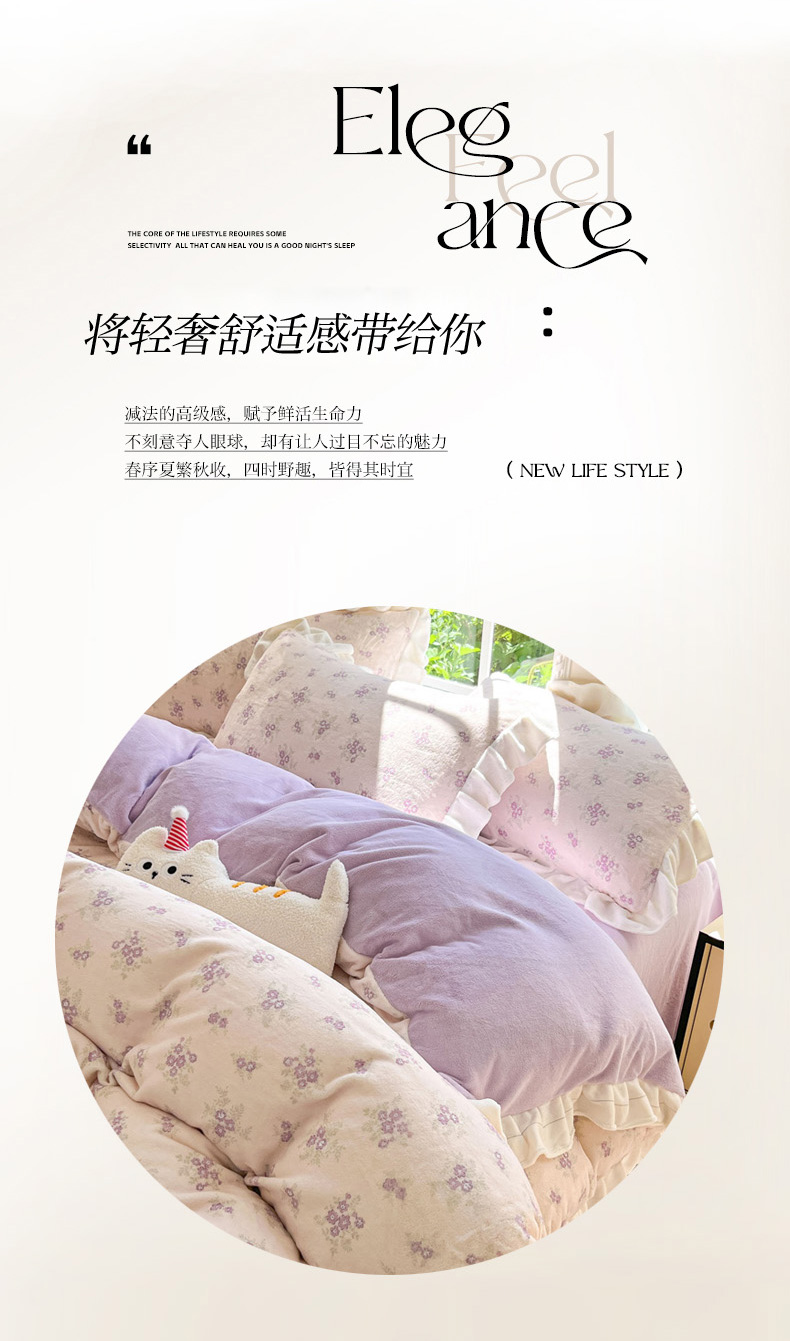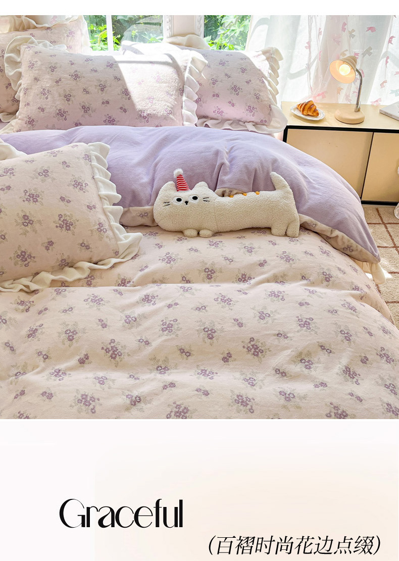 慕澄家居 2025新款花边款牛奶绒印花四件套 花边款-梦幻花语