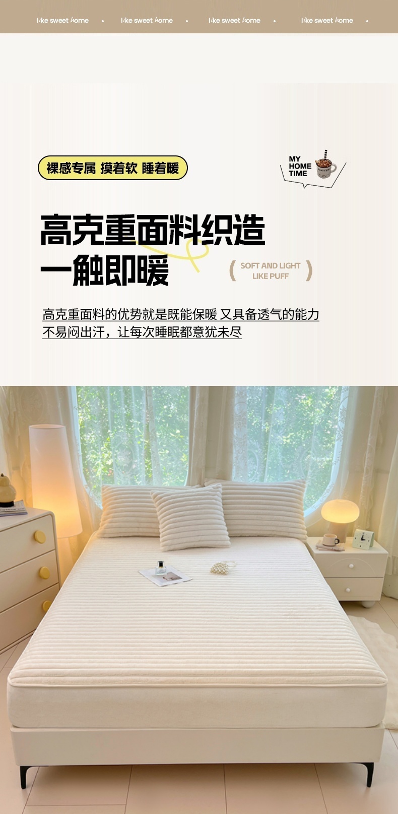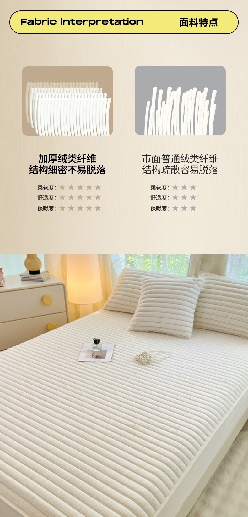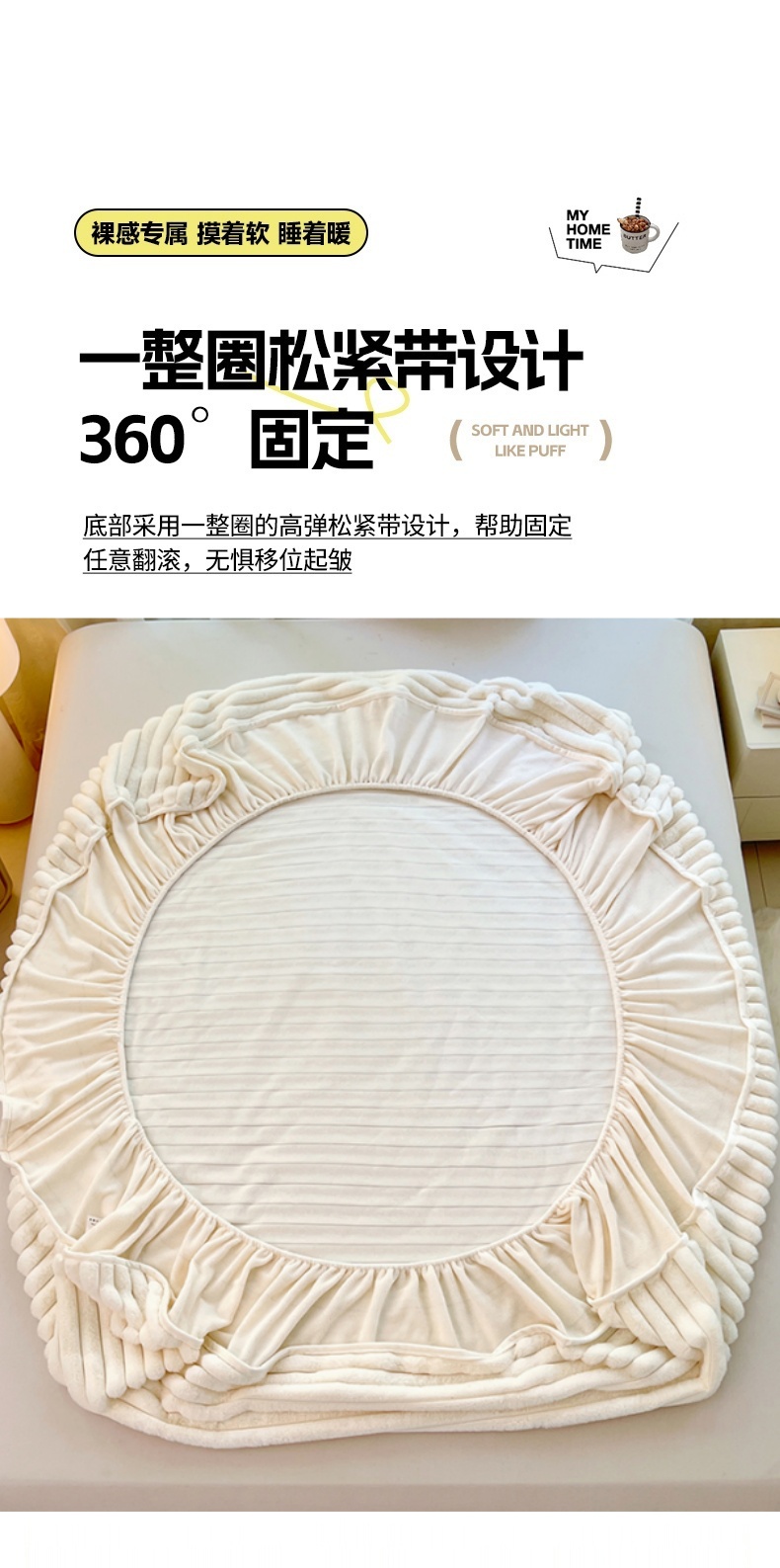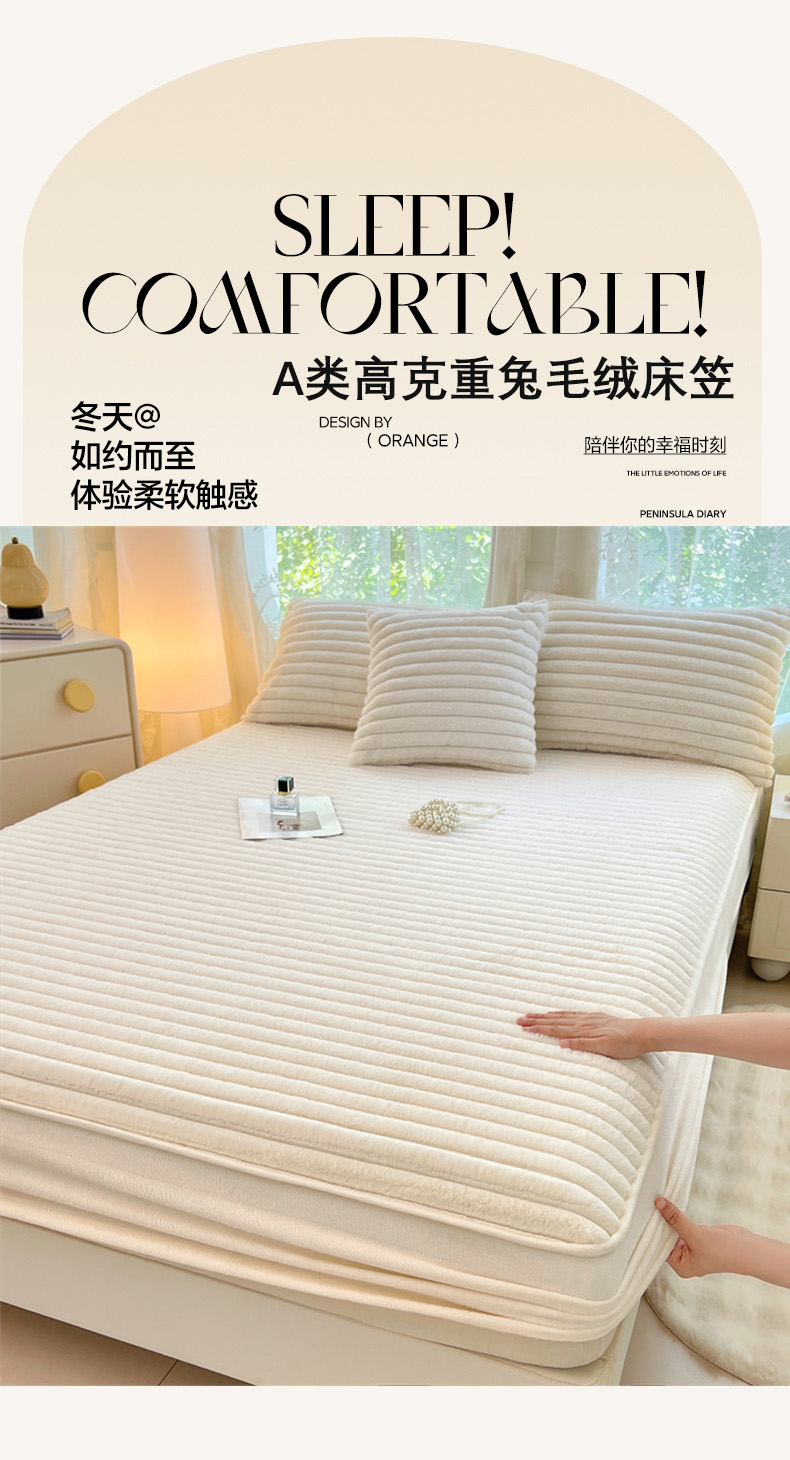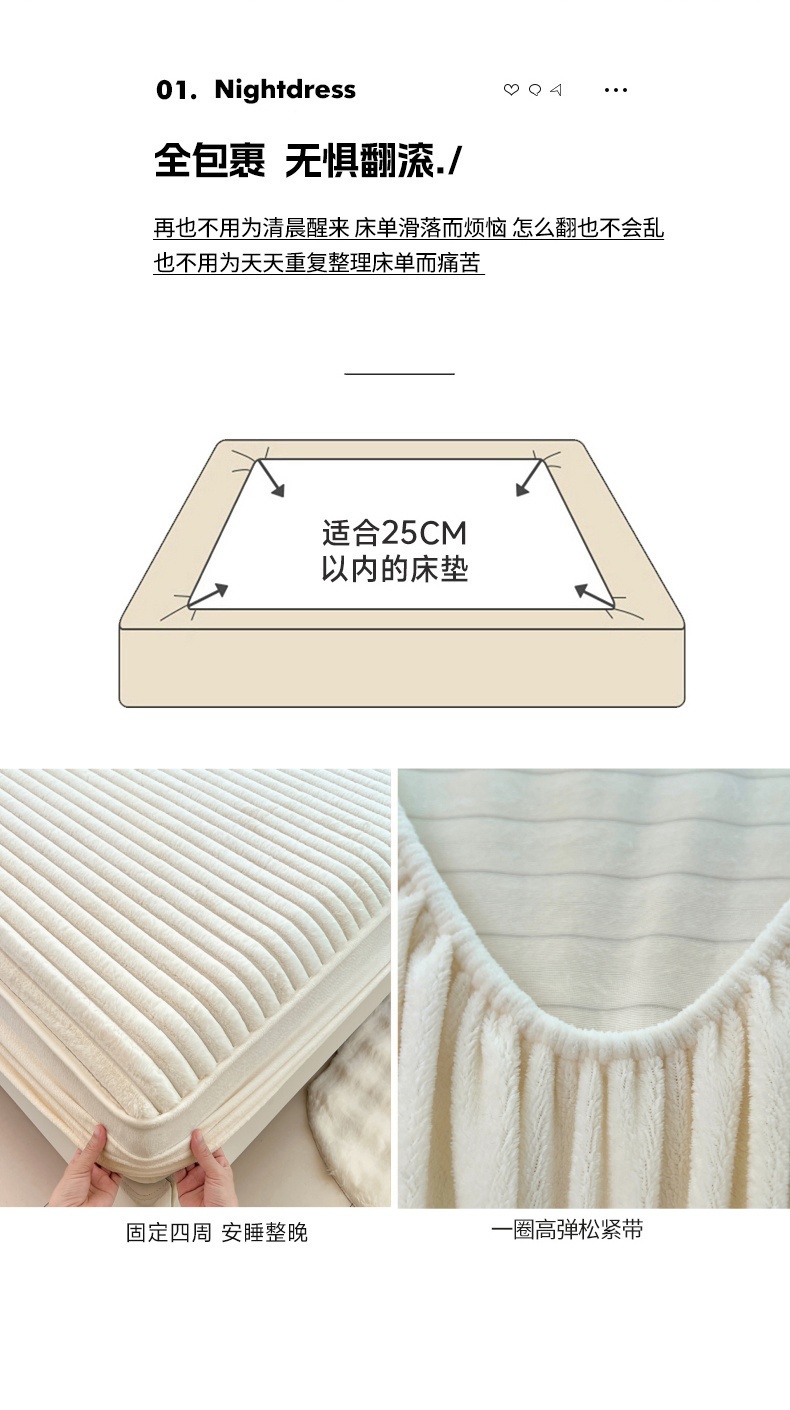 • 91家纺网 家纺一手货源 找家纺 梦舒羽 2025新款兔毛绒床笠床垫法兰绒保护套牛奶绒席梦思法莱绒床垫套-抽条 兔毛绒抽条-晨曦白