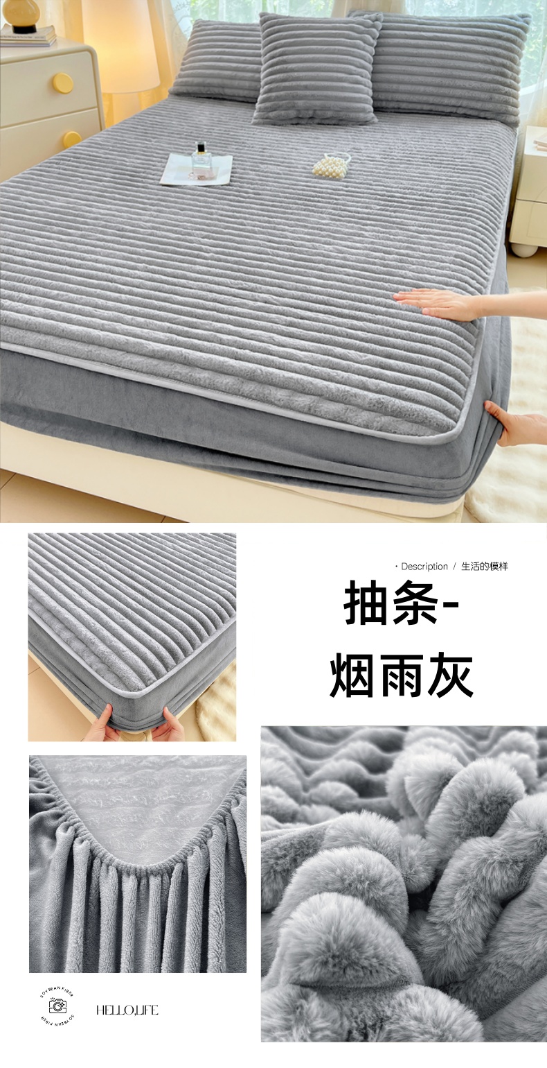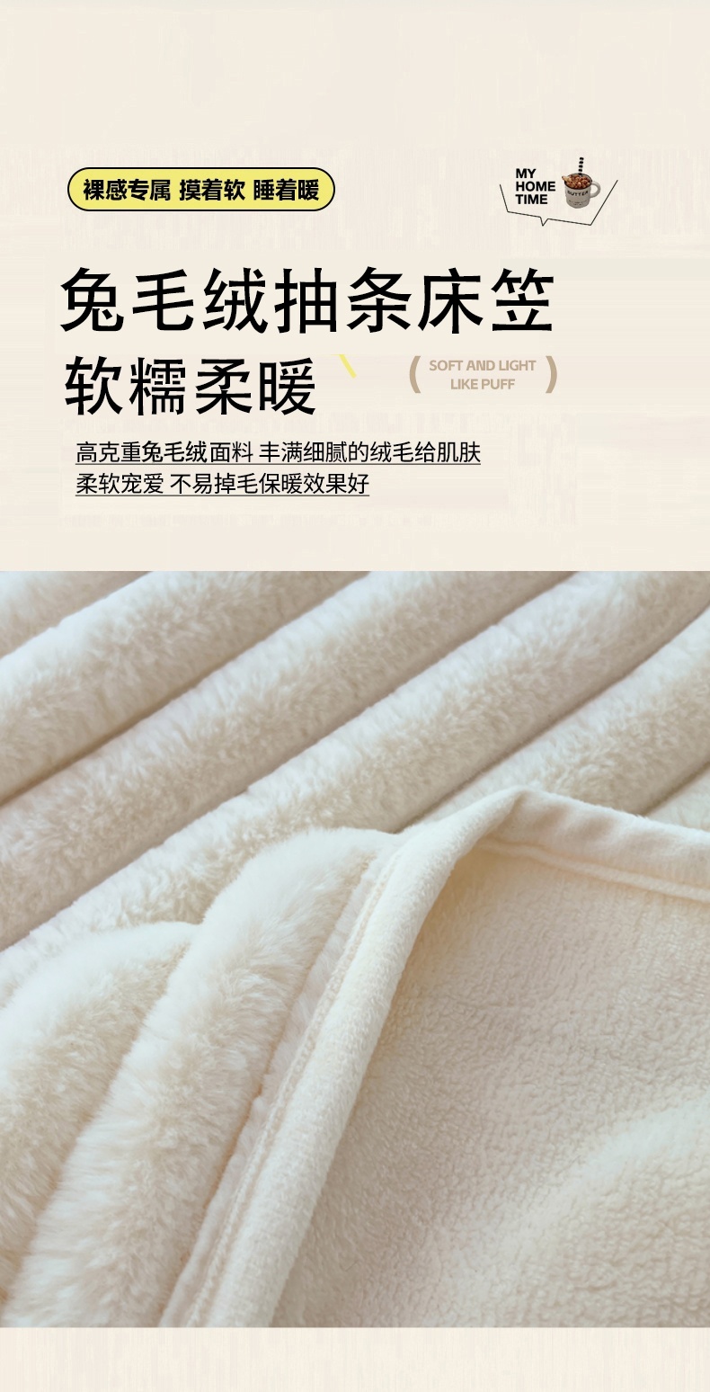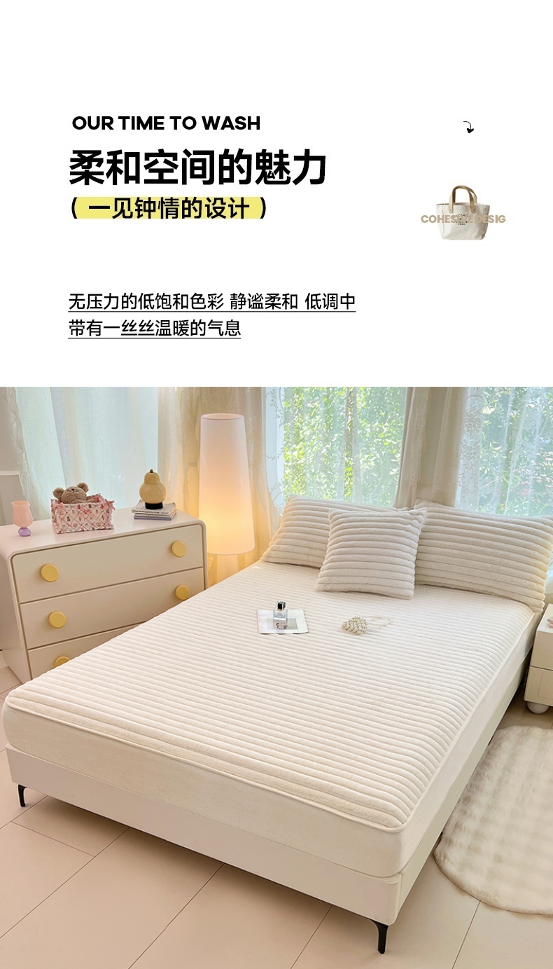 梦舒羽 2025新款兔毛绒床笠床垫法兰绒保护套牛奶绒席梦思法莱绒床垫套-抽条 兔毛绒抽条-晨曦白