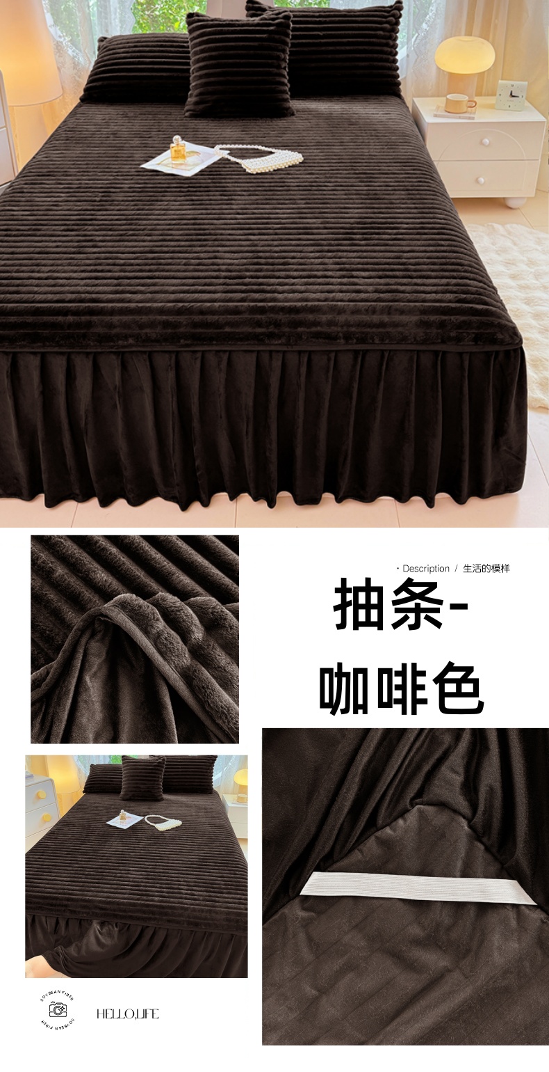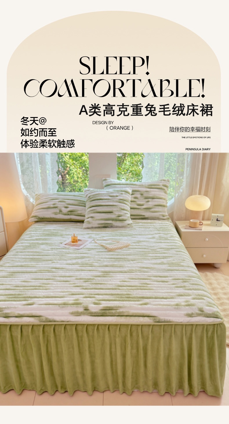 • 91家纺网 家纺一手货源 找家纺 梦舒羽 2025新款兔毛绒床裙法兰绒床垫保护罩牛奶绒床垫法莱绒床单罩-抽条 兔毛绒抽条-梦幻果绿