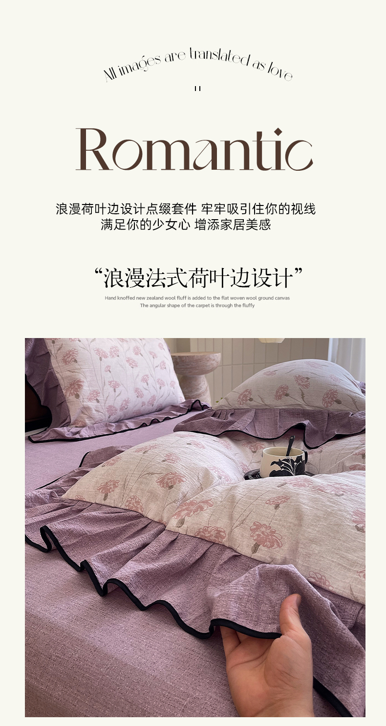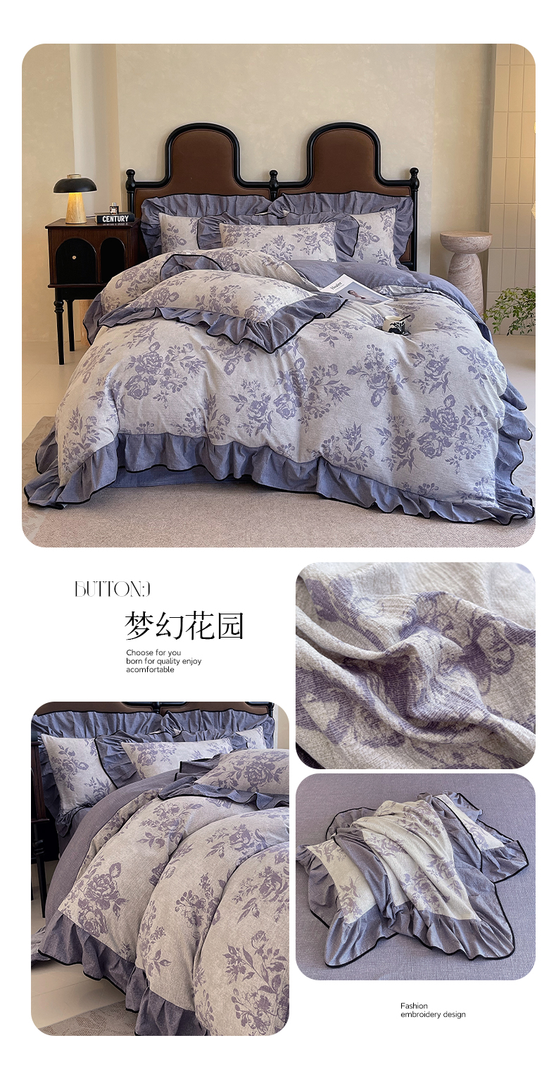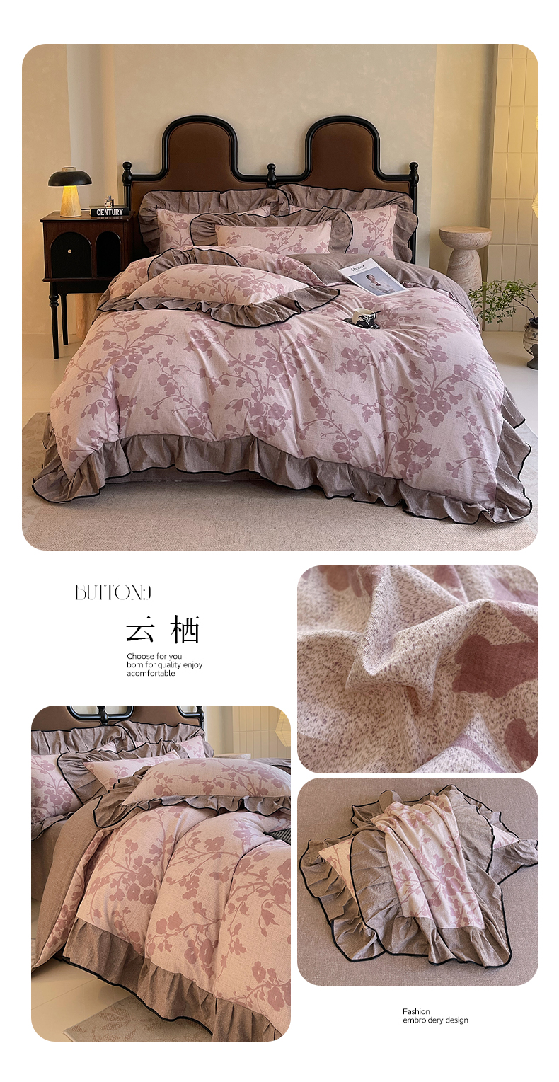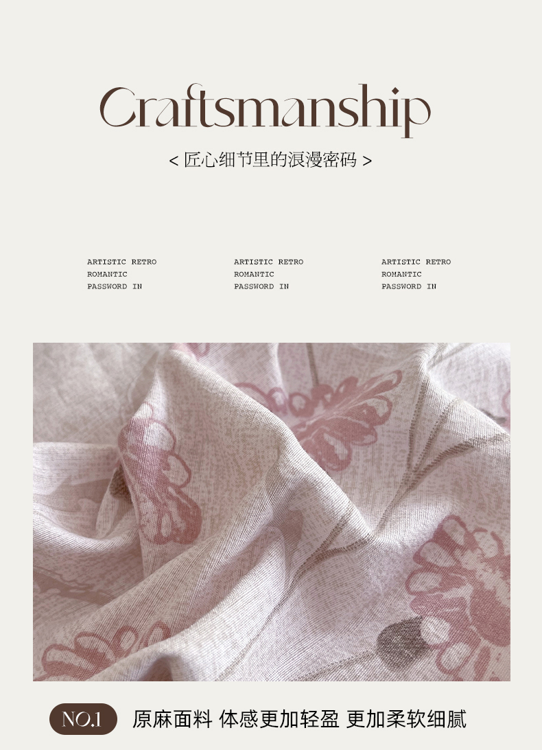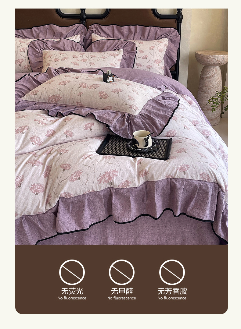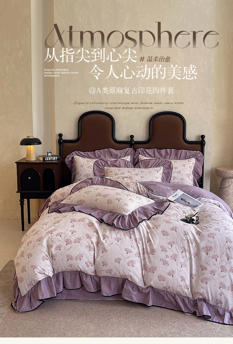 丝芙妮家居(原乐视家纺) 2025新款A类原麻复合印花花边四件套 春意漫漫