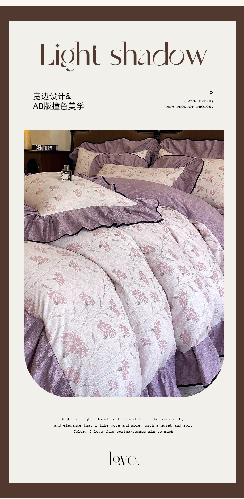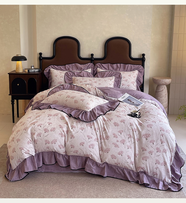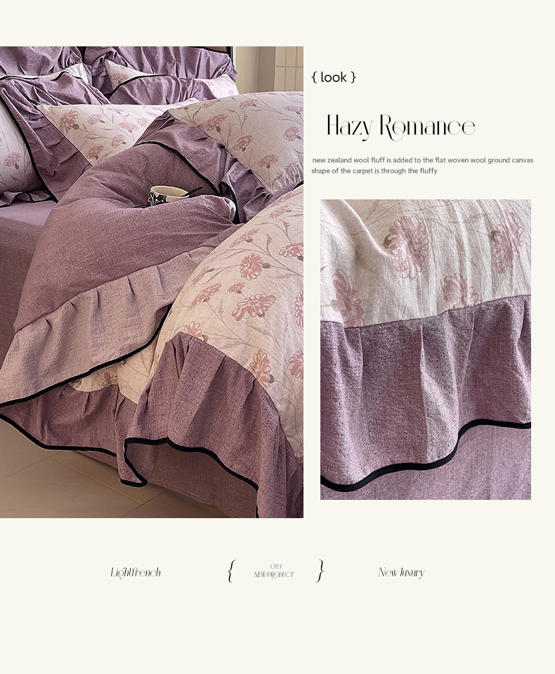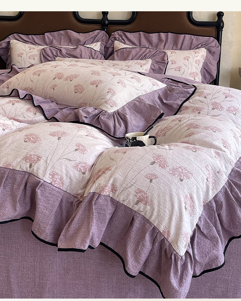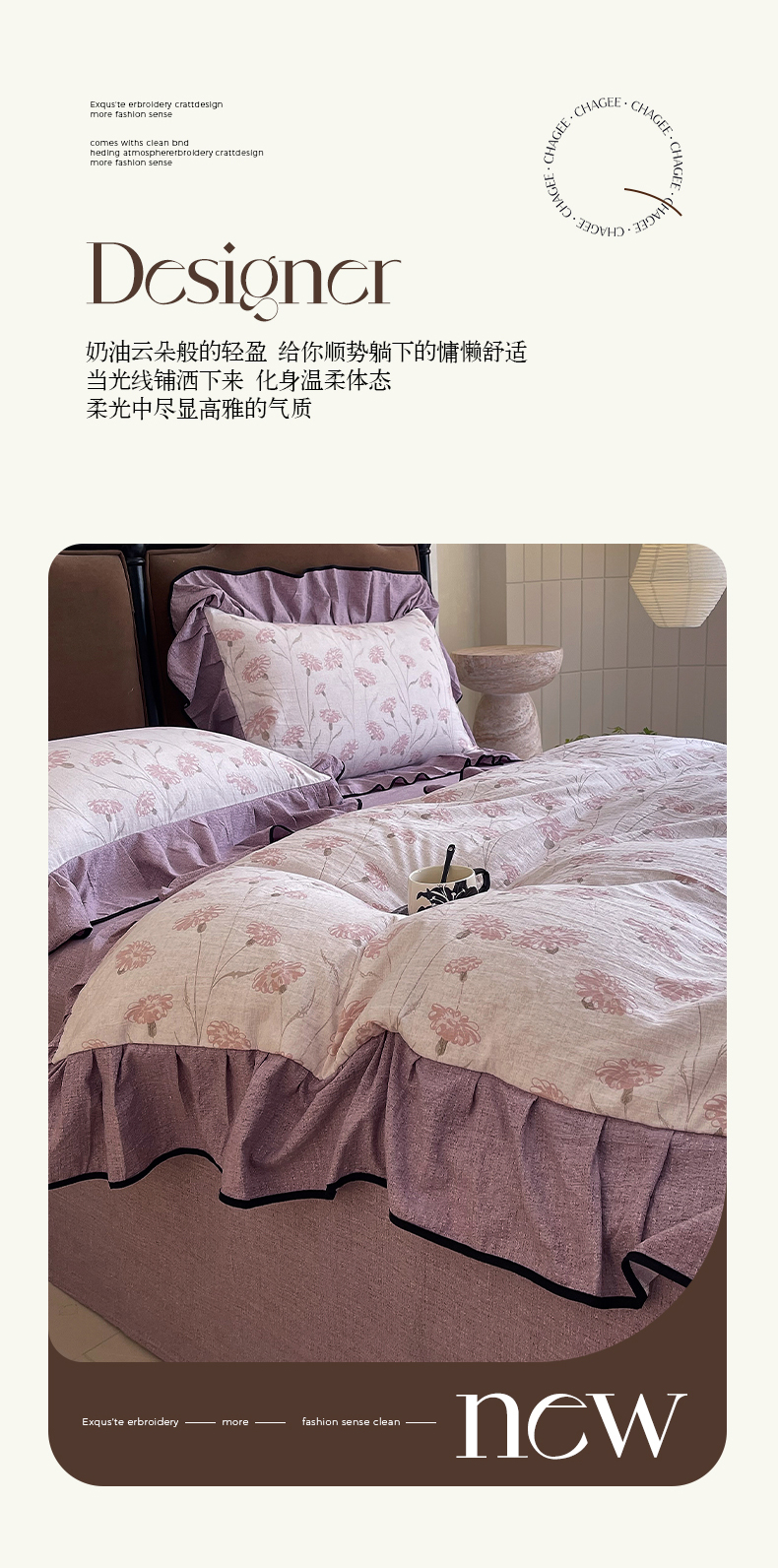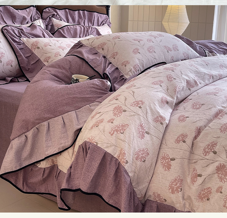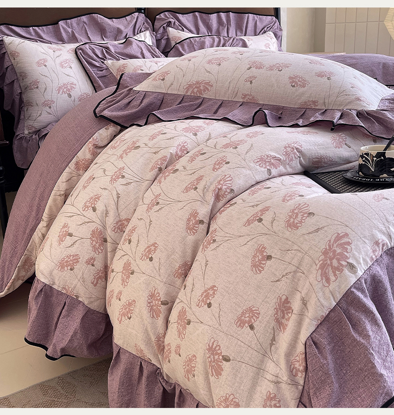 丝芙妮家居(原乐视家纺) 2025新款A类原麻复合印花花边四件套 春意漫漫