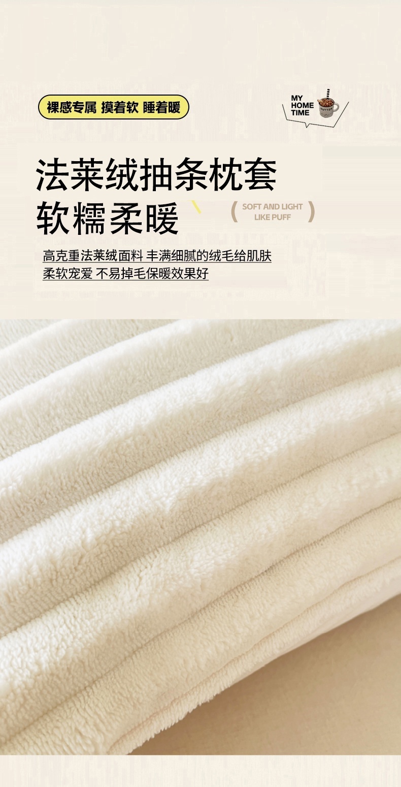 • 91家纺网 家纺一手货源 找家纺 梦舒羽 2025新款法莱绒双人枕套牛奶绒加长法兰绒枕芯套兔毛绒雪花绒枕头套-抽条 法莱绒抽条-晨曦白