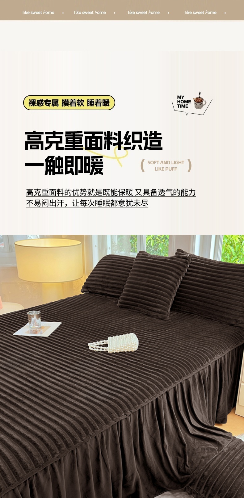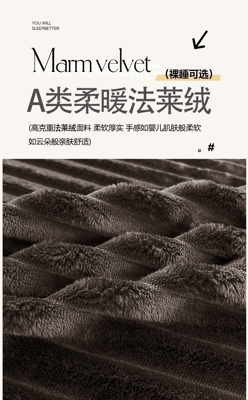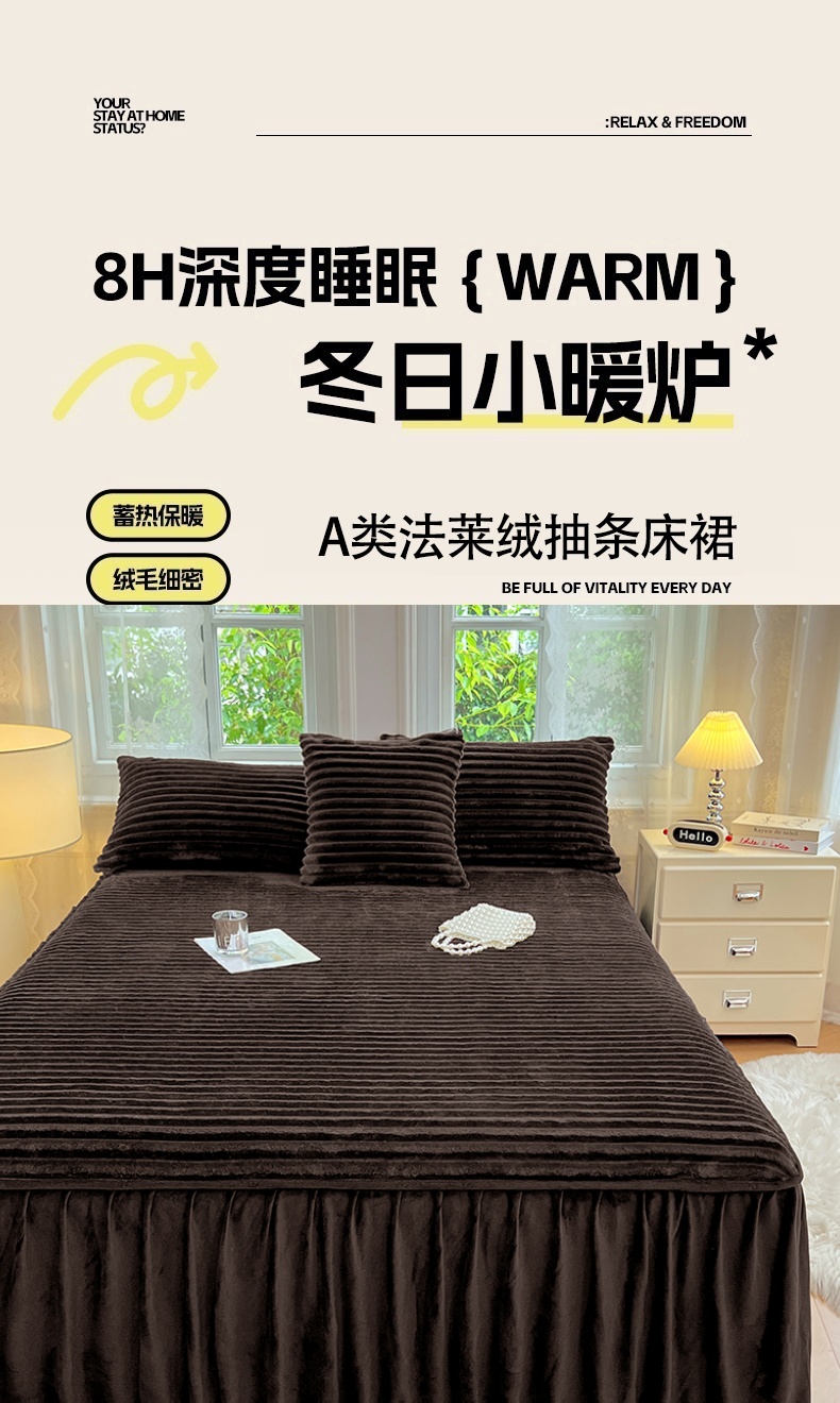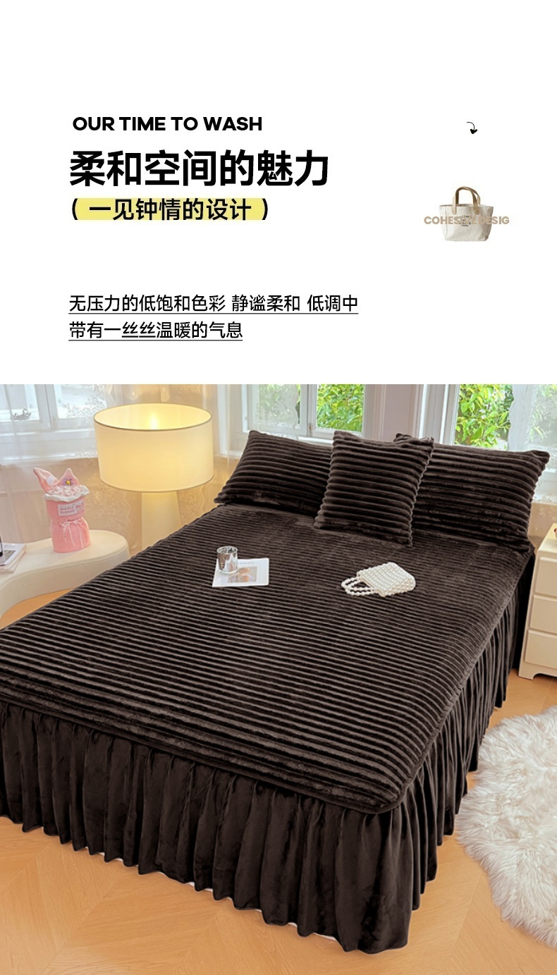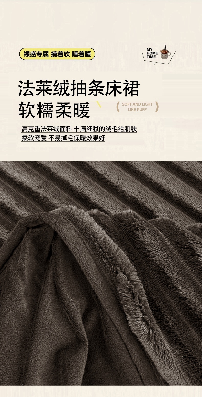 商品名称:圣比熊 2025新款法莱绒床裙法兰绒床垫保护罩牛奶绒兔毛绒床垫床单罩-抽条 法莱绒抽条-咖啡色