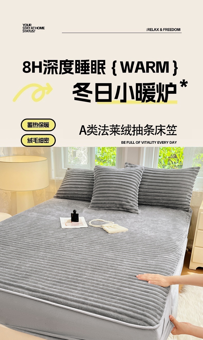 当前位置: 91家纺网 > 商品网购 > 床上用品 > 床笠 > 梦舒羽 2025新款法莱绒床笠法兰绒床垫保护套牛奶绒兔毛绒席梦思床垫套-抽条 法莱绒抽条-烟雨灰