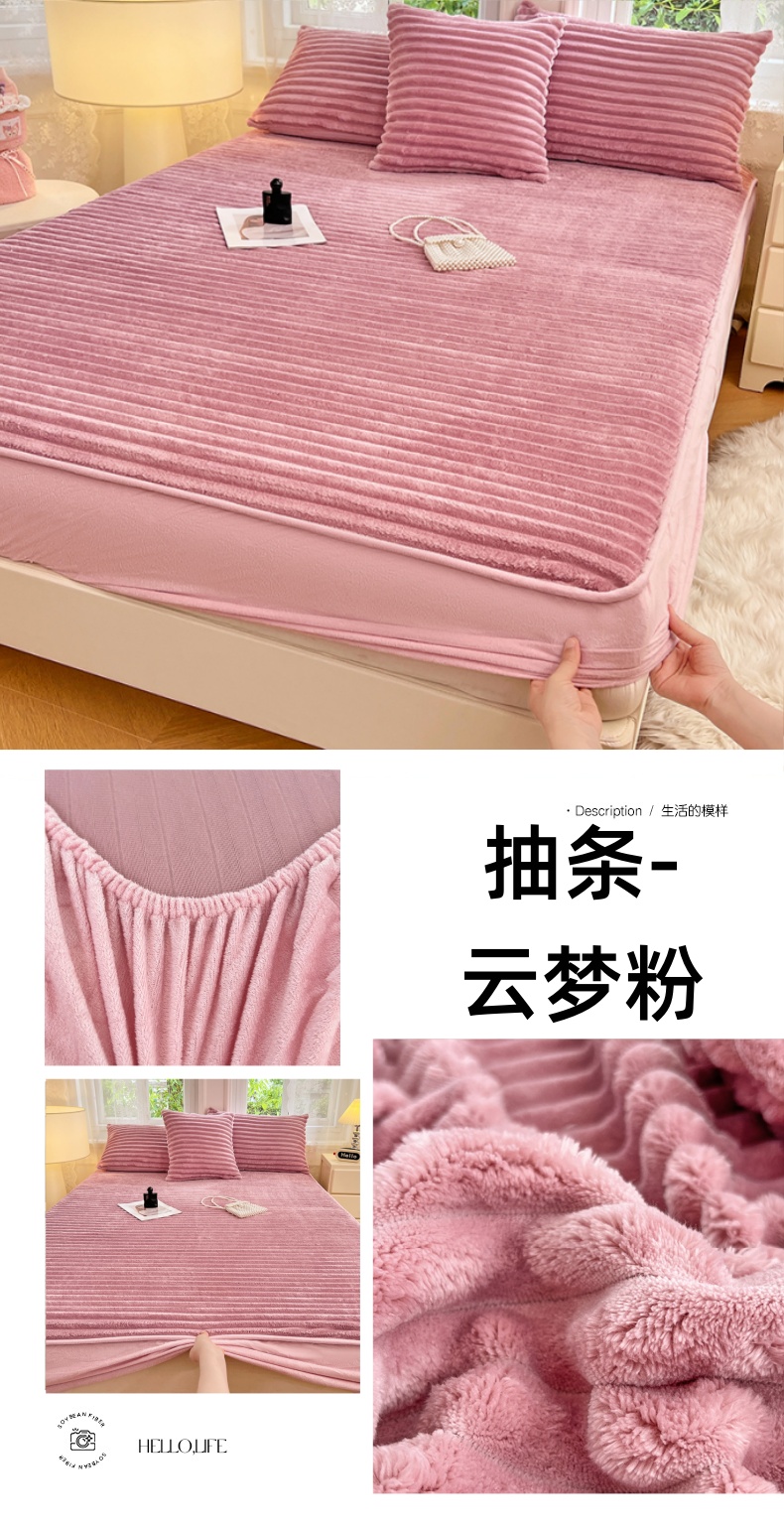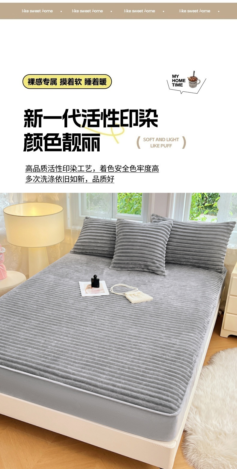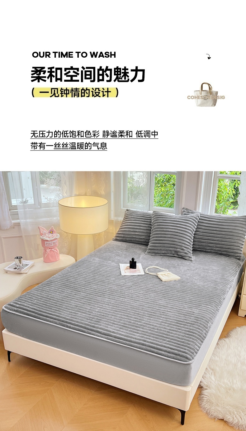 • 91家纺网 家纺一手货源 找家纺 梦舒羽 2025新款法莱绒床笠法兰绒床垫保护套牛奶绒兔毛绒席梦思床垫套-抽条 法莱绒抽条-烟雨灰
