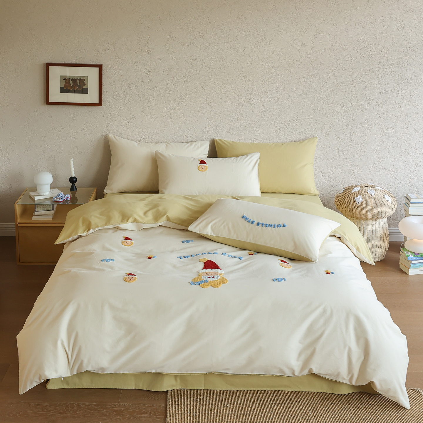 当前位置: 91家纺网 > 商品网购 > 床品套件 > 四件套 > 全棉普通四件套 > 时光里 2025新款全棉100S卡通风磨毛毛巾绣四件套 缤纷小雪人