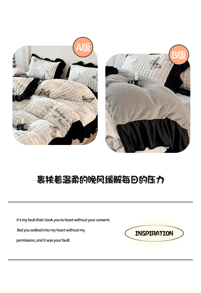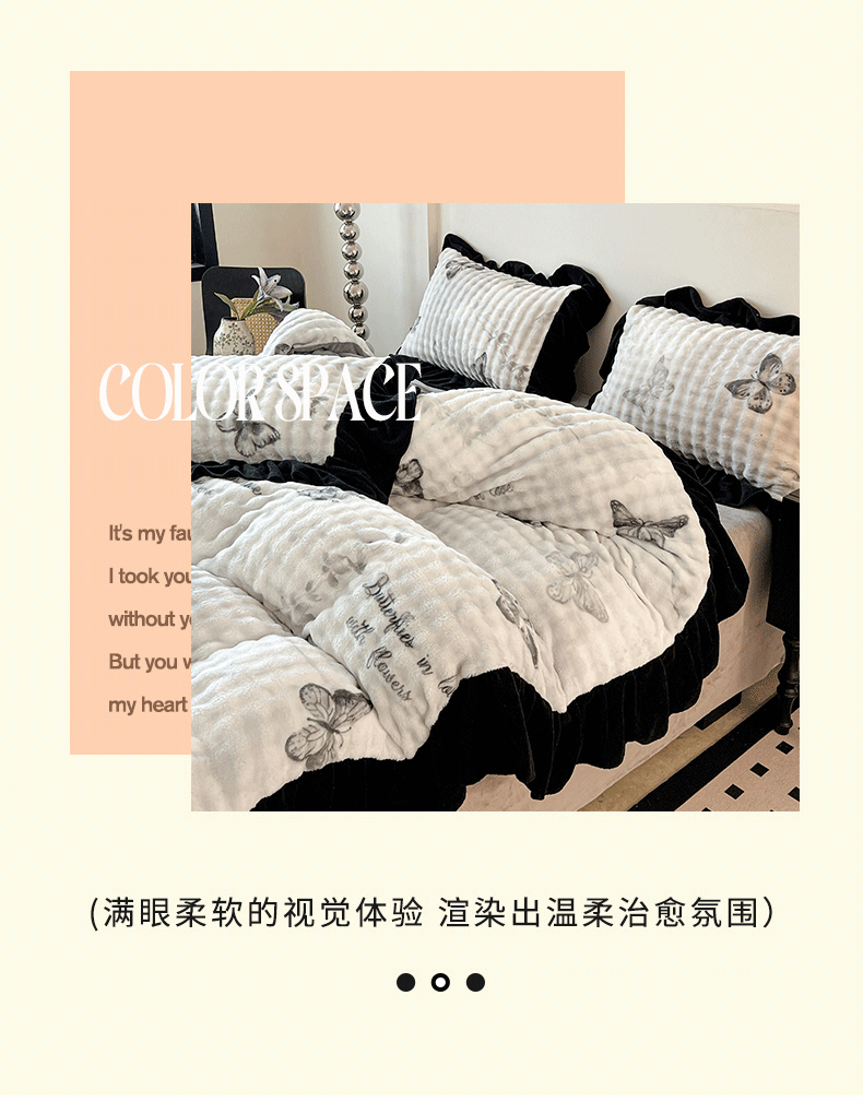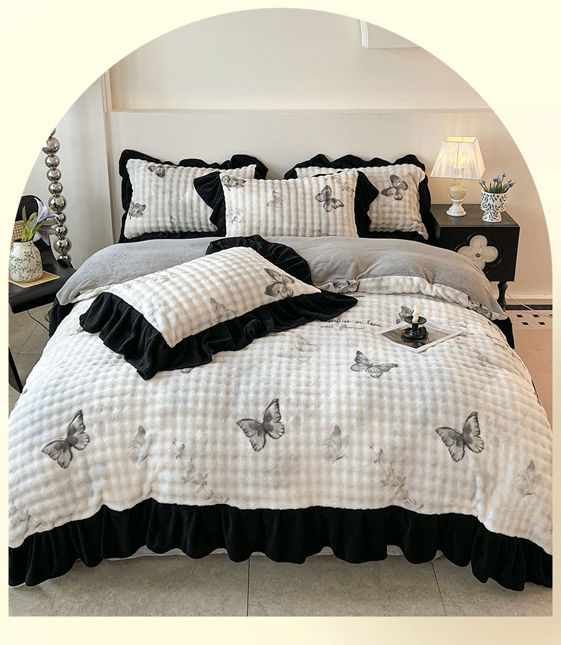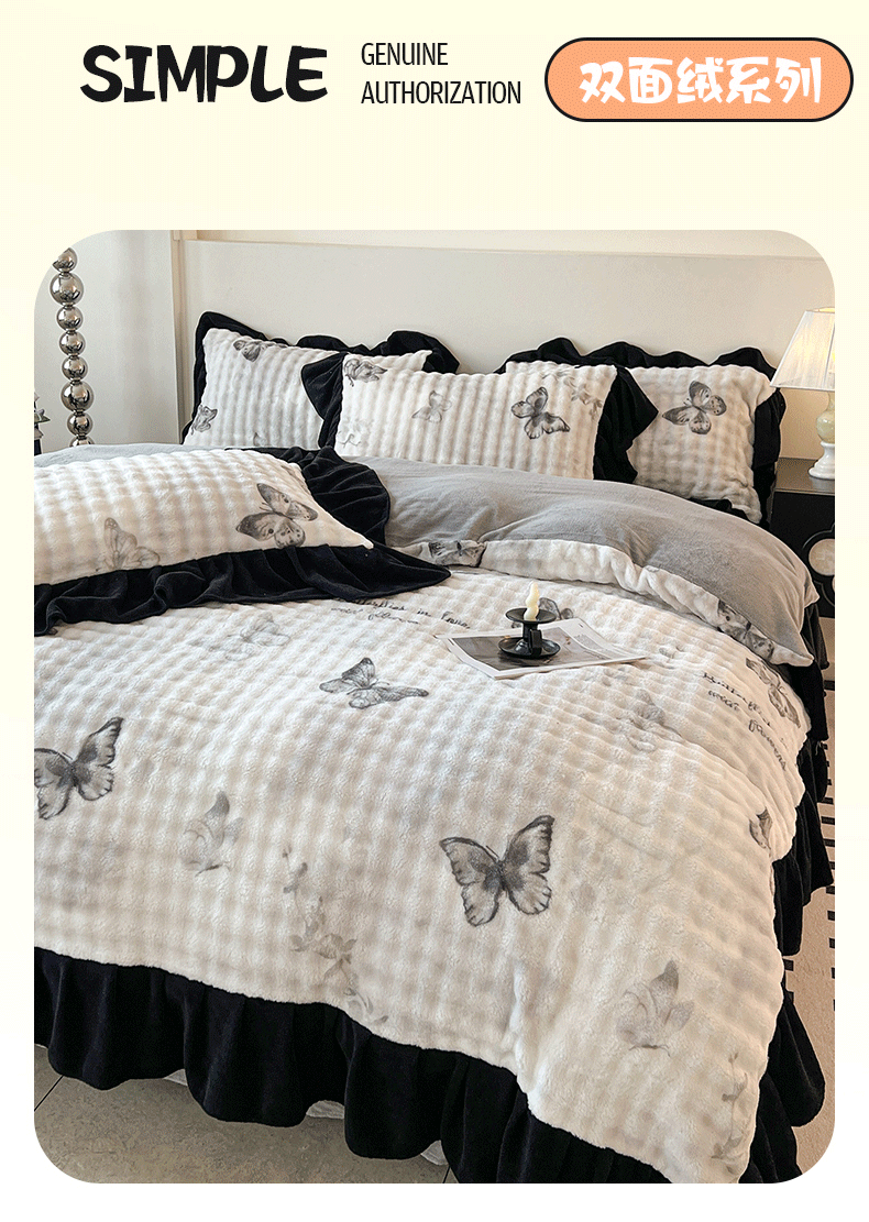 言熙居家纺 2025新款A类兔毛绒韩版卡通花边四件套 幻蝶