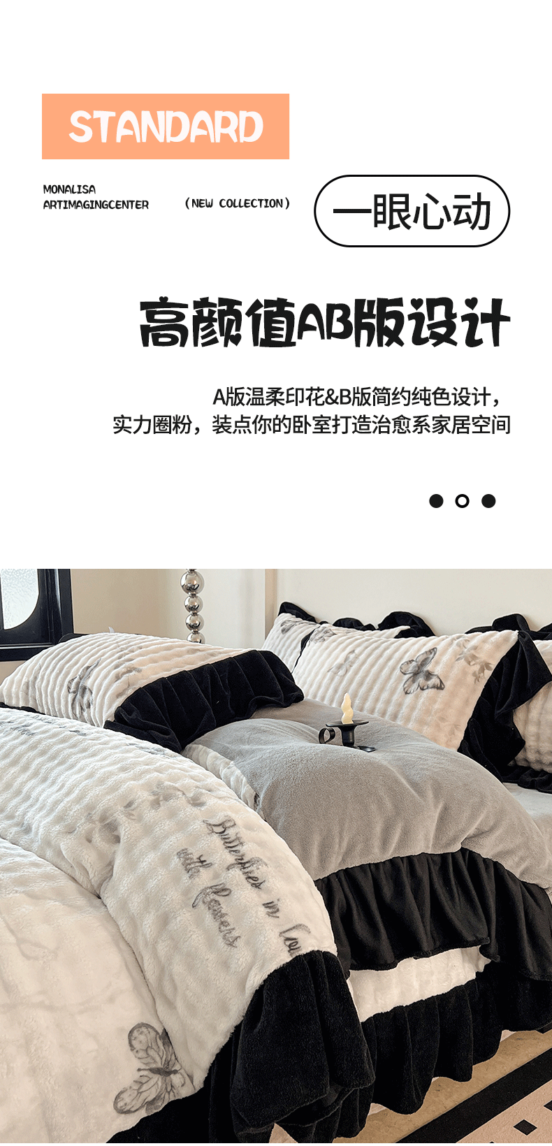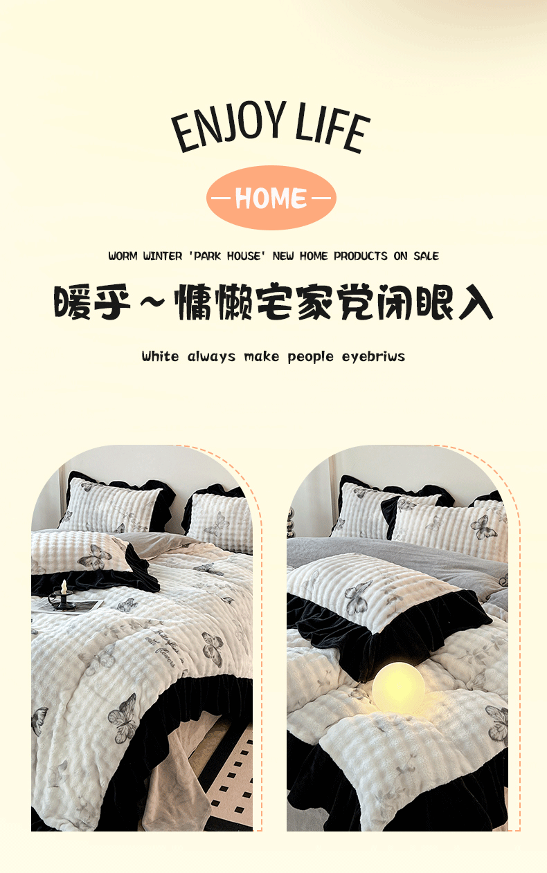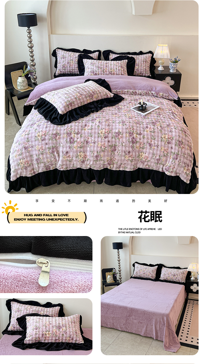 (总)言熙居家纺 2025新款A类兔毛绒韩版卡通花边四件套,蝴蝶结,幻蝶,墨枝,休闲一刻,映春,花眠