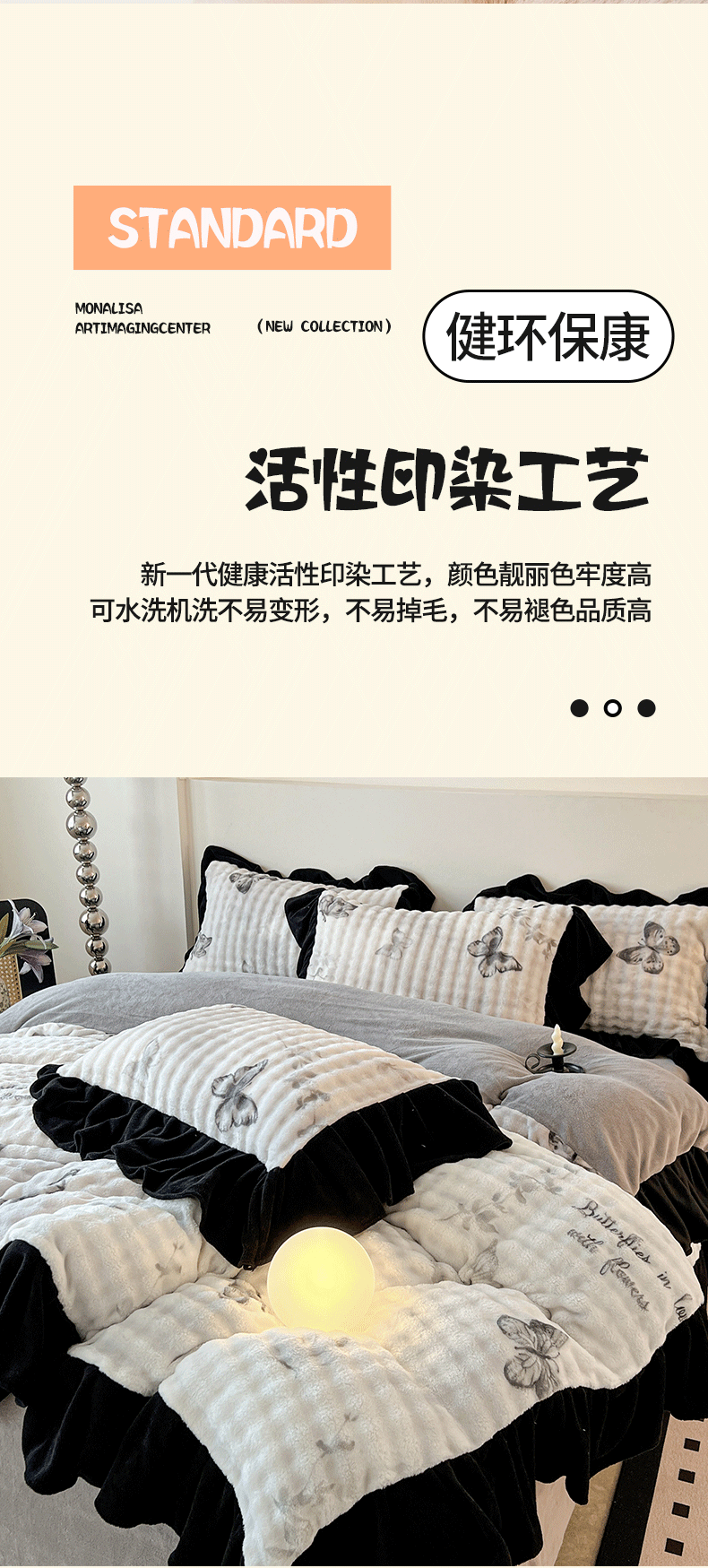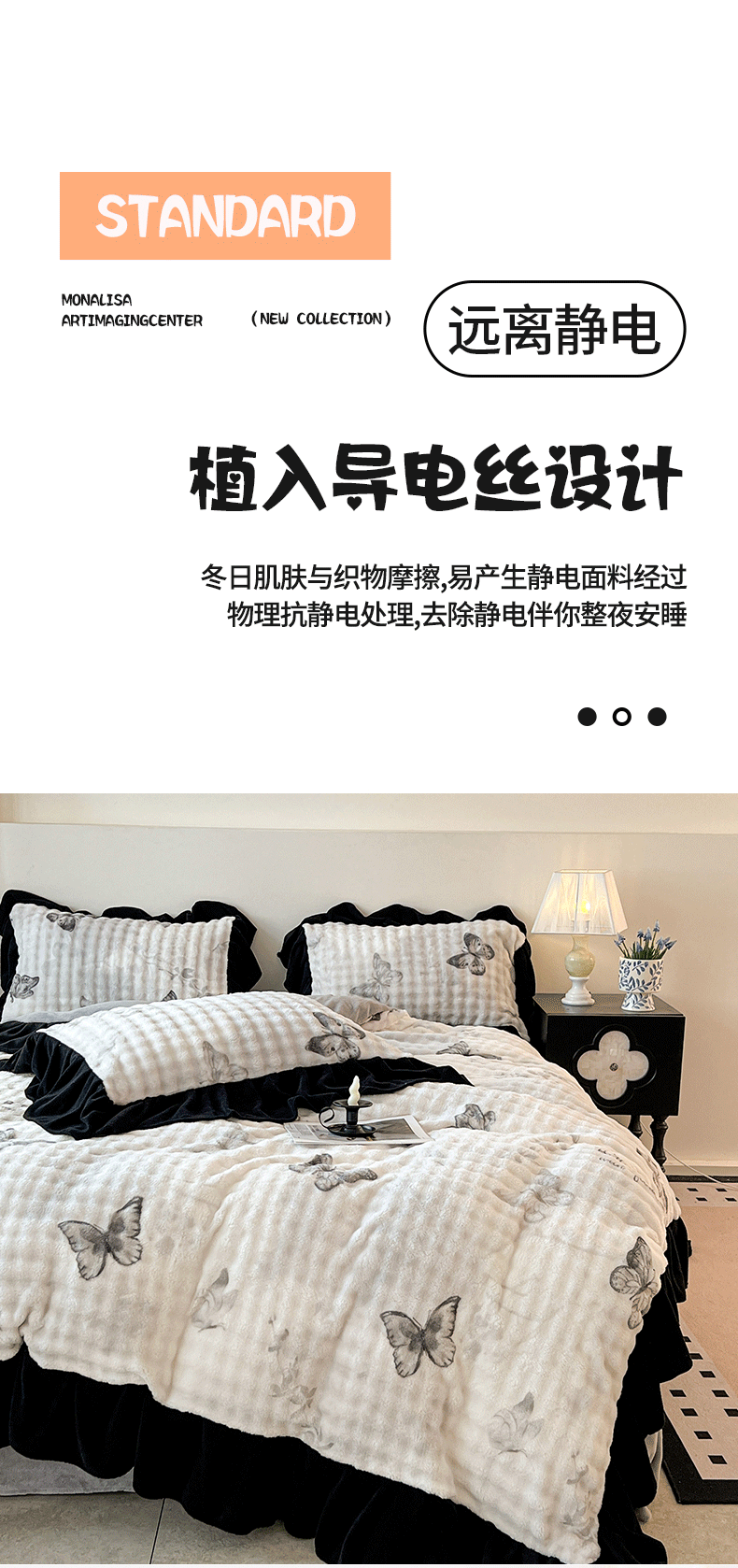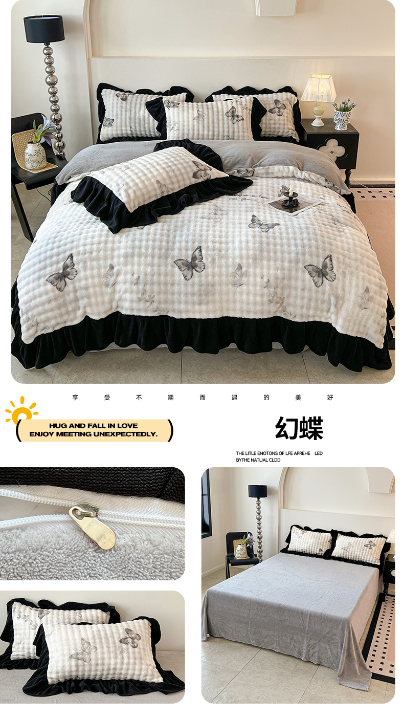 商品名称:言熙居家纺 2025新款A类兔毛绒韩版卡通花边四件套 幻蝶