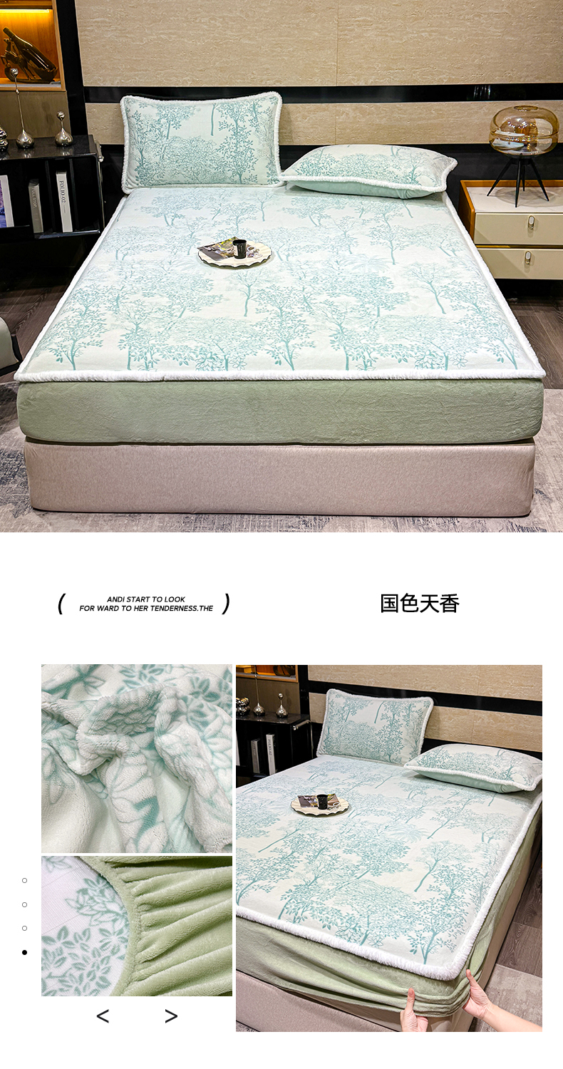 • 91家纺网 家纺一手货源 找家纺 鹿辉家居(原吉欧力) 2025新款牛奶绒雕花兔毛绒包边床笠 北欧经典